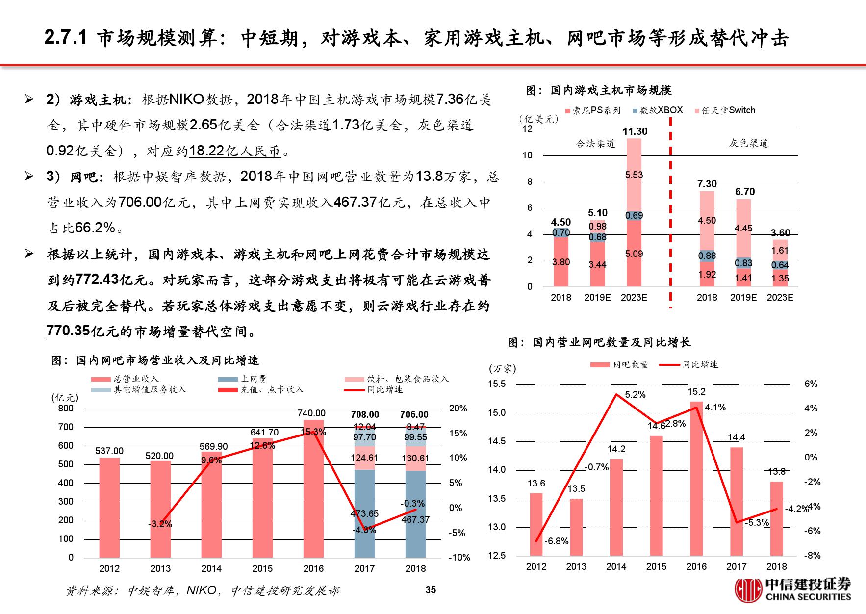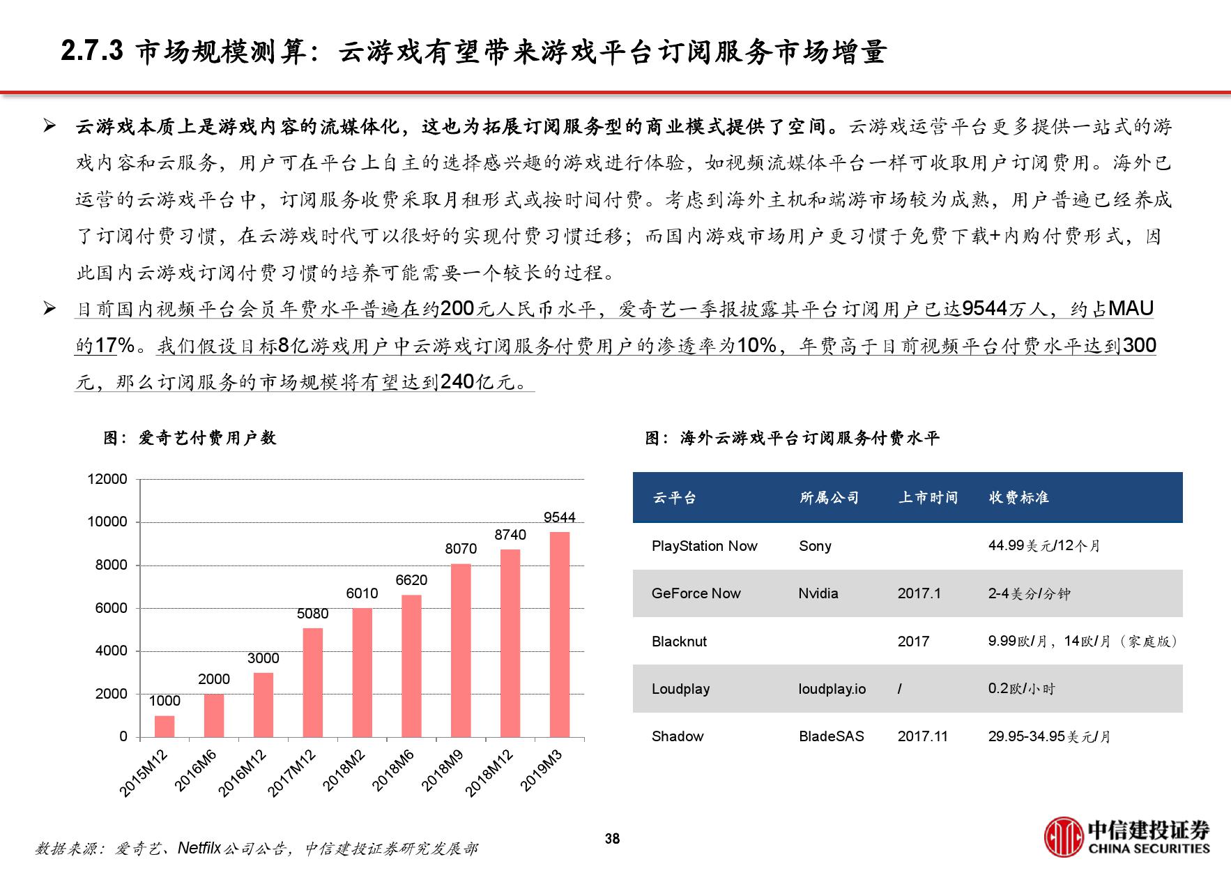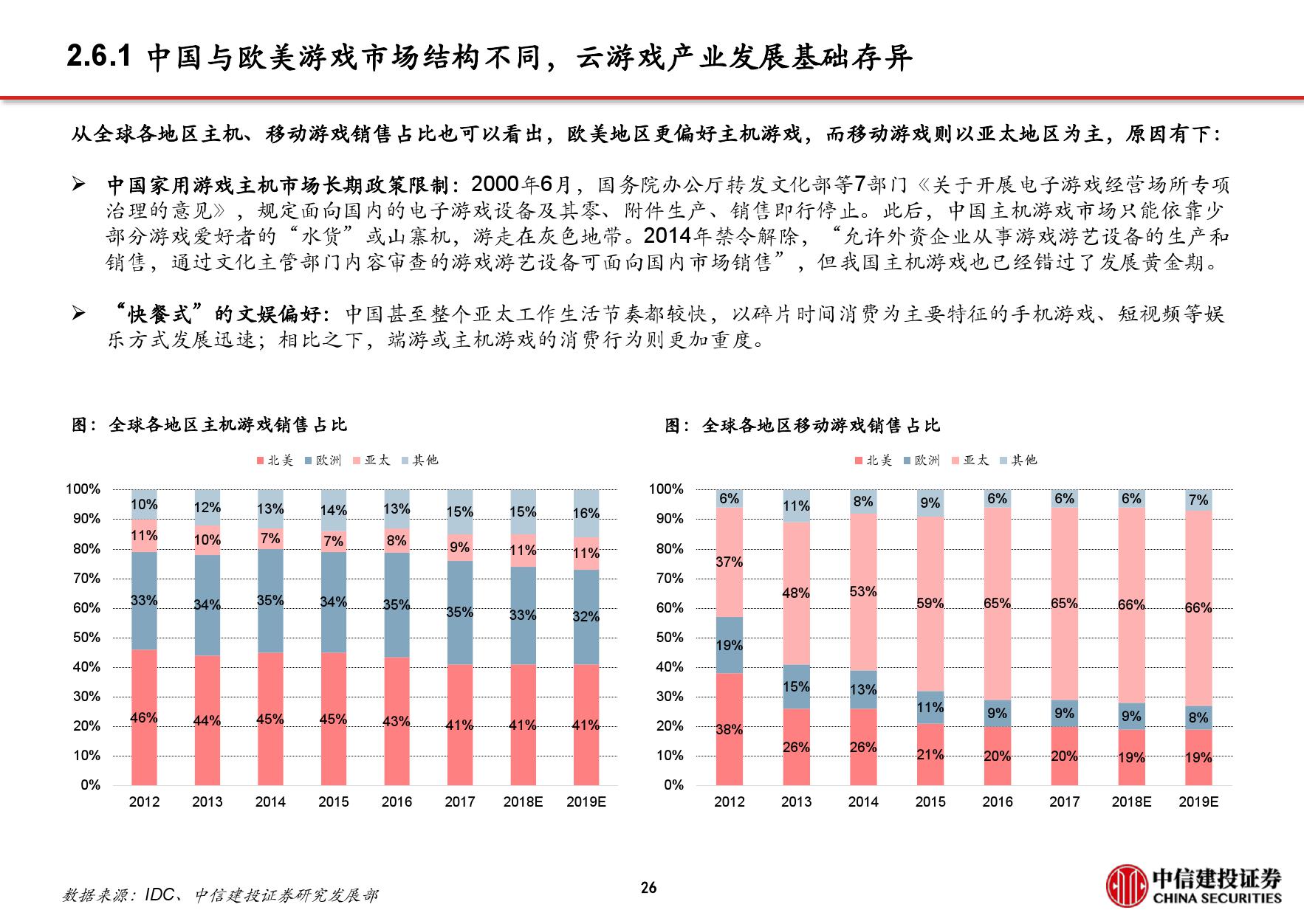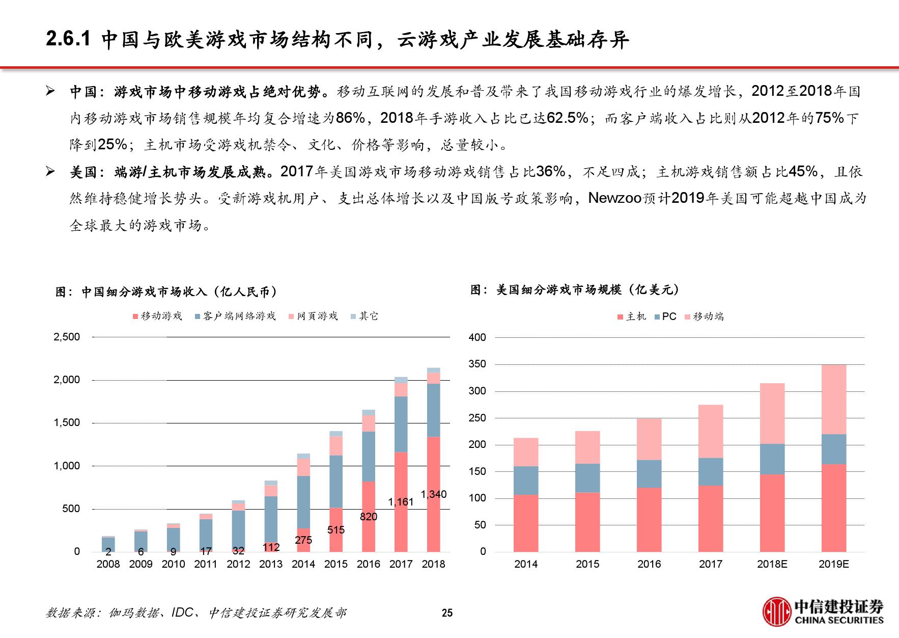 早期任天堂的红白机到索尼的PS机,游戏设备的革新周期与新游戏发布的周期基本吻合;而创新游戏产品的发布也往往引领游戏市场的新一轮热潮。2007年,iPhone智能手机触摸屏技术的出现,提供了更具便利性和易用性的游戏条件,从未考虑购买游戏机的消费者可以通过智能手机进行游戏,智能手机游戏市场的开启解决了主机游戏的痛点,最大程度挖掘了潜在的用户群体。可以预见的,5G加持下基于云计算技术的云游戏可在智能手机游戏的基础上解决其存在的高耗能、移动处理器功能限制等痛点,或成为游戏市场新风口,为产业带来新一轮发展机遇。同样,VR/AR基于5G+云的新土壤上将更具发展动力,其革命性的娱乐体验方式或将直接带动人们娱乐生活方式的彻底变革。