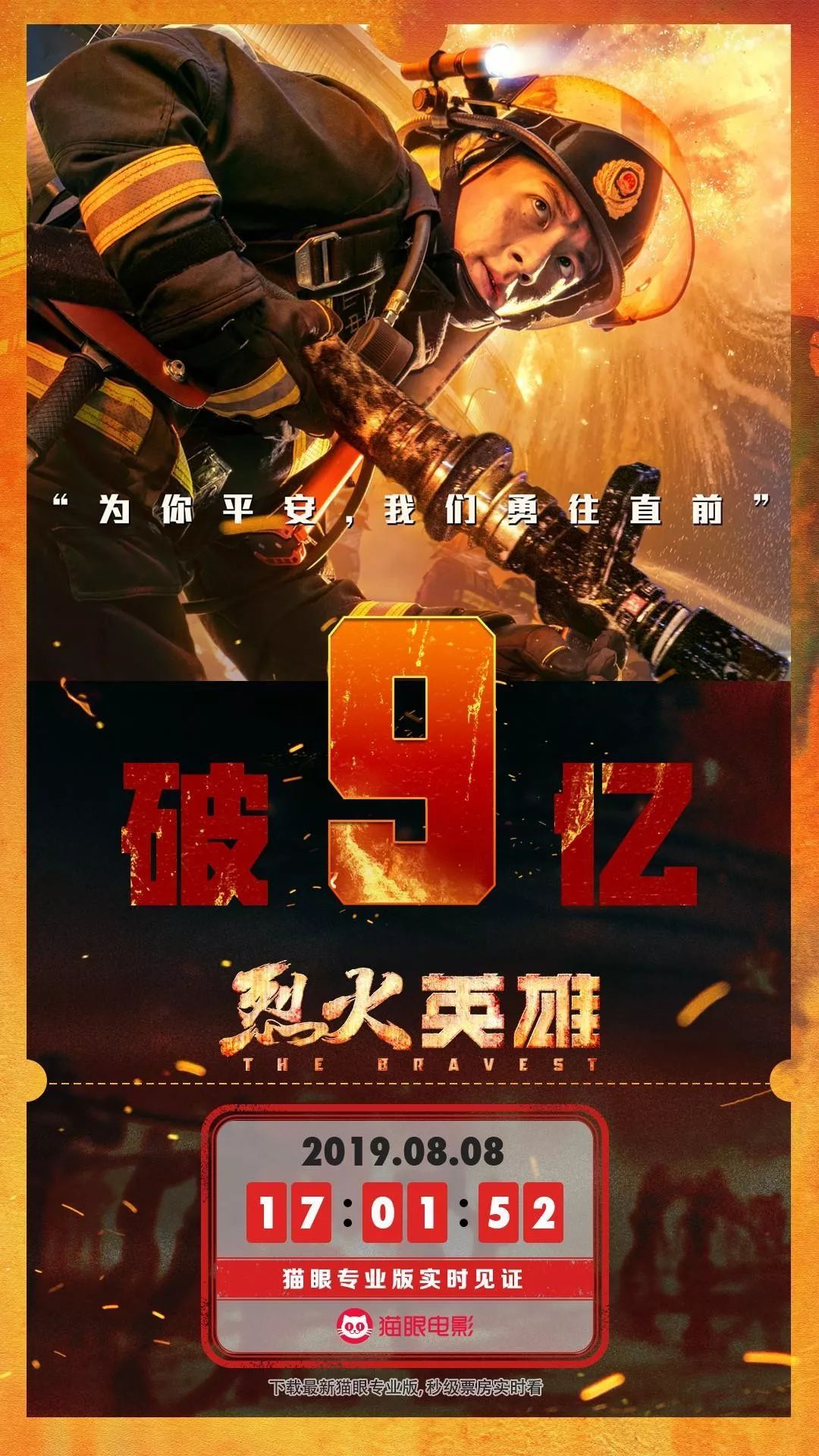 ●季军《烈火英雄》1.24亿(+46.39%),累计票房已于今日17时突破9亿,继续向10亿线挺进。今日《烈火英雄》排片回升至22.3%,实时票房重回单日亚军。
