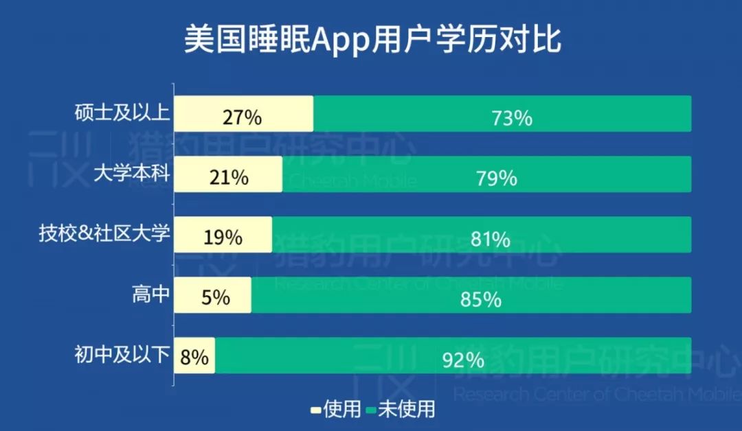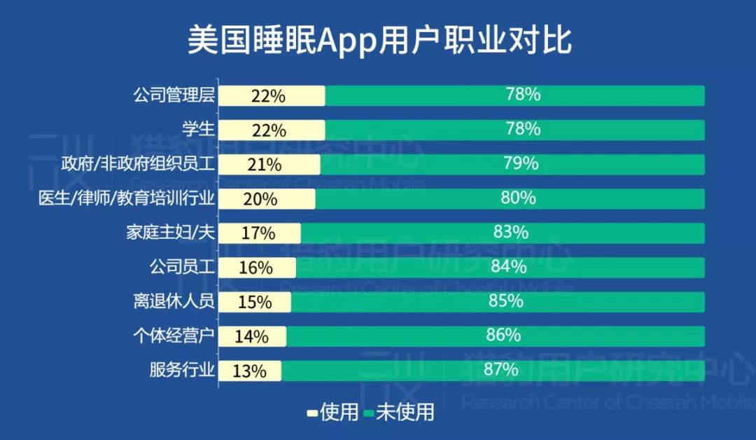 猎豹移动作为国内出海公司的领军者,移动端月度活跃用户中超过70%的用户来自海外市场,因此依托自身用户群体,猎豹用户研究中心开展睡眠+健康管理类App的美国用户研究专项,希望从美国移动端市场汲取经验,为目前还处于蓝海阶段的健康类移动端产品,提供参考。