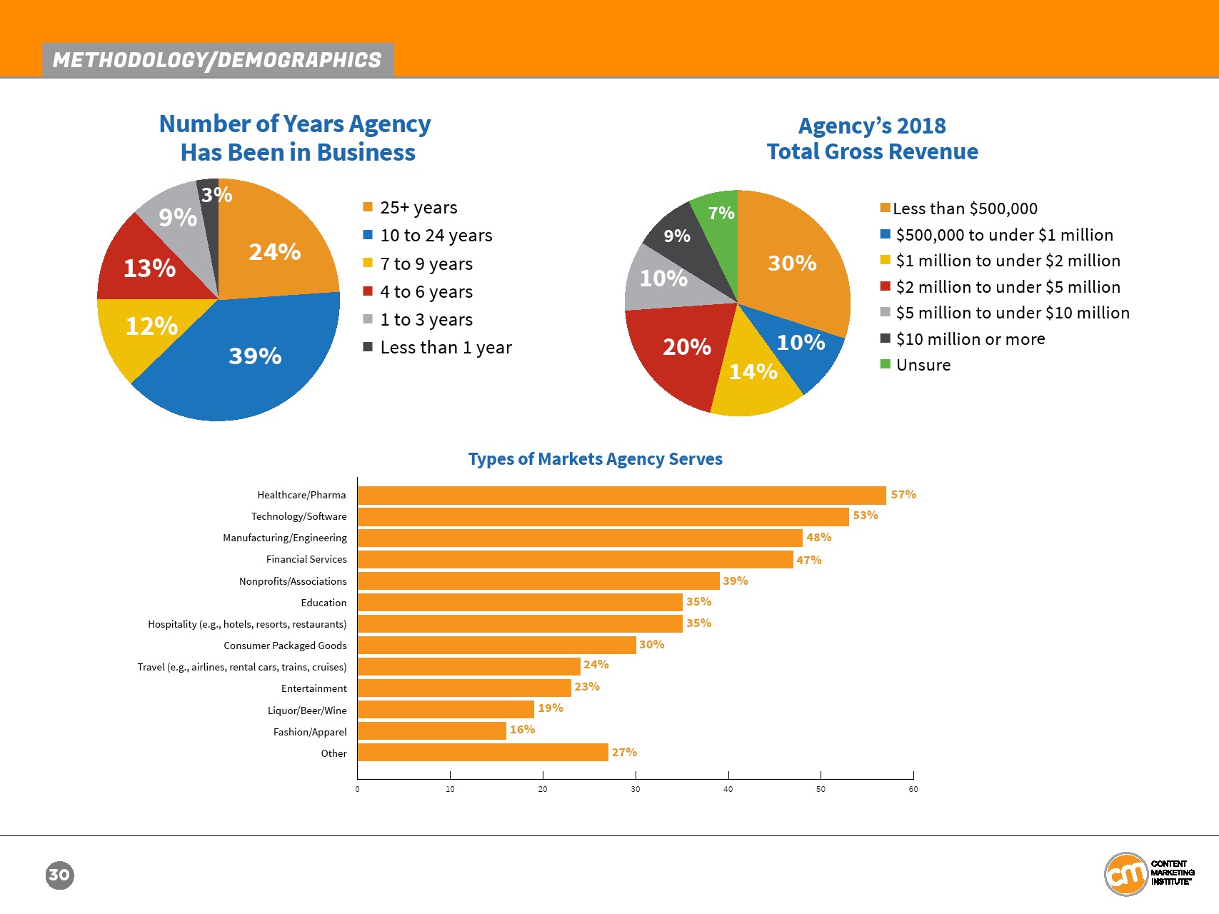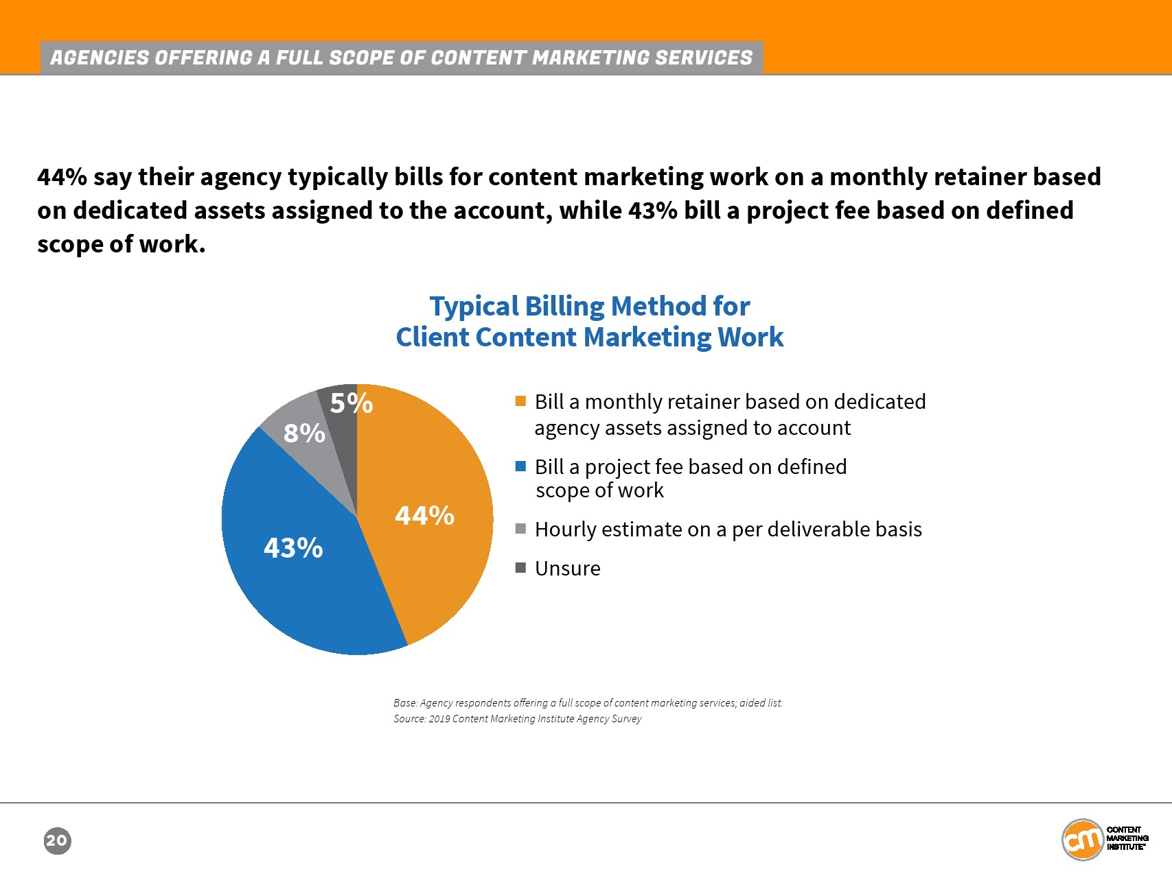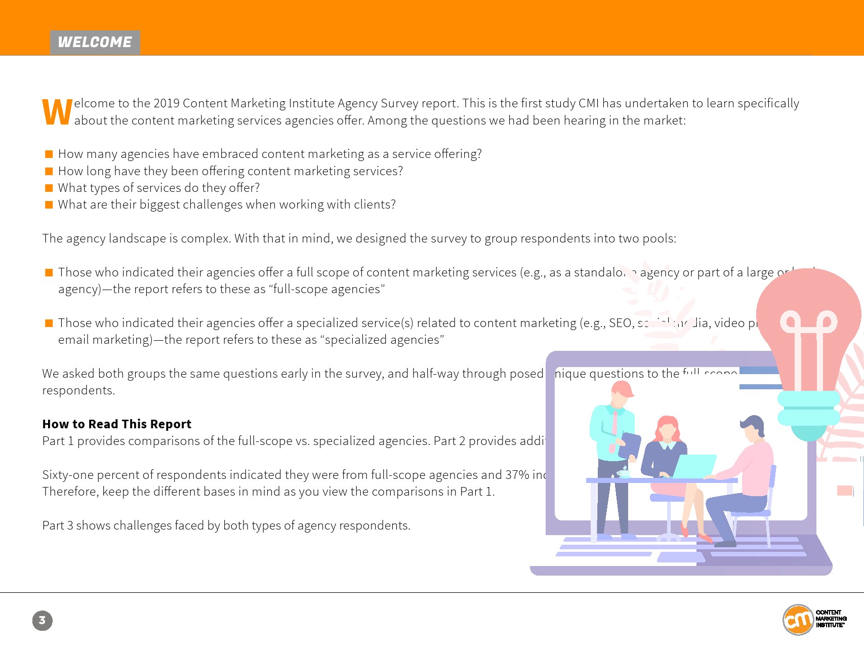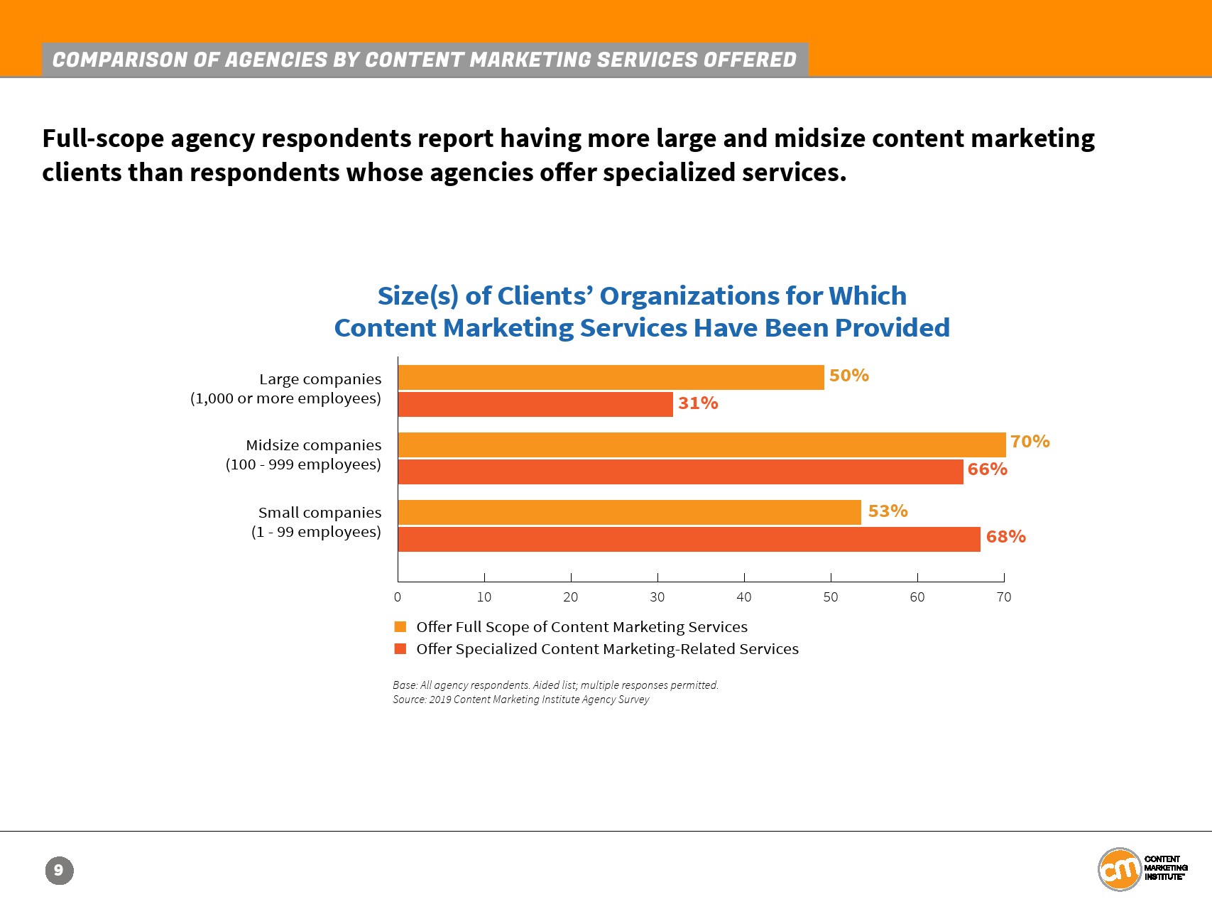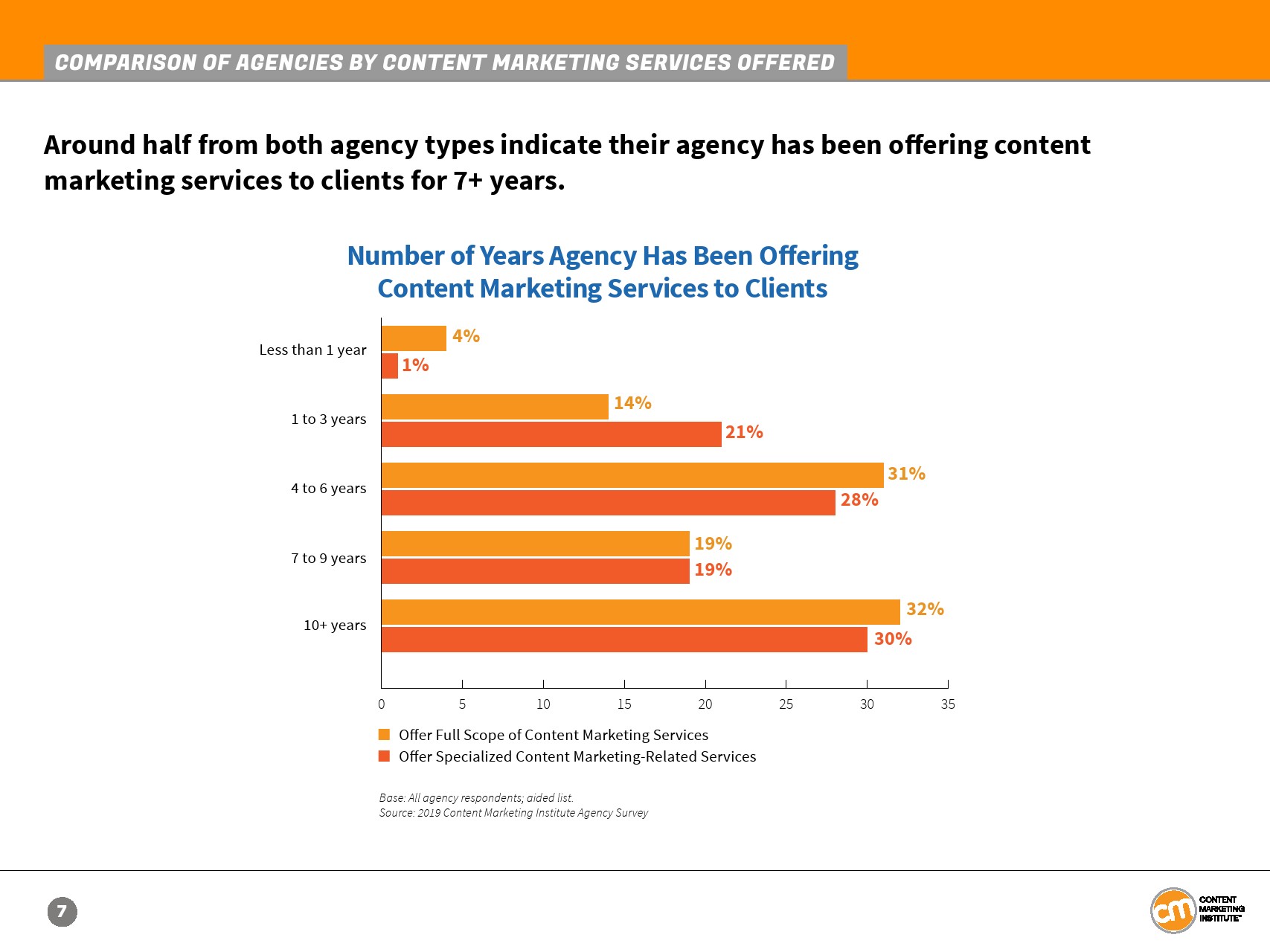 内容营销研究所(CMI)发布了新报告“2019年广告代理商调查”。近一半接受调查的代理机构报告称,内容营销服务至少占其总业务的50%。