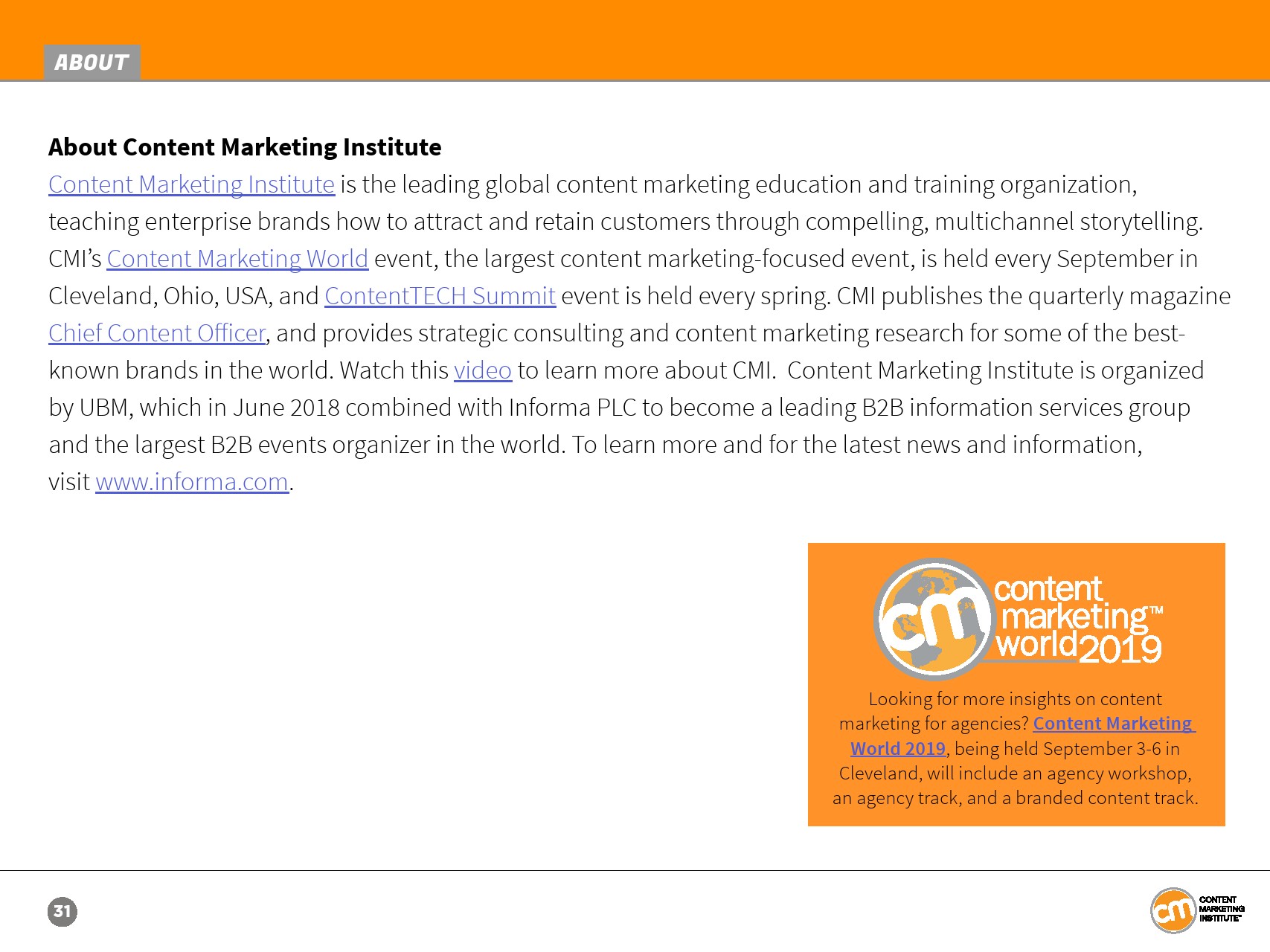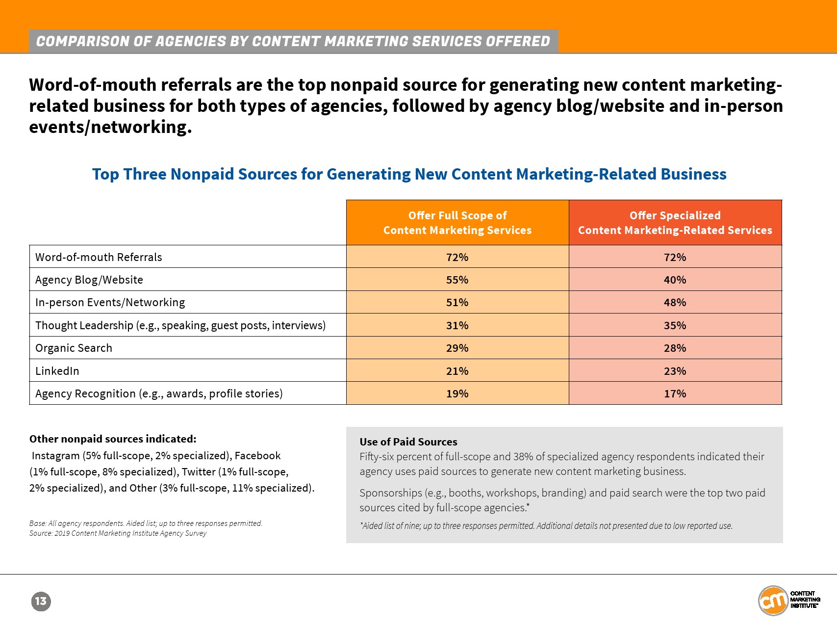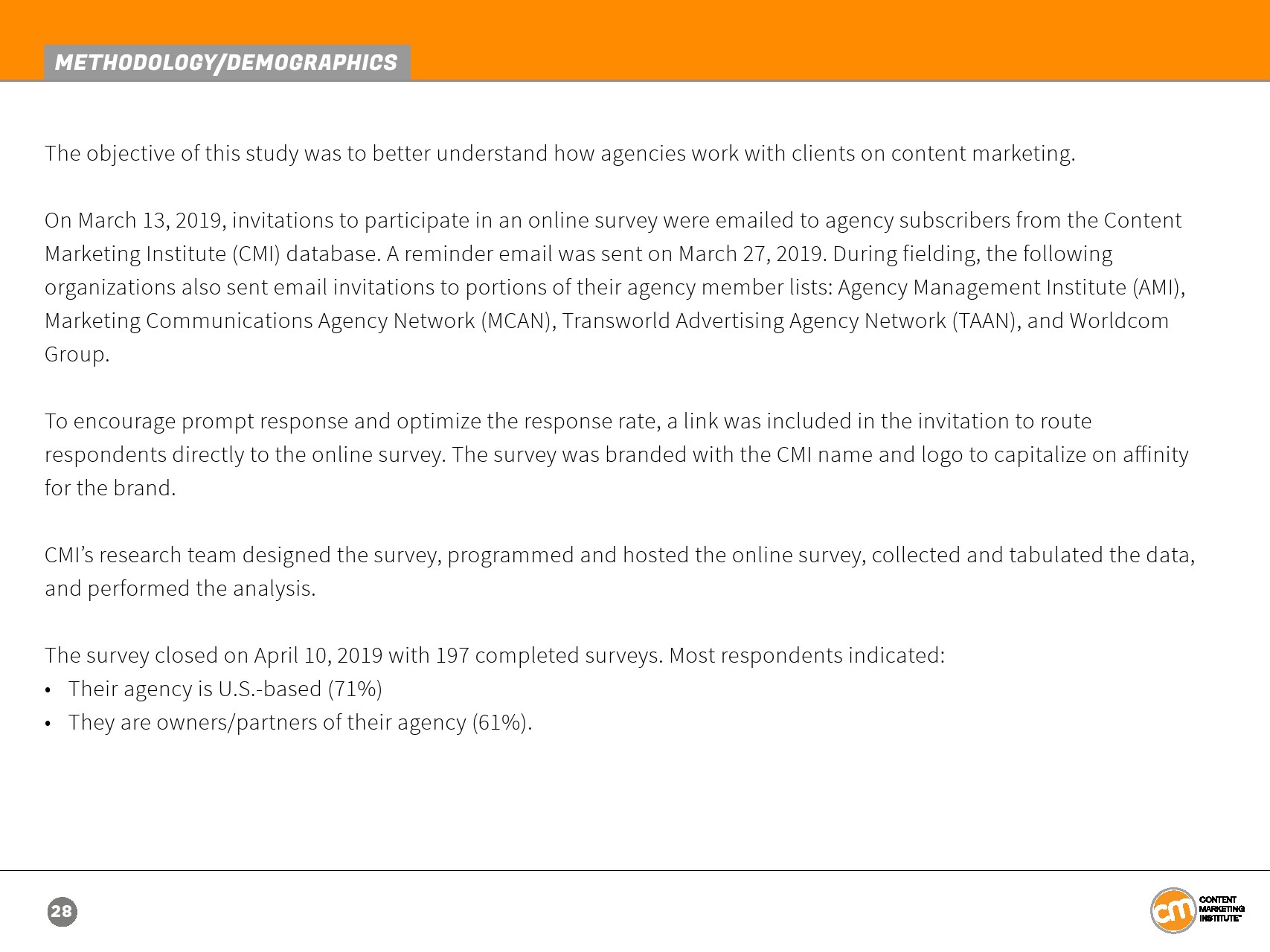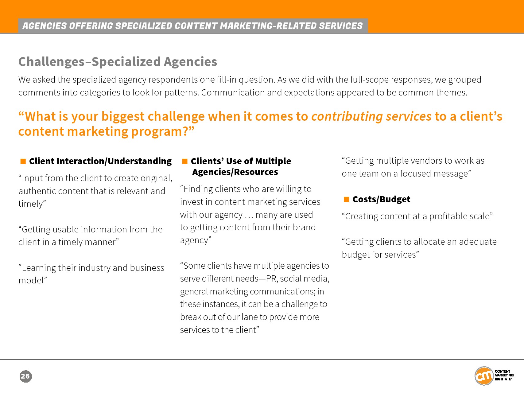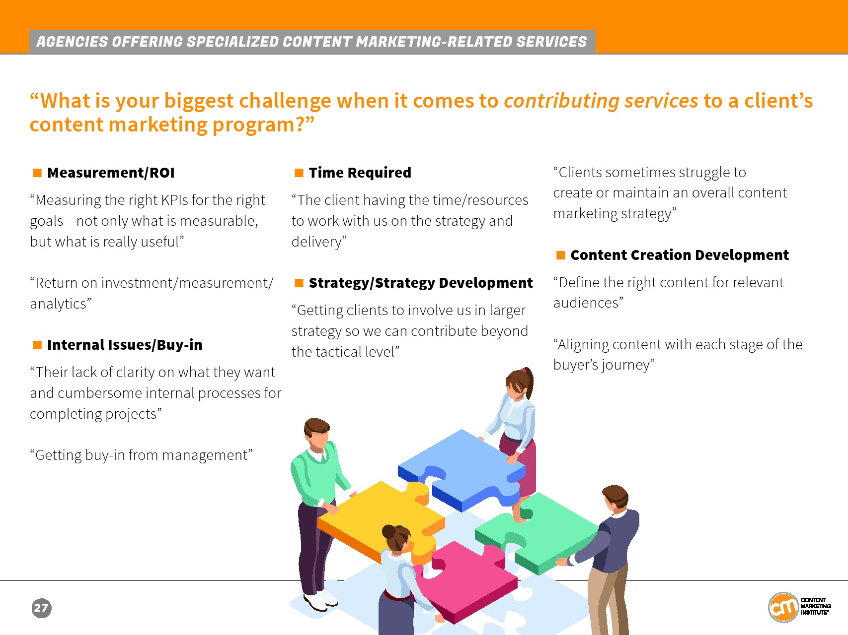 内容营销研究所(CMI)发布了新报告“2019年广告代理商调查”。近一半接受调查的代理机构报告称,内容营销服务至少占其总业务的50%。