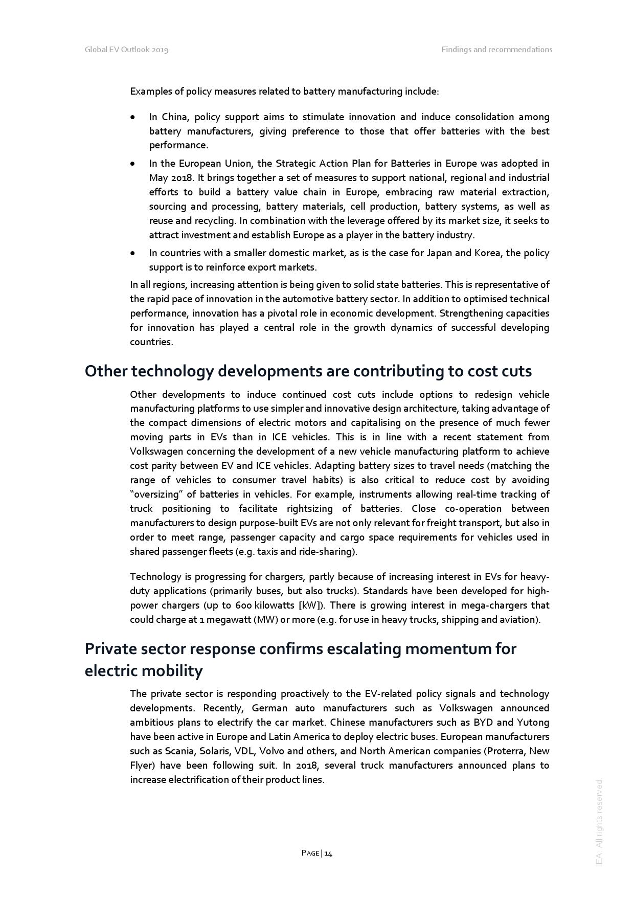 技术进步大幅削减电动车的成本。主要来自改进电池设计及提升产能。