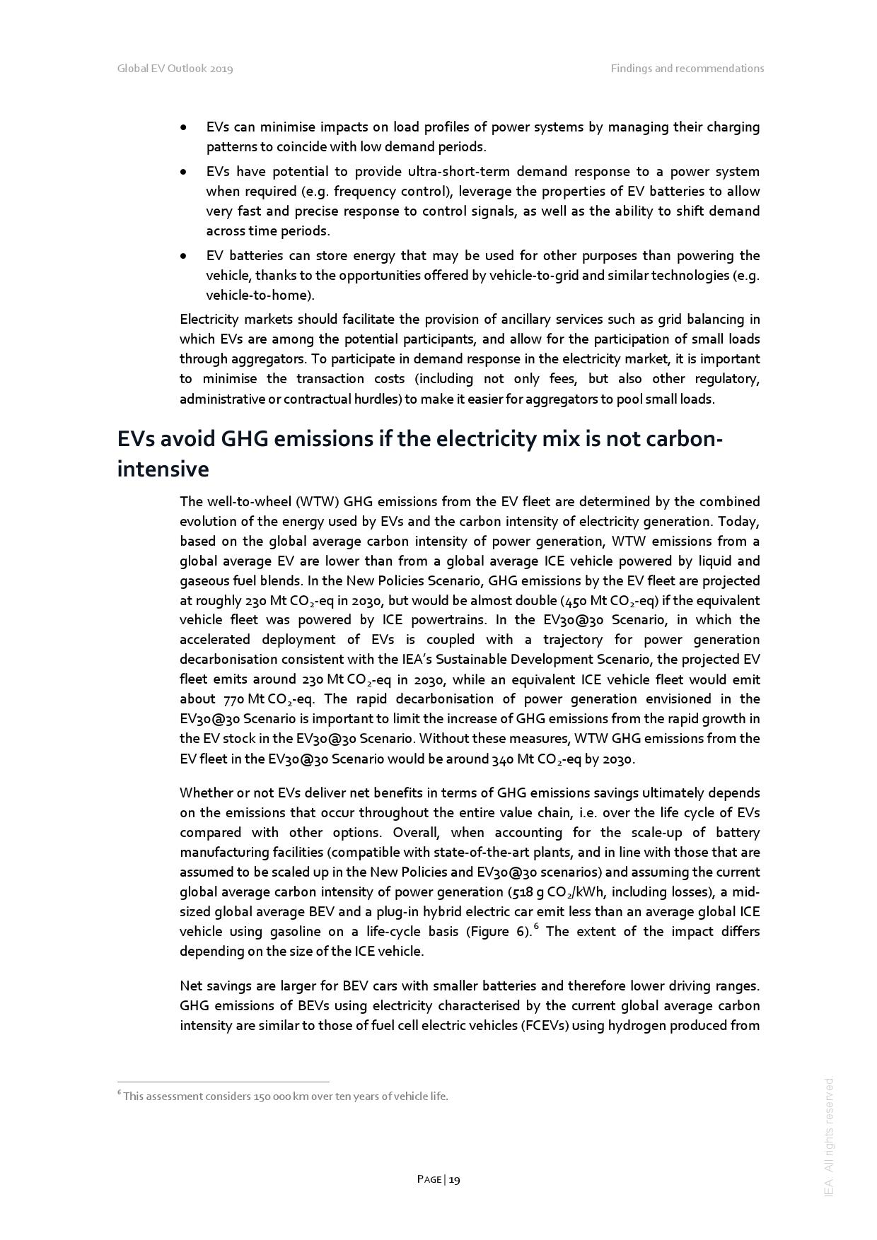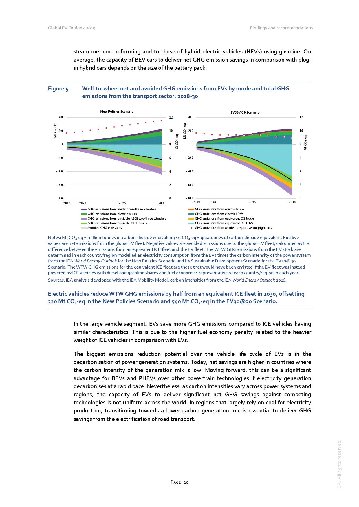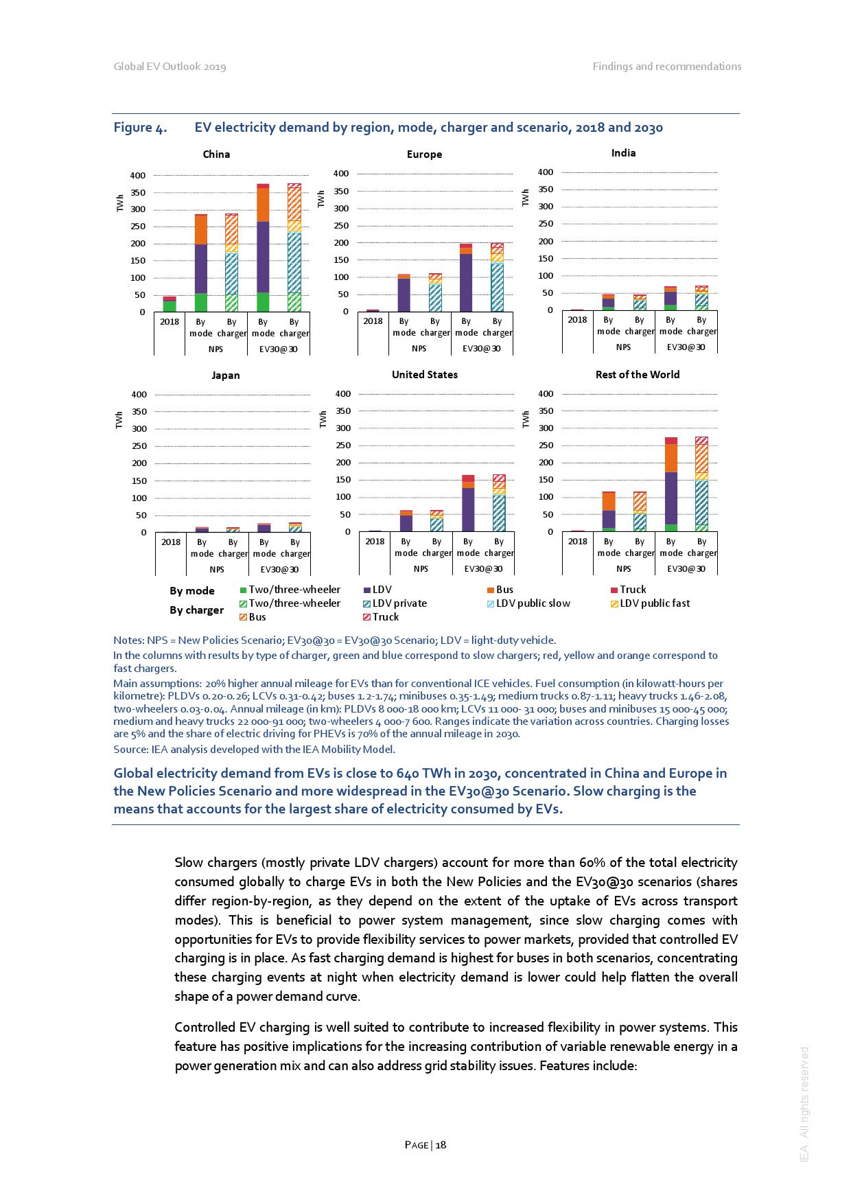 电动车2018年耗用大约 58TWh 的电力 (主要由于中国的两轮电动车),排放了4100万吨二氧化碳,较同数量燃油车的二氧化碳排放少3600万吨。