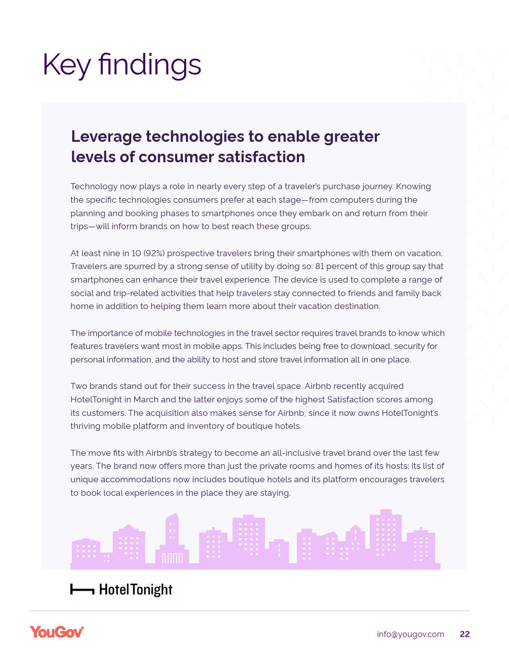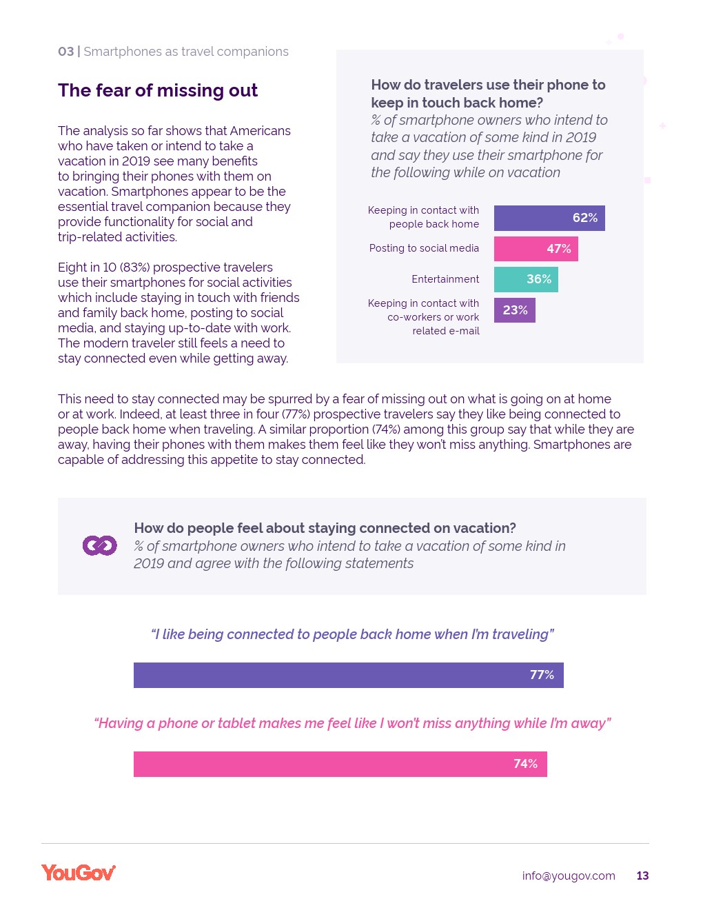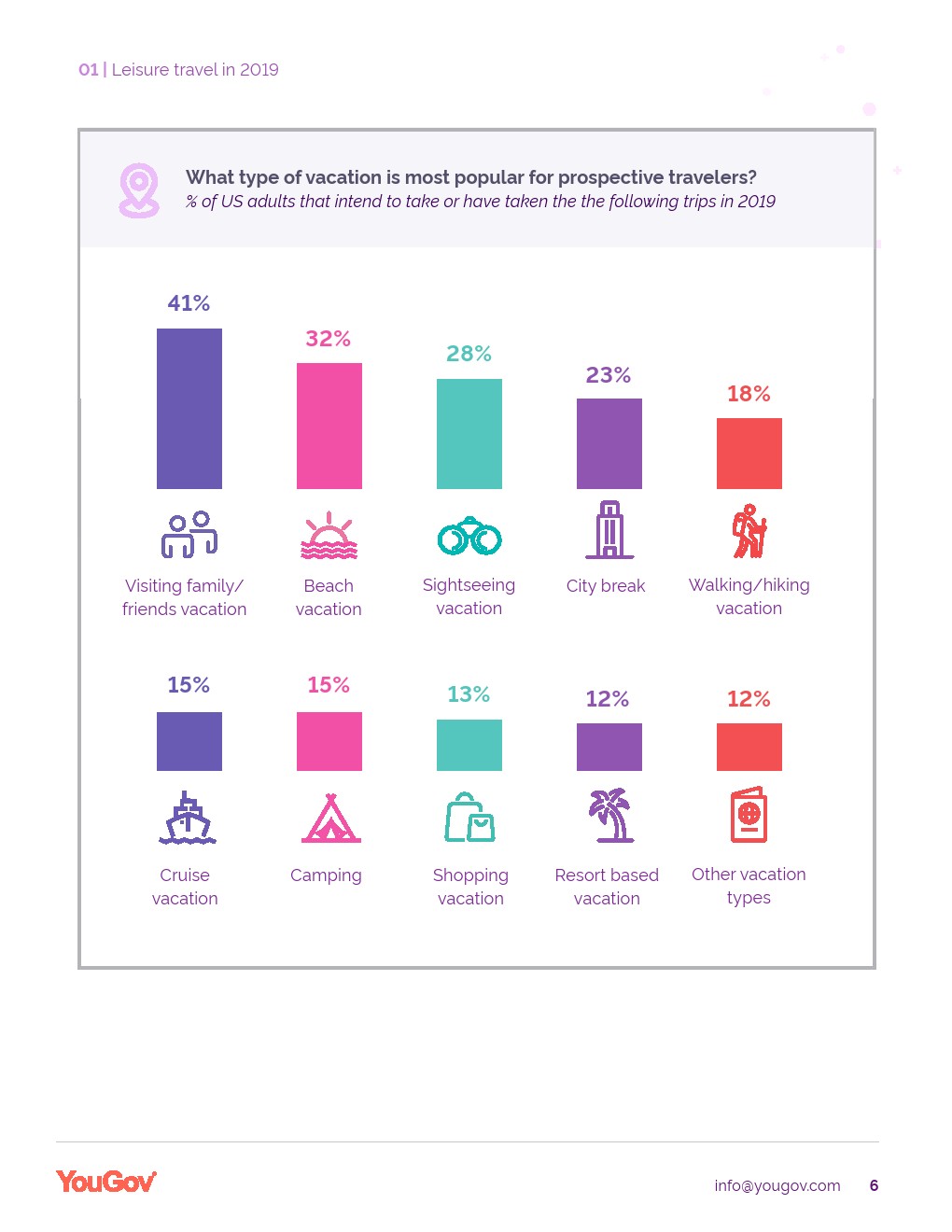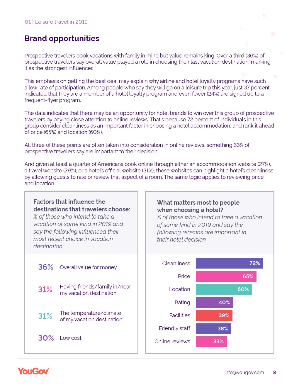 YouGov发布了“旅游科技报告”。美国人对休闲旅游的胃口很大,64%的美国人已经或打算在2019年度假。YouGov的研究还表明,对家庭、总体价值和技术的考虑对旅行满意度有很大影响。