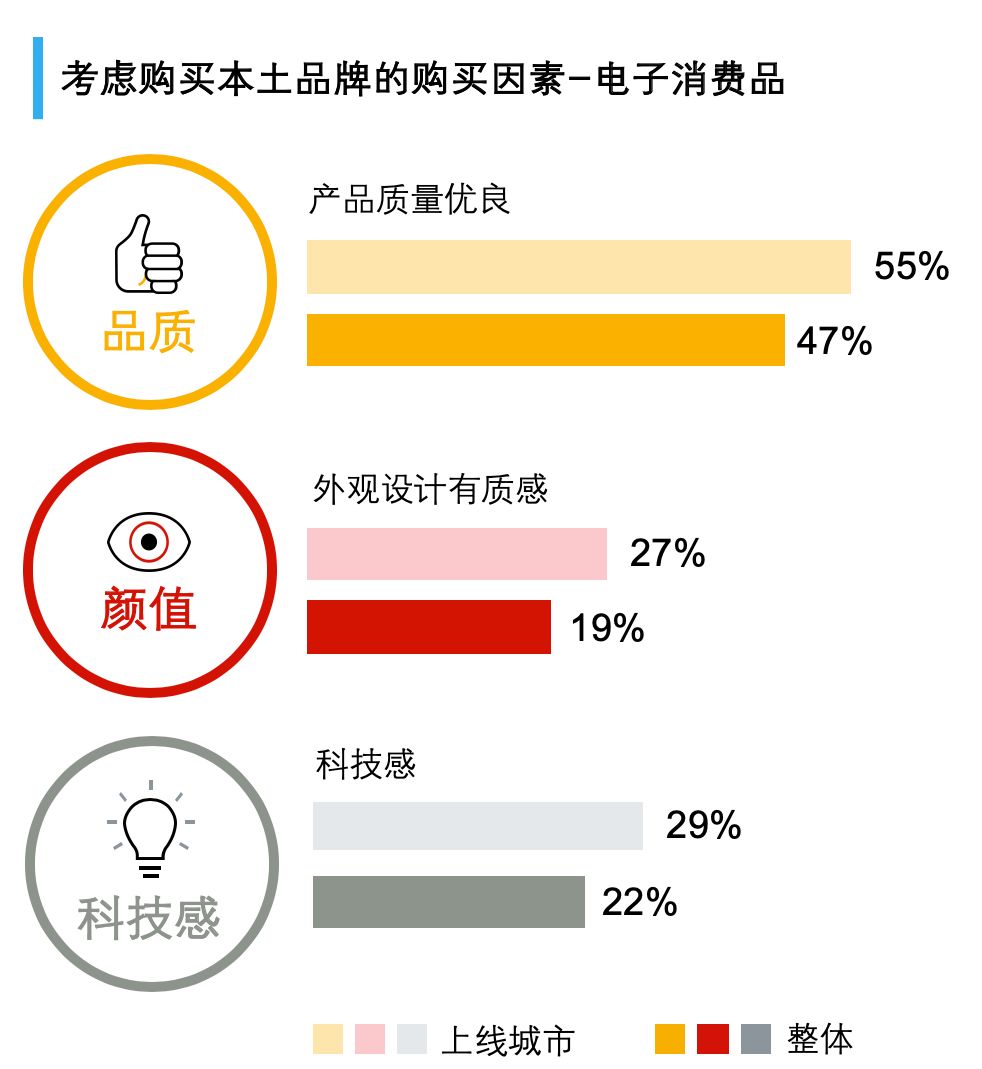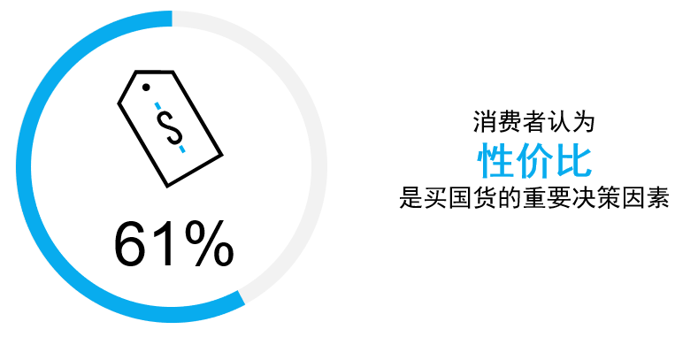 在理性驱动下,性价比是消费者选择国货最主要的因素,但品质权重高于价格。尼尔森数据显示,61%的消费者认为性价比是买国货的重要决策因素。在未来一年里,33%的消费者在追求品质方面有更强的购买倾向。26%的消费者在保证基本功能性的前提下,会选择便宜的产品。