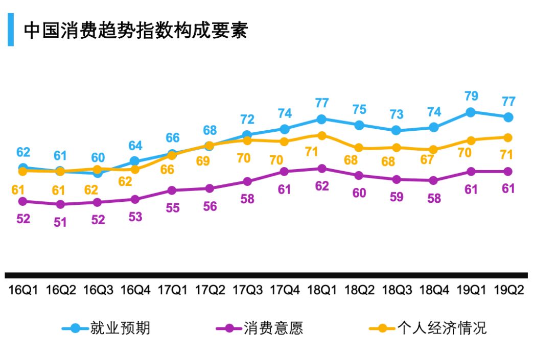 国家统计局数据显示,第二季度GDP同比增长6.2%,明显好于市场预期。综合来看,第二季度国民经济继续运行在合理区间,延续了总体平稳、稳中有进的发展态势,这为中国消费趋势指数的高位运行奠定了坚实基础。
