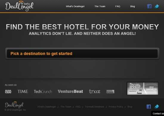 2012年4月,旅游科技网站Tnooz曾在Tlabs频道介绍该酒店整合搜索引擎。DealAngel声称它能使旅行者避免向酒店支付过高的客房价格,该网站使用一段时间内的历史定价数据,以预测每家酒店在未来某一特定日期面临着特定的竞争环境时应收取多高的客房价格。DealAngel称其让用户了解到酒店的实际价格究竟是划算的价格还是酒店要价过高,除此以外,该网站还为旅行者提供有关哪些入住日期的客房价格会更高(或更低)的信息,他们因此可以避免在需求较高的日期入住酒店,如果他们的时间安排较为灵活,那他们则可以节省更多成本。DealAngel在2012年11月宣布与社交旅游网站Gogobot合作推出一个API工具(目前他们正在对该工具进行封闭式测试)。