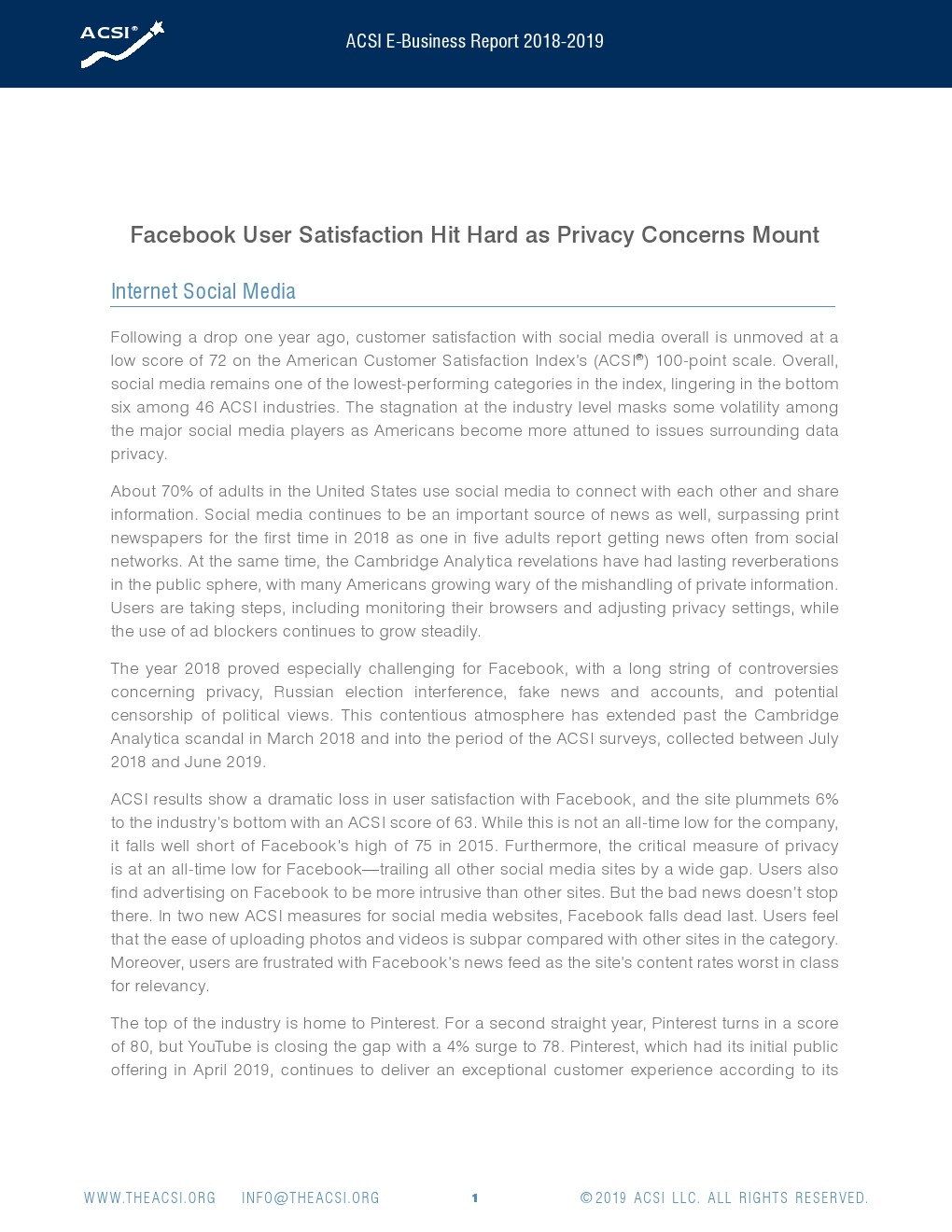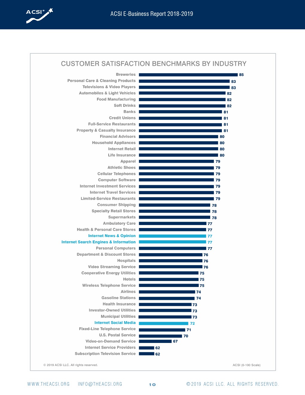 根据美国客户满意度指数(ACSI)的最新报告,社交媒体用户连续第二年对他们使用的平台持较低的满意度。ACSI测量了46个行业的客户满意度,社交媒体目前在这项研究中排在倒数第6位,在100分量表上得分为72。