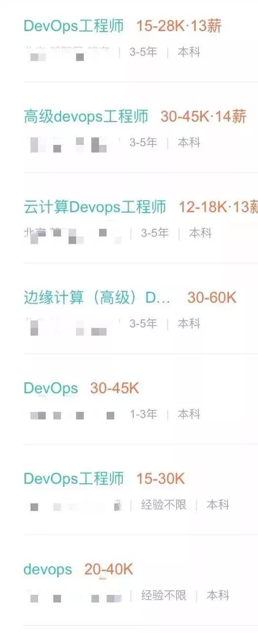 至于 DevOps,虽然国内可搜寻到的岗位不少,但薪资并没有太高,基本与 Go 语言的区间水平相当,要求具备 3 到 5 年工作经验的依旧是最普遍的。