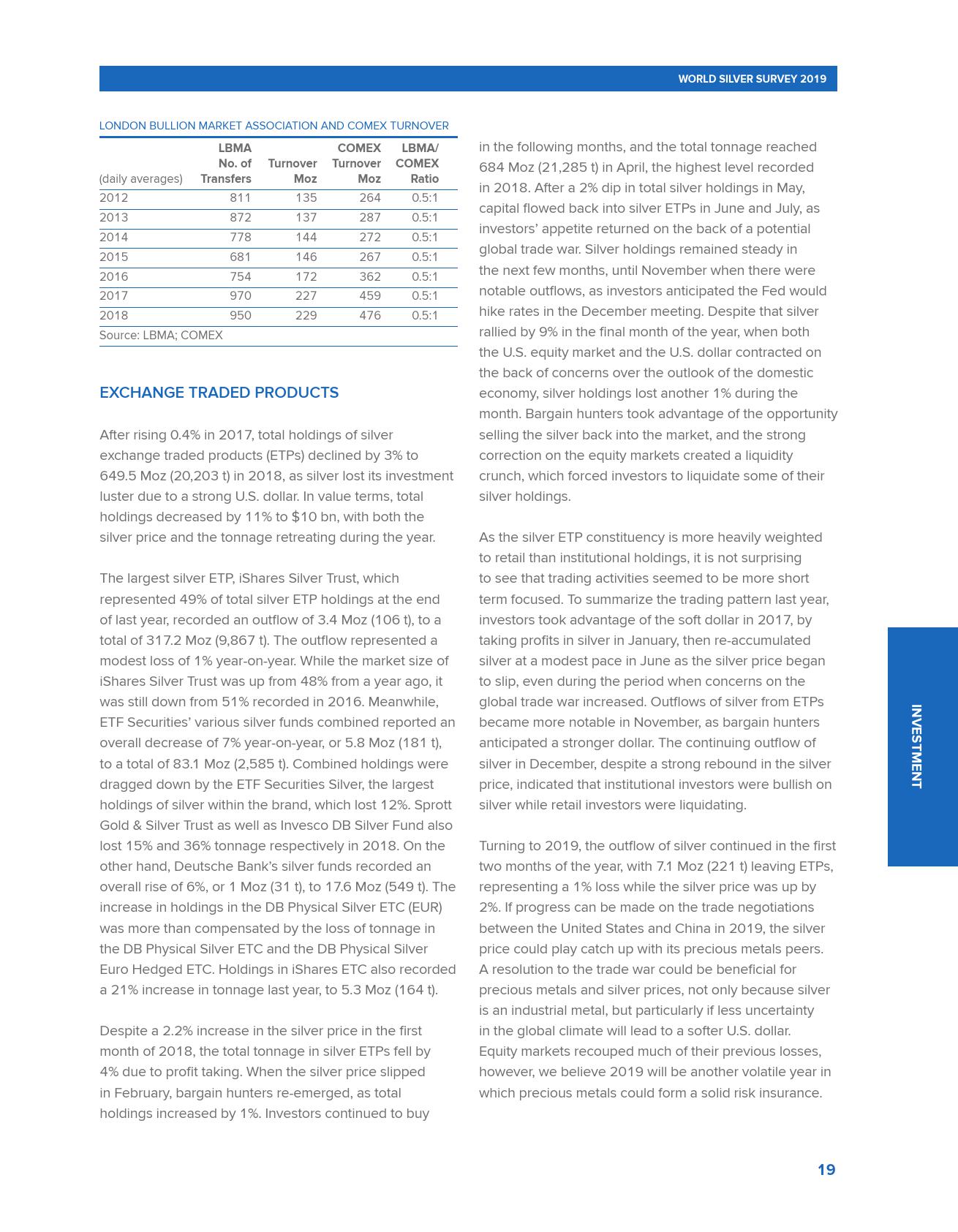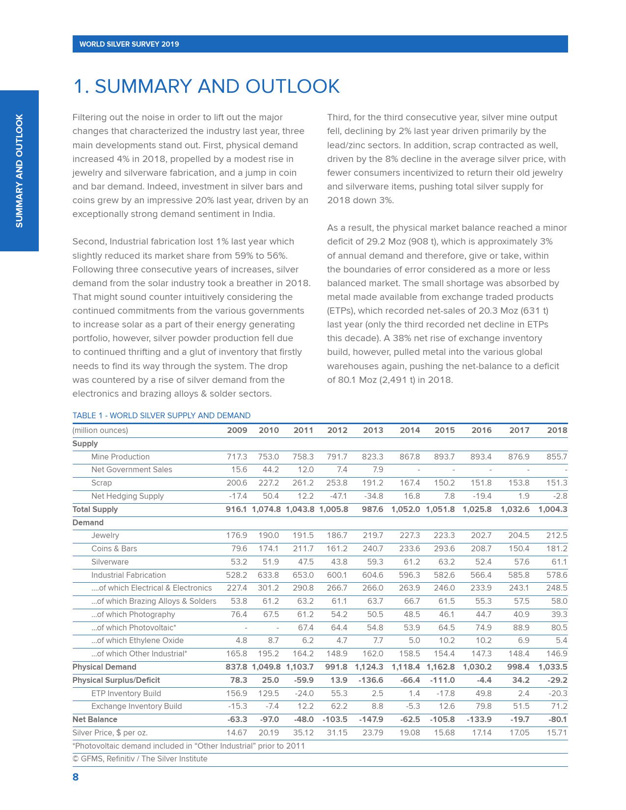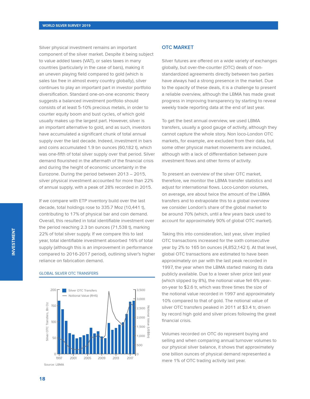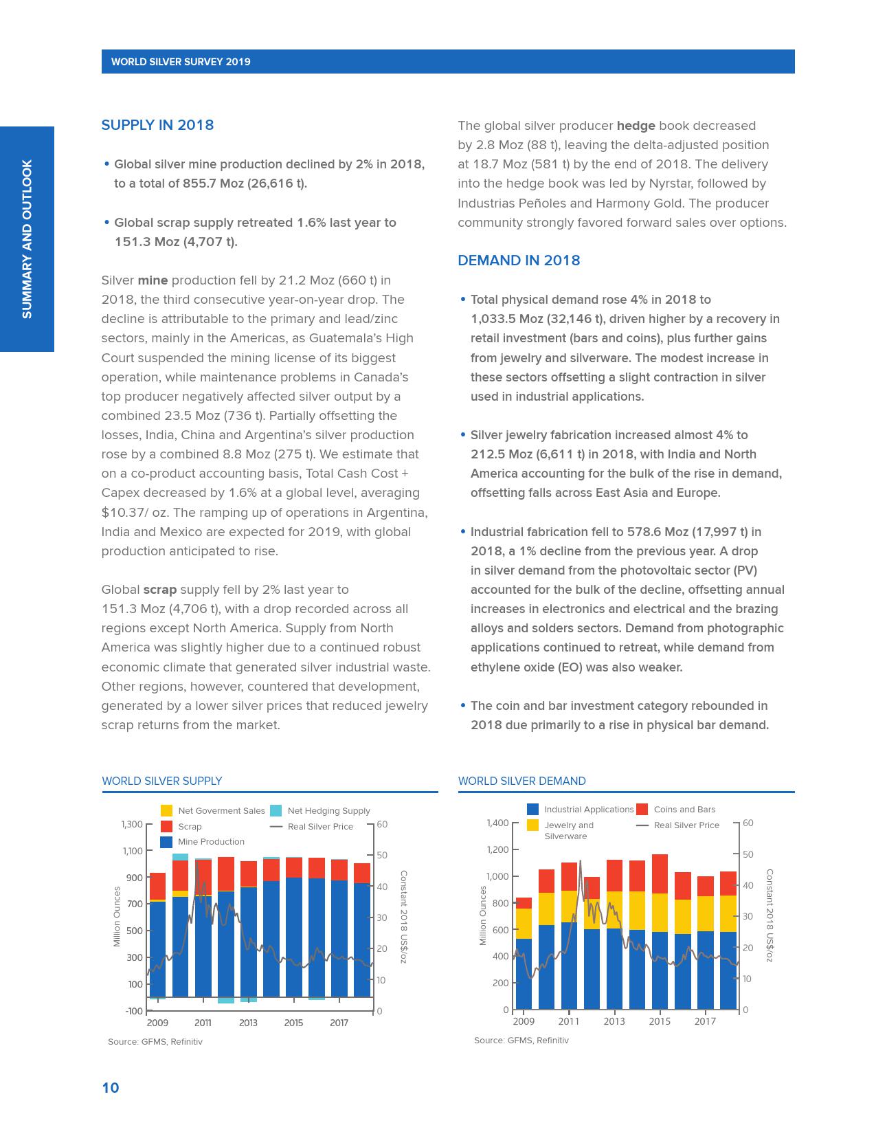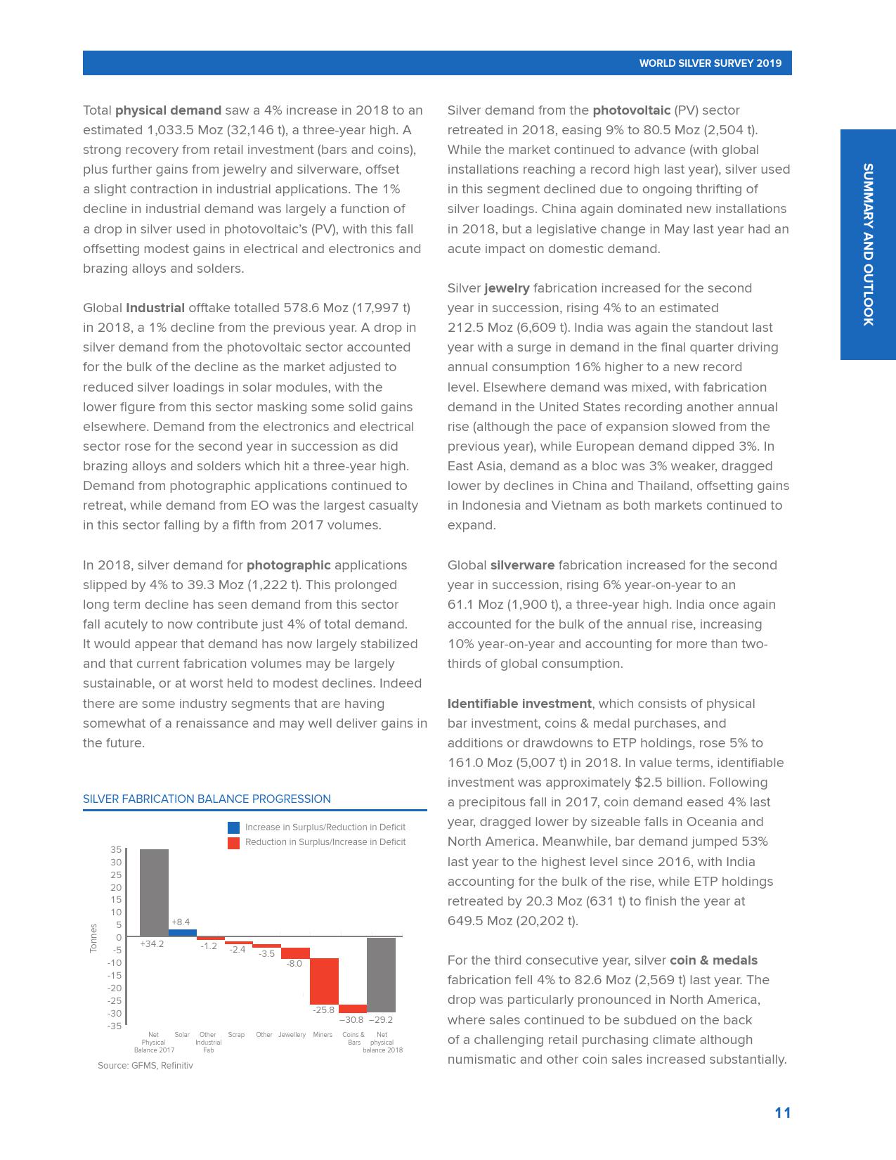 世界白银协会发布的《2019年世界白银调查报告》称,2018年全球白银需求创下三年新高,超过10亿盎司,较2017年增长4%。