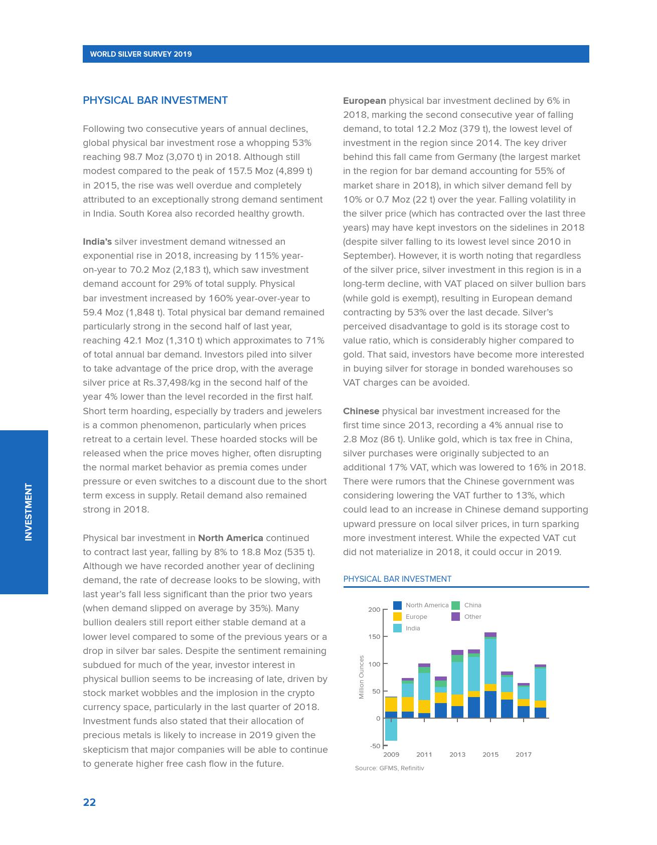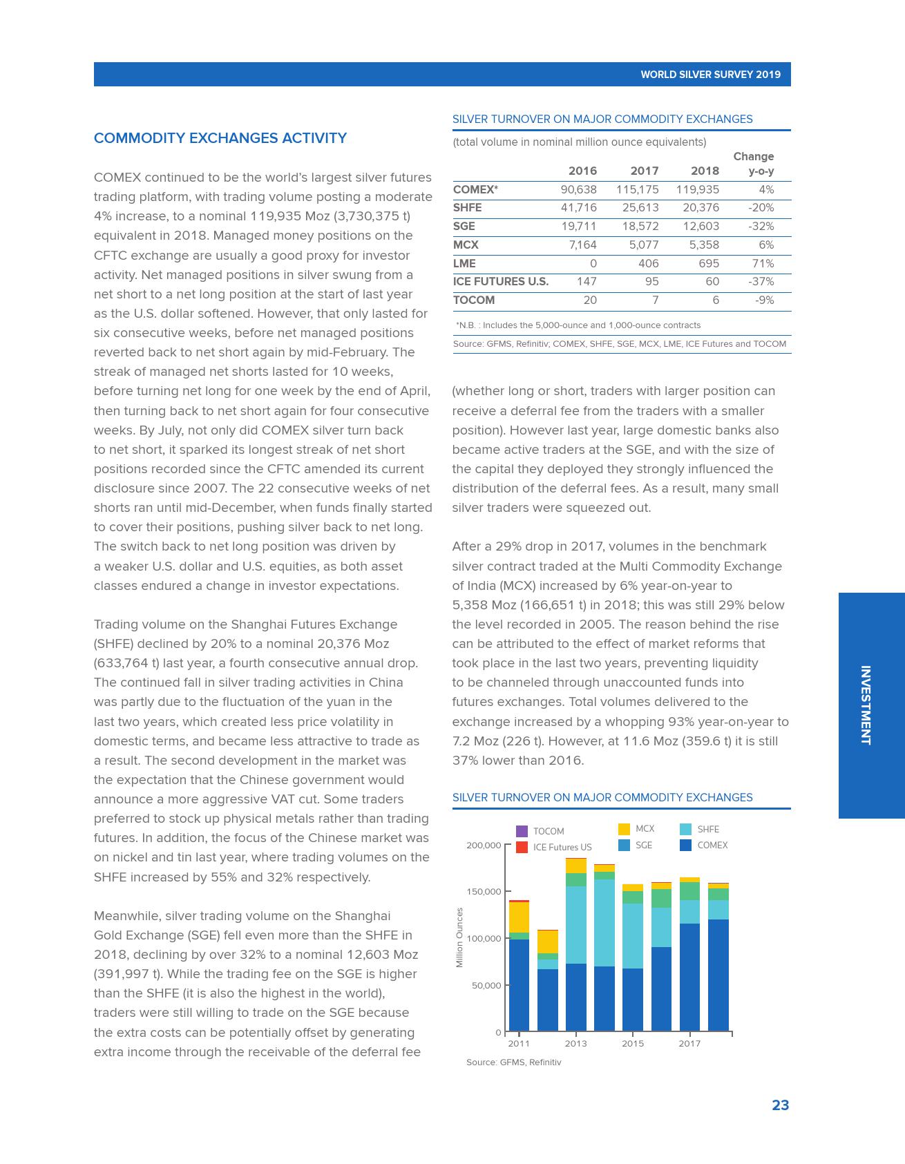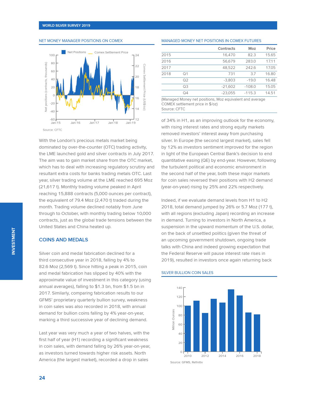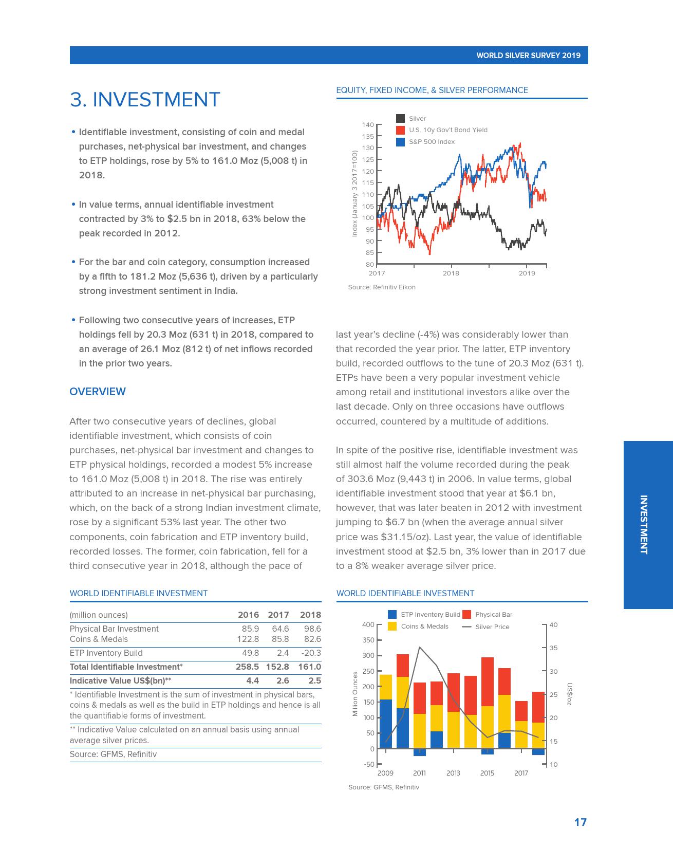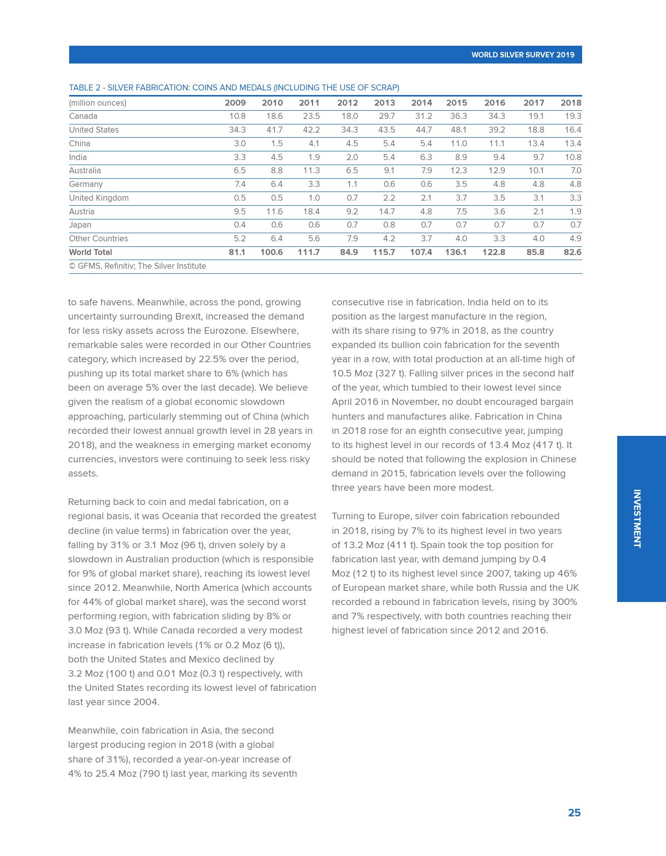 世界白银协会发布的《2019年世界白银调查报告》称,2018年全球白银需求创下三年新高,超过10亿盎司,较2017年增长4%。