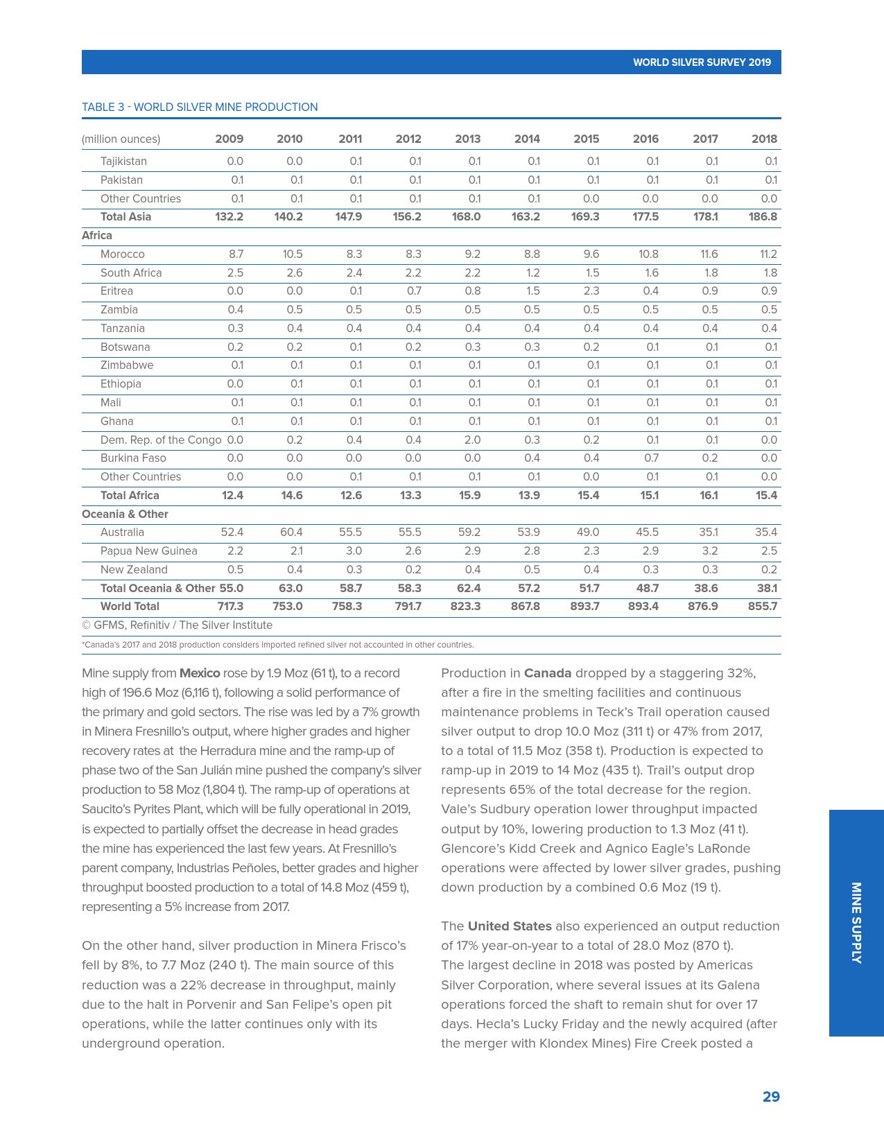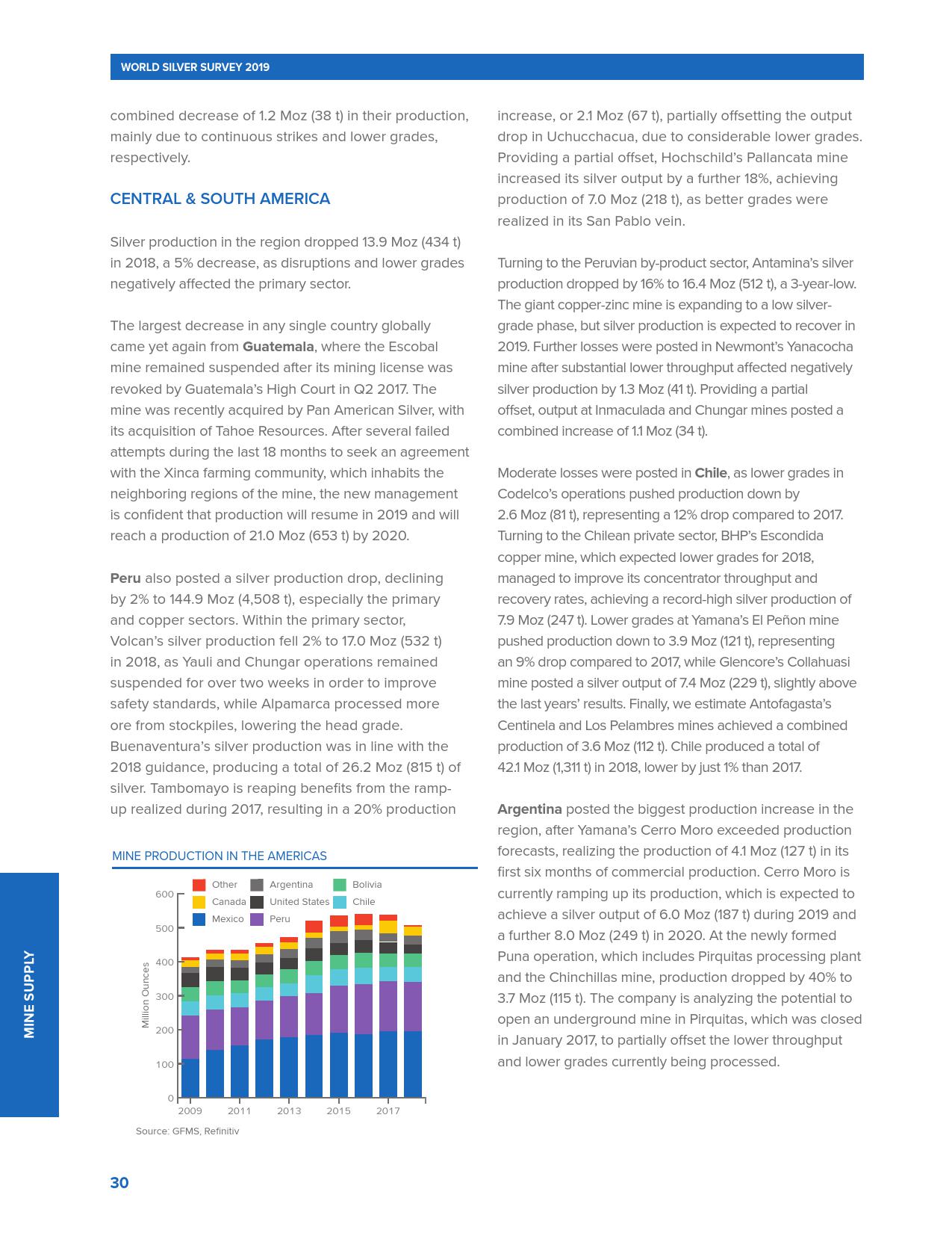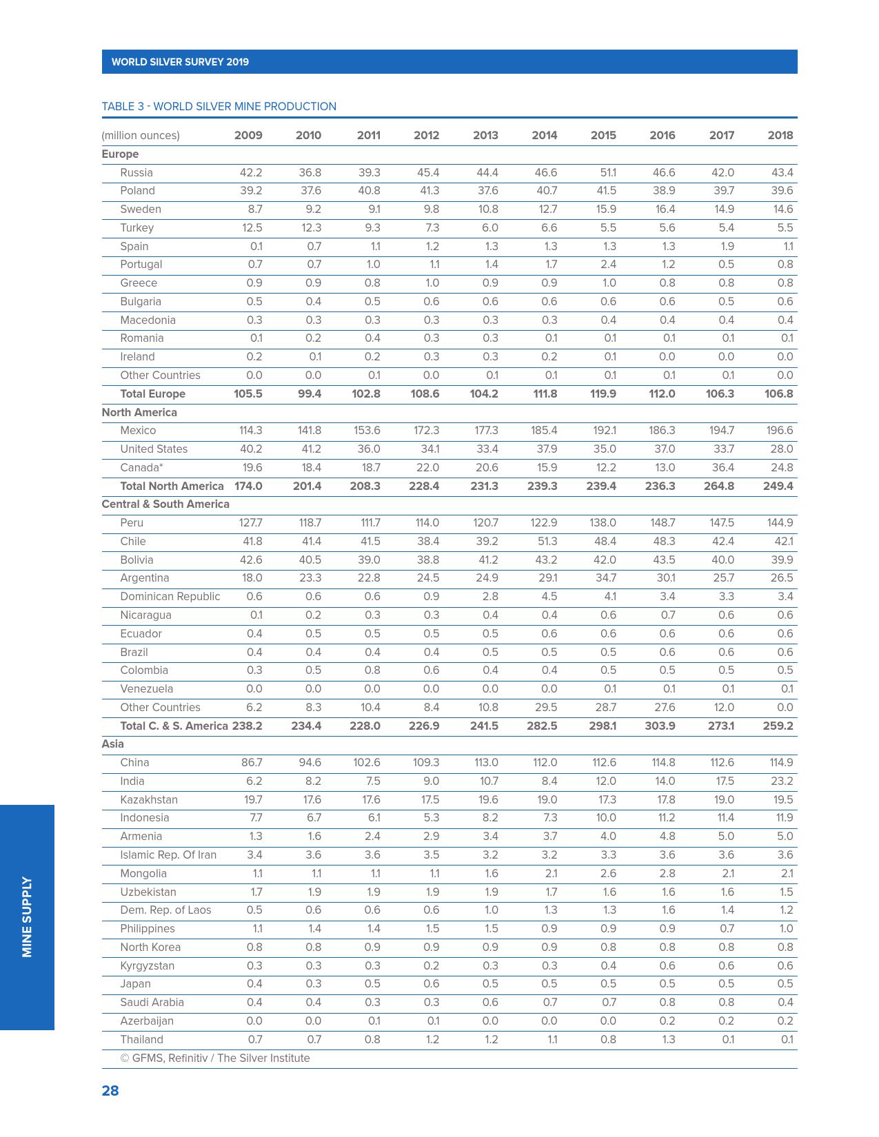 全球十大白银生产国的白银产量在过去的4年里一直在下降。