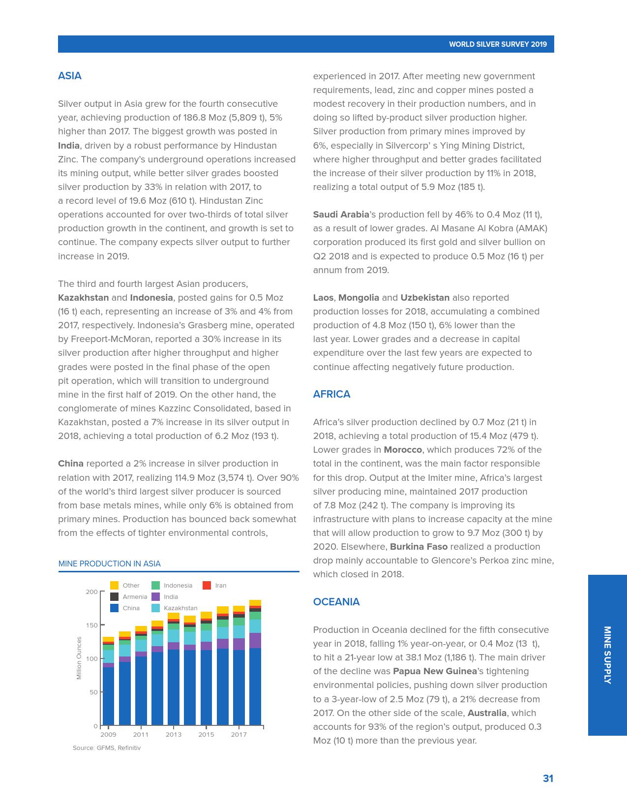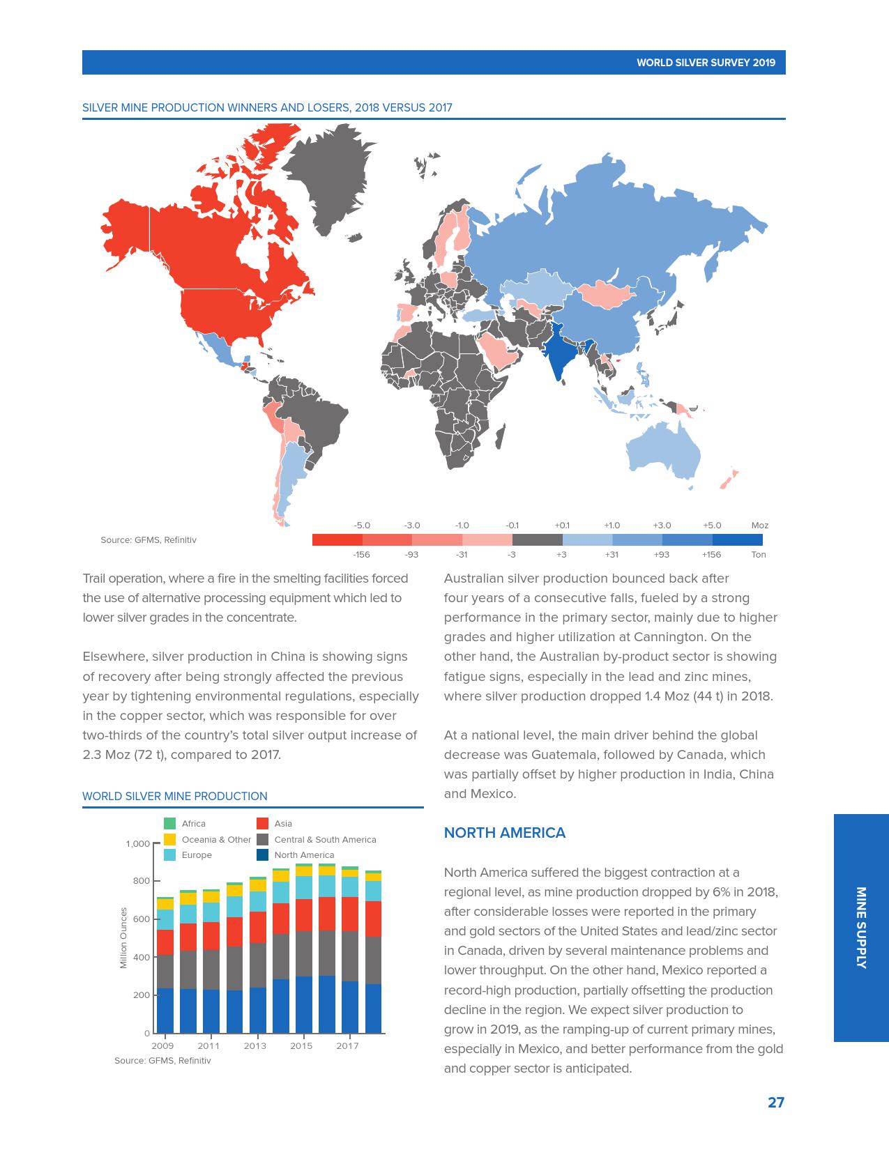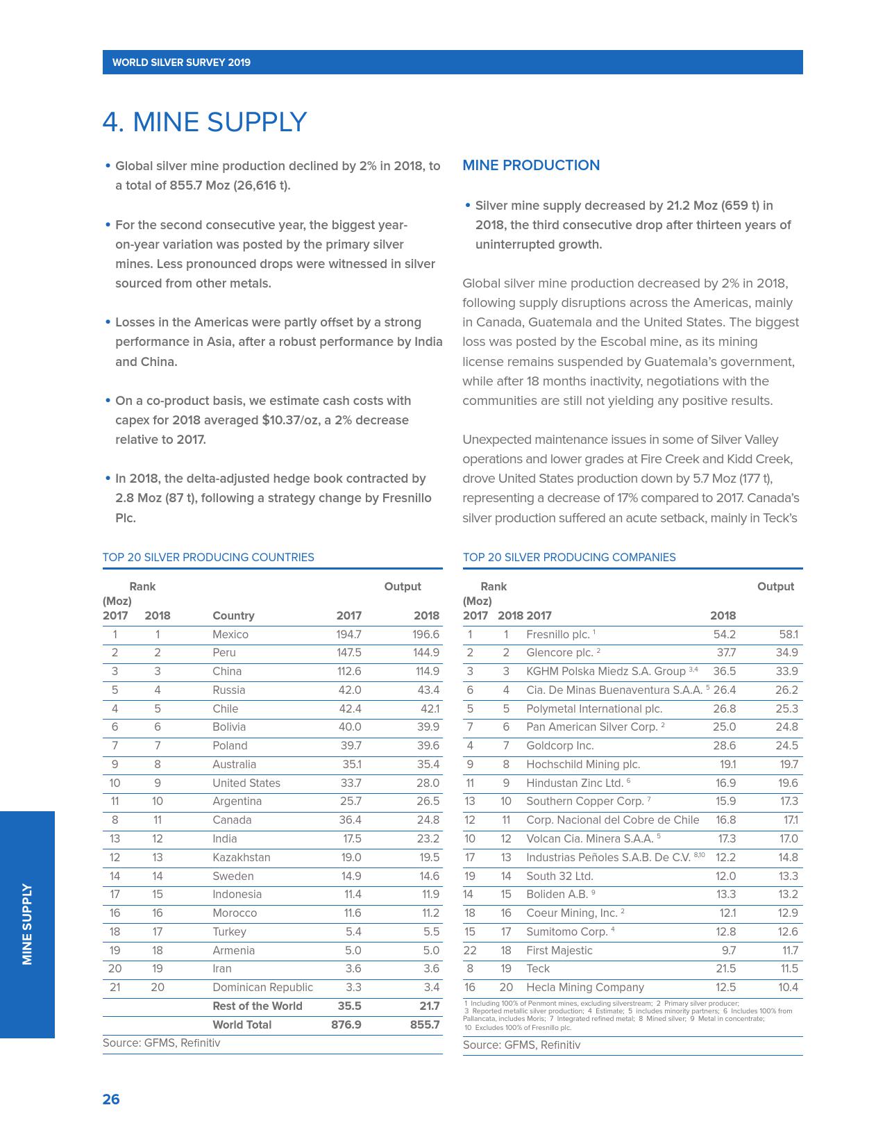 全球十大白银生产国的白银产量在过去的4年里一直在下降。
