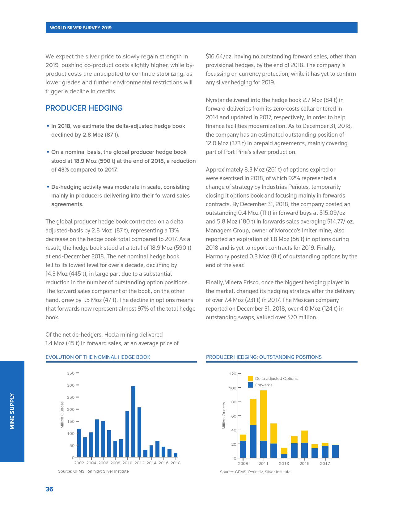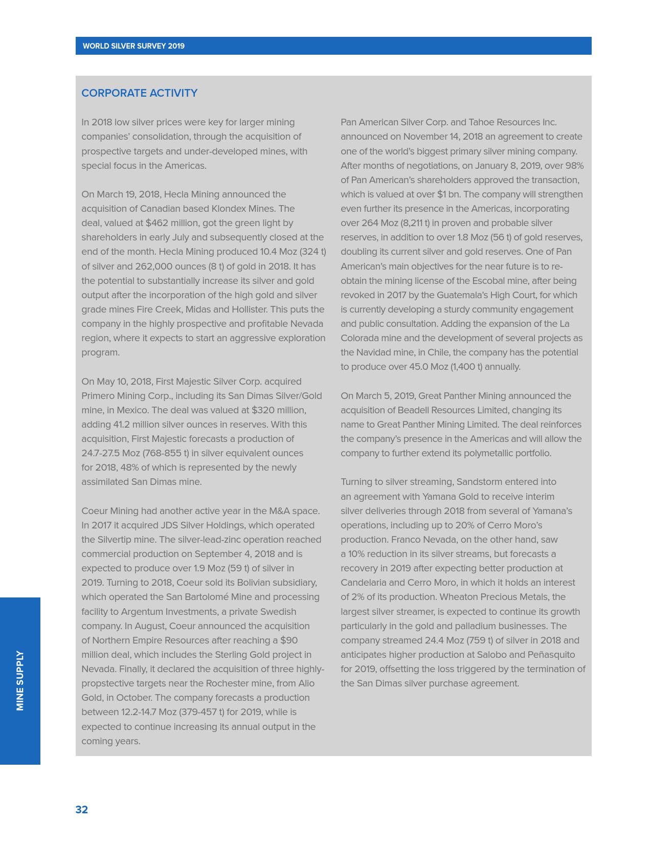 与此同时,全球银矿产量连续第三年下降,2018年下降2%,至8.557亿盎司。
