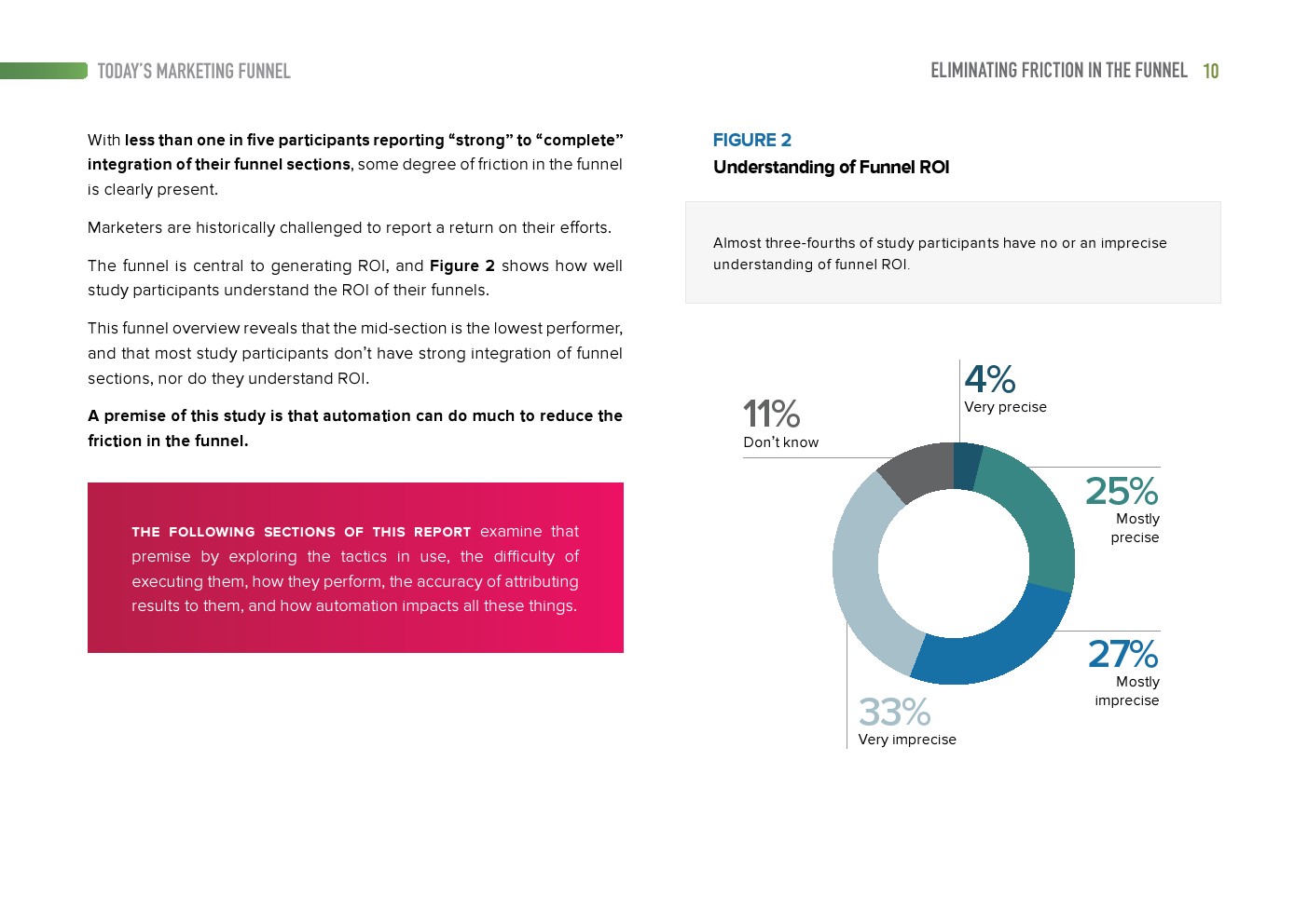 许多营销人员可能会受到漏斗的困扰,只有2%的企业表示他们的漏斗部分已经完全整合。7/10的受访者表示他们要么不知道,要么对漏斗投资回报没有准确的了解。