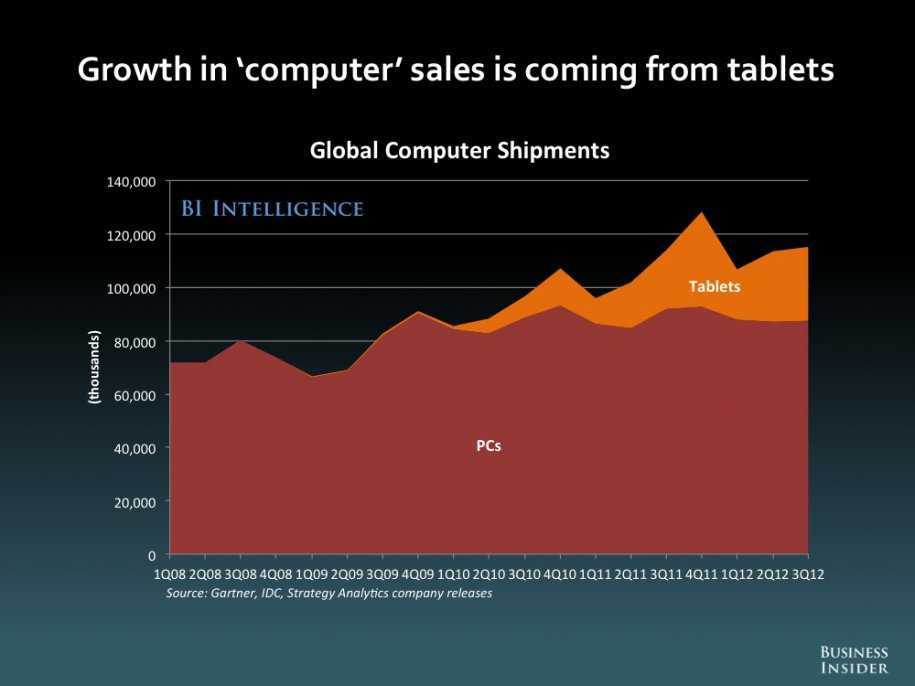 businessinsider:Ipad如何在短短三年改变这个世界 iPad已经发布3年了,让我们共同通过SAi的文章来见证iPad给这个世界带来的改变 全球PC的销量自09年以来一直非常平稳 “电脑”市场的销售增长主要来自平板电脑 一个家庭不止买一部iPad wintel帝国正在解体 今年想买平板的人多于电脑 今年平板电脑的销量将会高于笔记本电脑 到2015年,固定的PC在联网设备中的规模占比将非常少 iOS的开发者需求旺盛,app下载数一路看涨 iOS的开发者确实赚到了钱,至少比其他平台赚多点 互联网的时间变得更长了 下面这张图的标题可能错了 iPad的收入将很快超过dell产品的收入 苹果股价仍在高位 via:businessinsider 更多阅读:Counterpoint:预计2022年采用M系列苹果自研芯片iPad销量或达20%Jumptap:2012年2月移动数据报告eMarketer:谁能挑战iPadChitika:iPad仍占北美80%以上的平板网络流量Retrevo:调查显示美国用户最喜欢平板电脑 iPad和Kindle并驾齐驱comScore:2012年美国平板用户调查:Fire 阴盛阳衰,iPad 满意度高平板电脑将取代PC–中文版–数据信息图 Appcelerator:预计Kindle Fire将凭借其低廉优势影响平板电脑格局Piper Jaffray:美国土豪拥有并渴望苹果产品iPad,孩子们的最爱eMarketer:2012年美国iPad用户将翻倍Forrester Research:苹果占据全球73%的平板电脑市场份额IDG:2012年iPad商务应用调查FixYa:调查显示iPad为问题最少平板电脑ChangeWave:平板电脑的企业买家中84%选择iPad