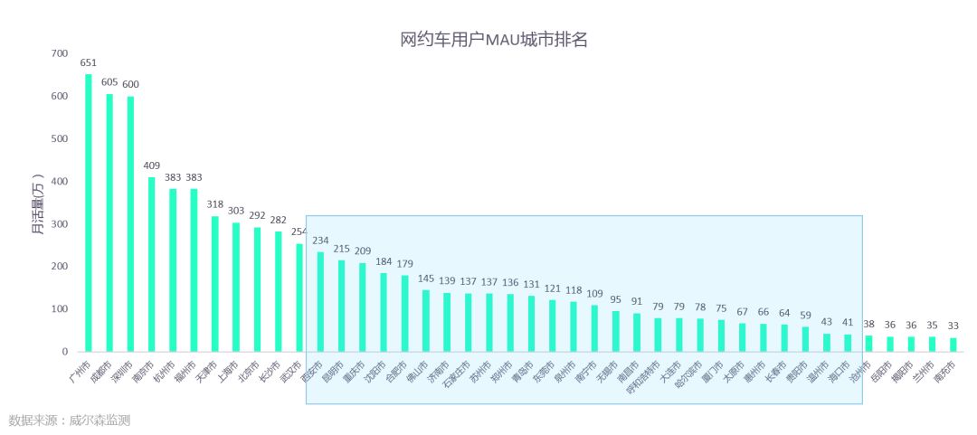 网约车用户MAU城市排名