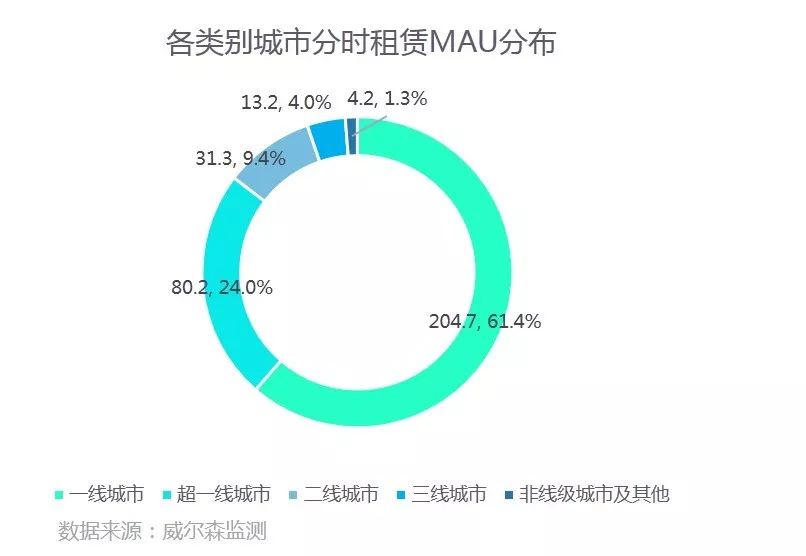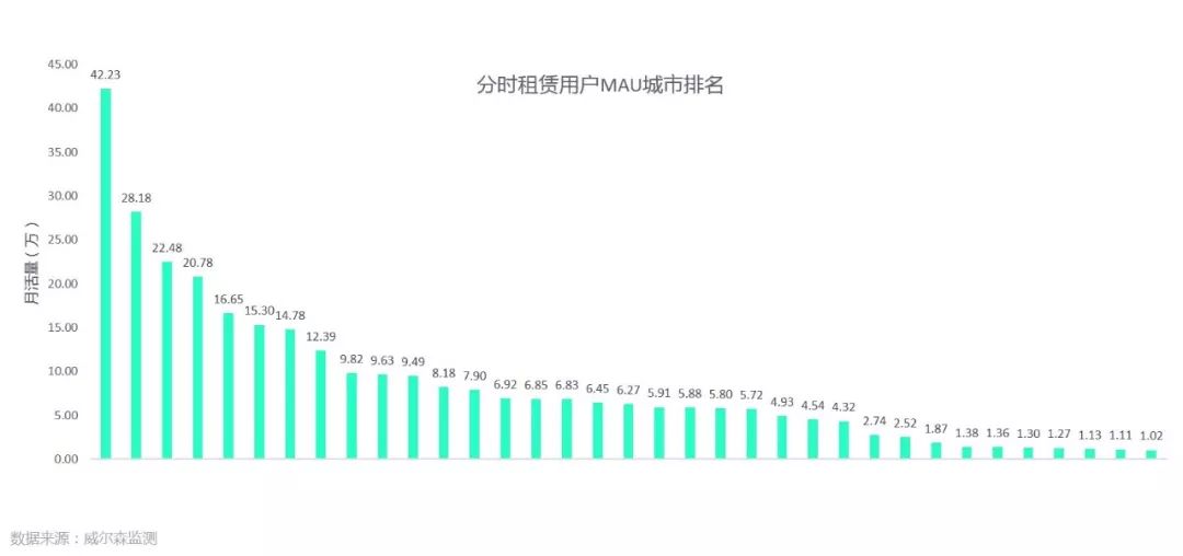 分时租赁用户MAU城市排名