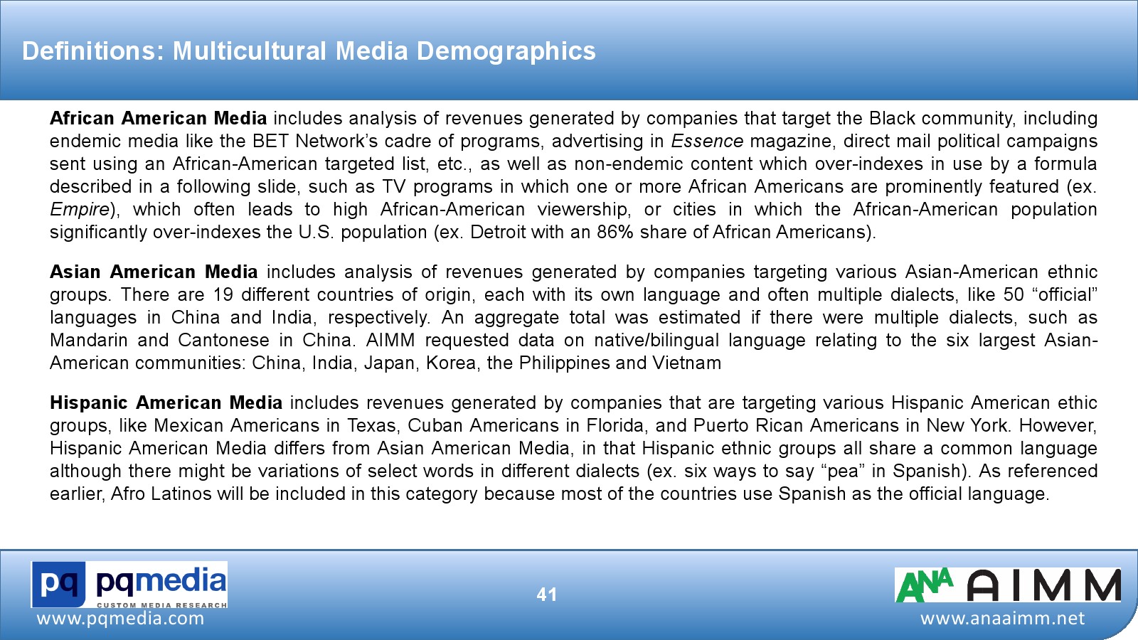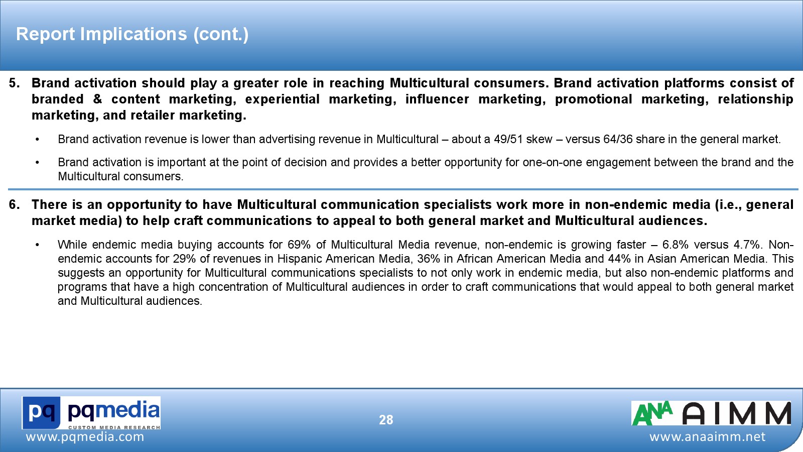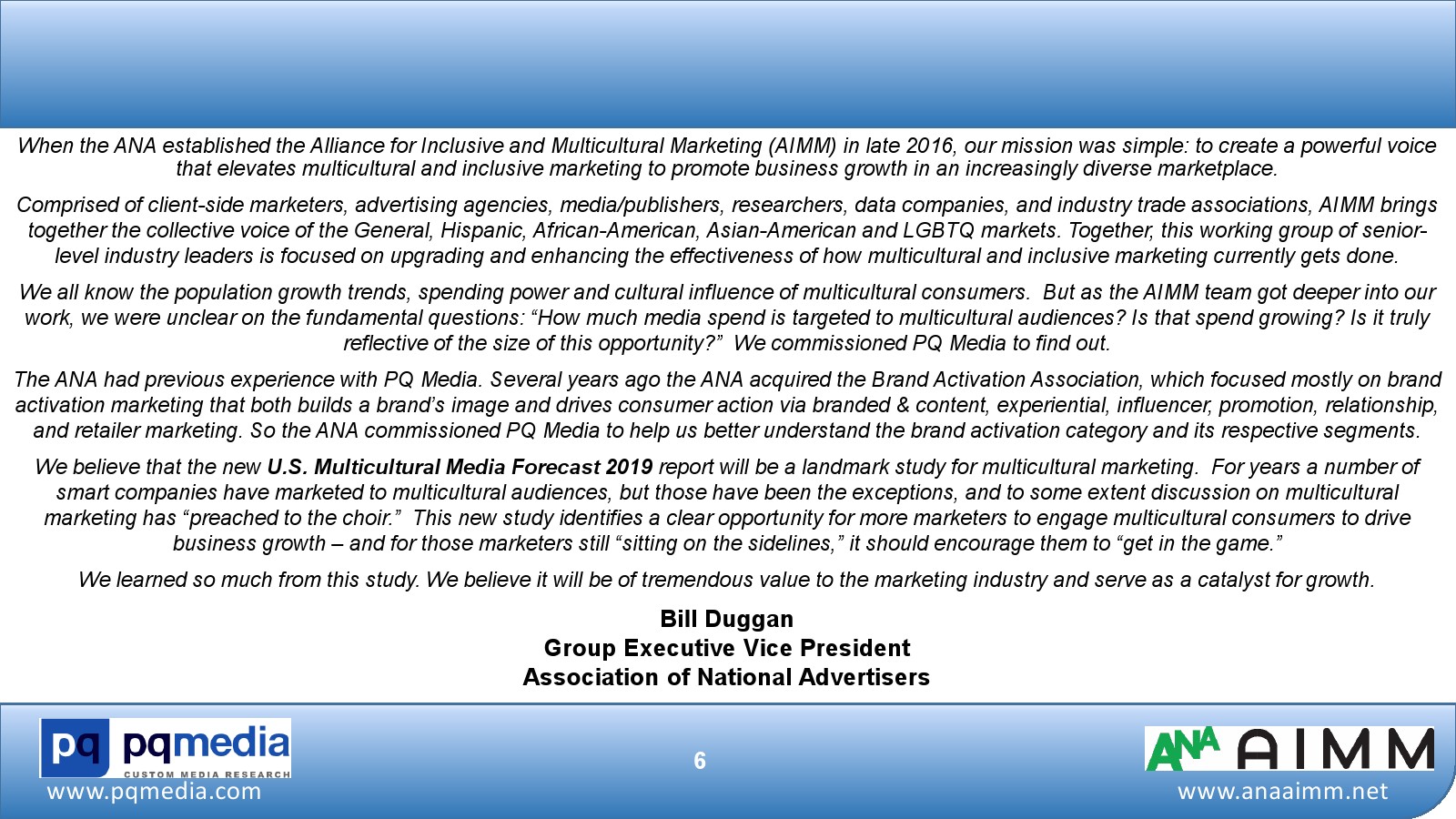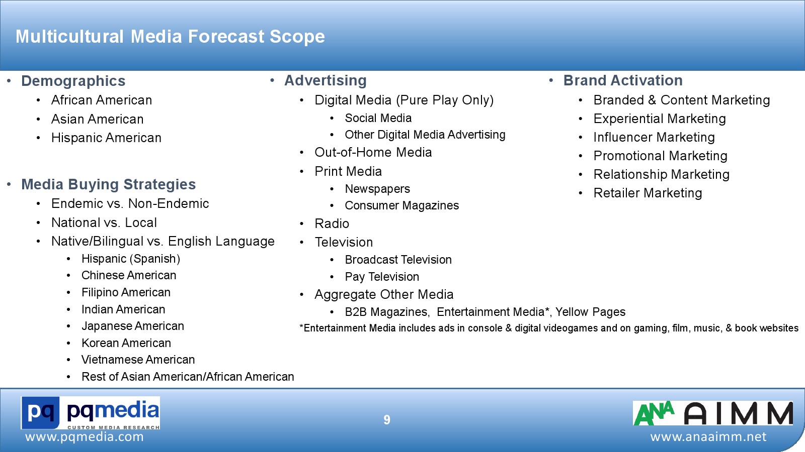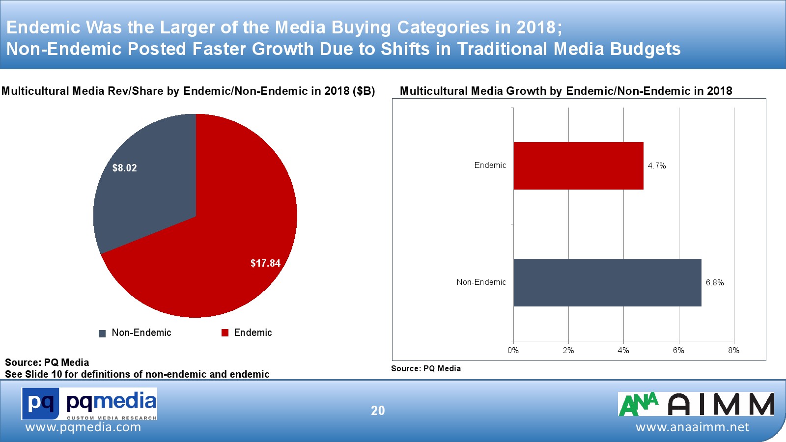 根据PQ Media和ANA的一份报告,多文化媒体支出去年增长5.6%,达到259亿美元。虽然今年多文化广告支出的增长预计将放缓至4.5%,但增长率将在2020年迅速回升,预计将增长6.3%,达到287亿美元。