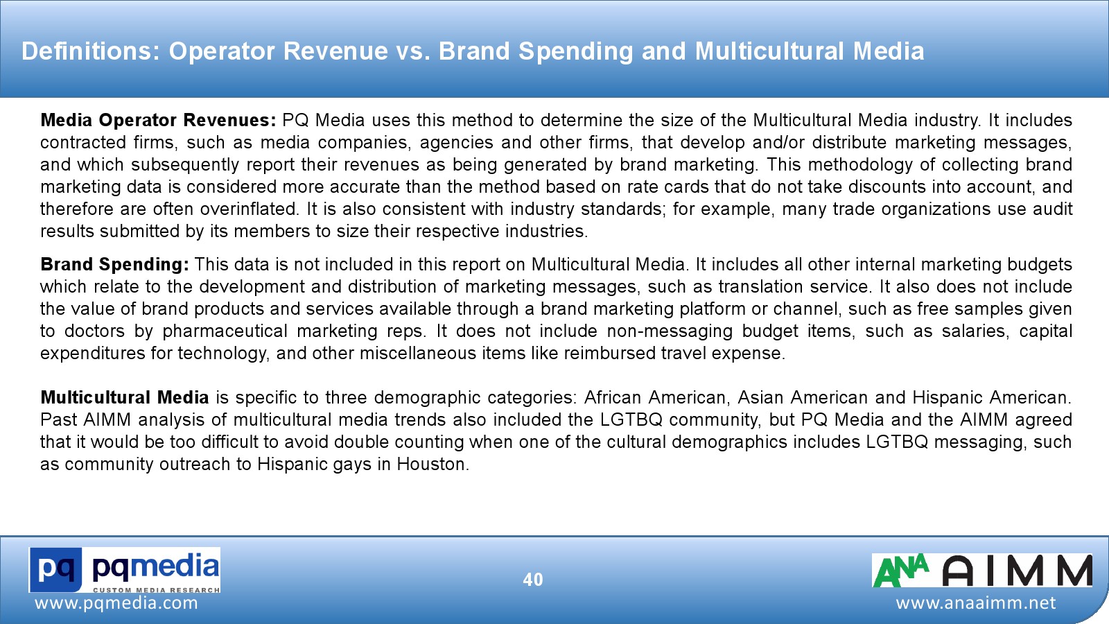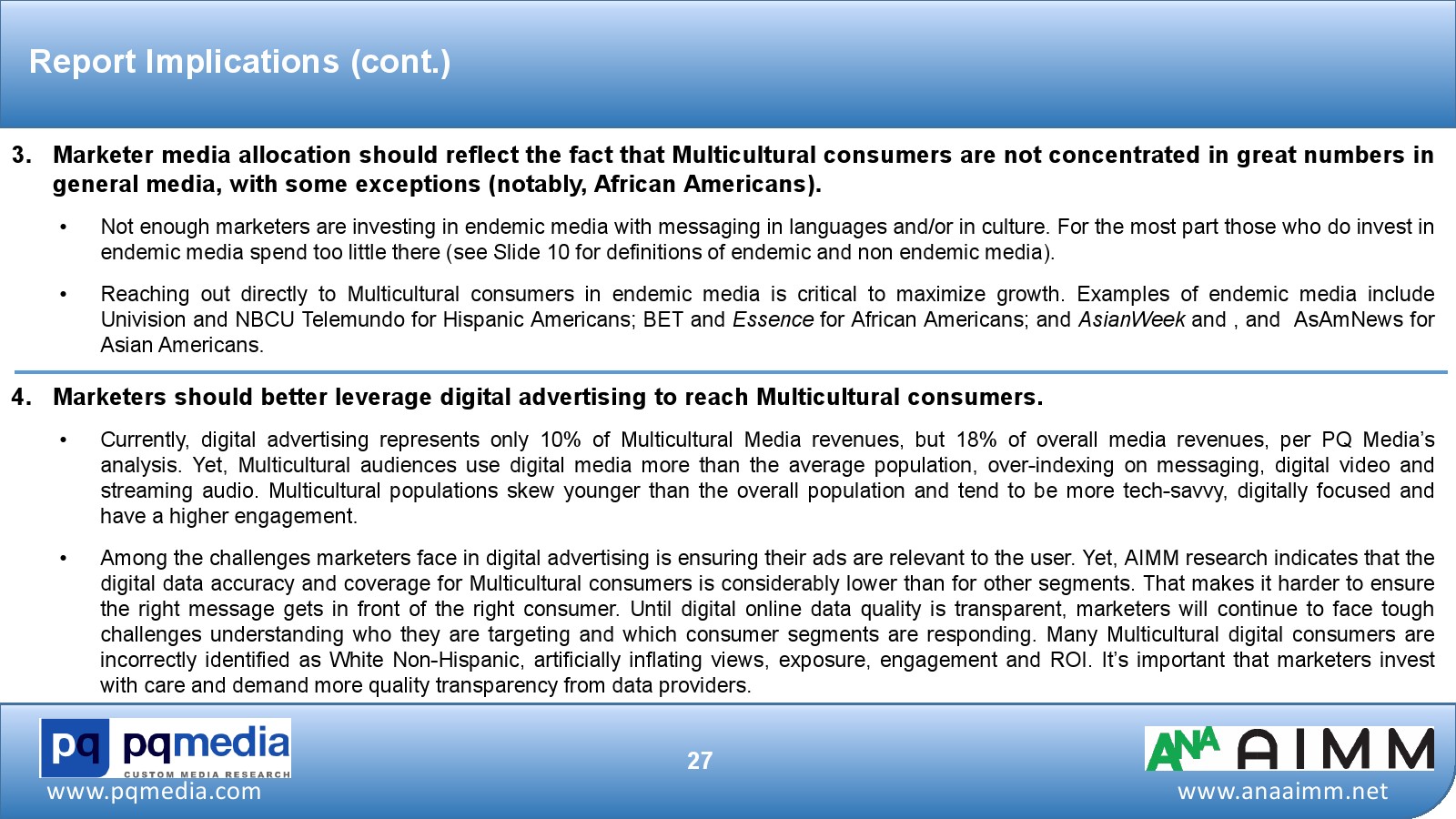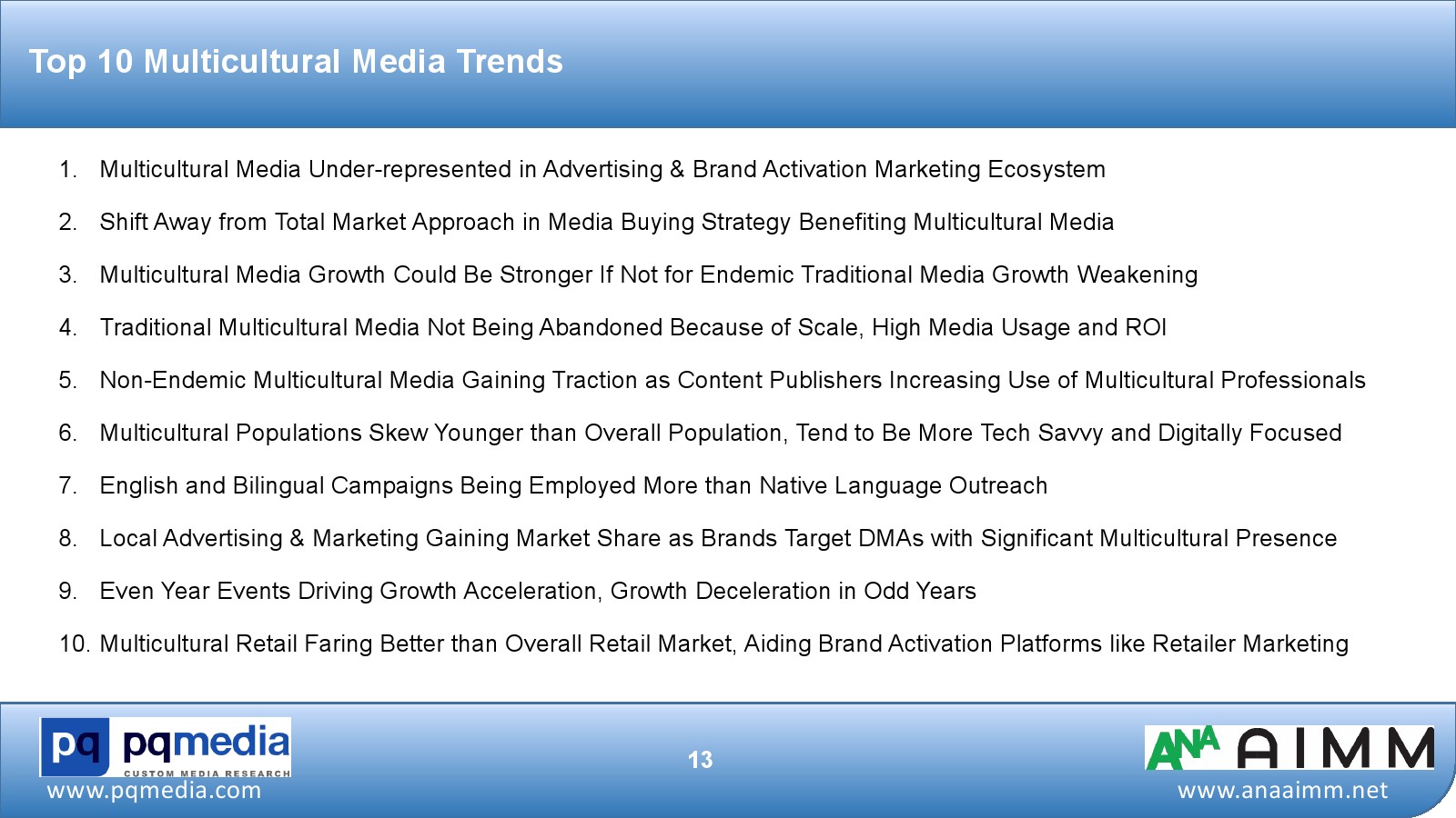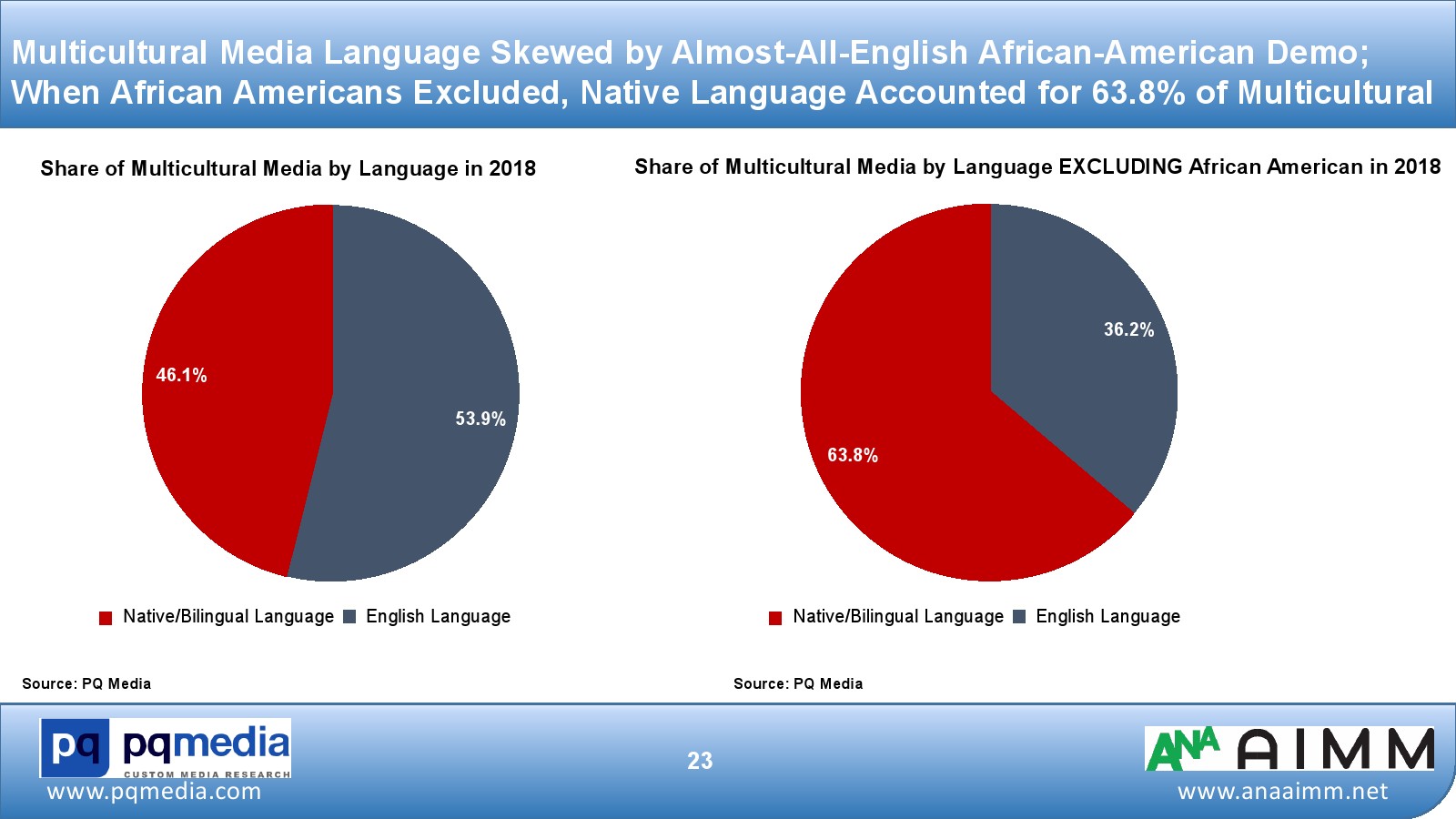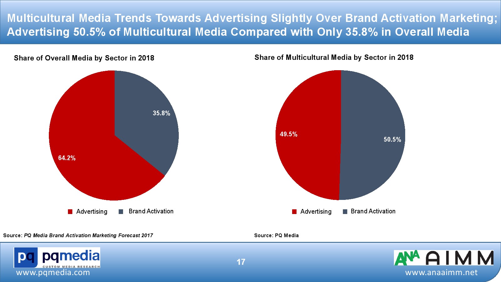 数字广告的情况正好相反。这个渠道在多元文化媒体上的支出仅占1/10,而整个媒体的支出接近1/5(18%)。
