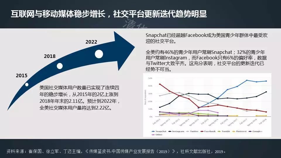 第三,传媒产业发展进入大众自媒体传播时代,大众媒体、平台化媒体、自媒体等传媒形态并存且相互竞争。