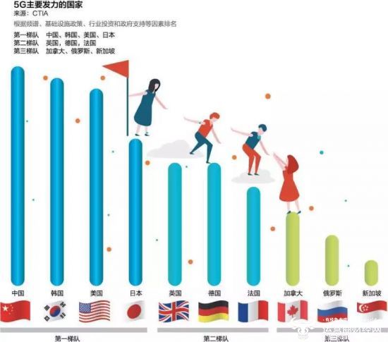 目前,在全球5G竞争格局中,中国、韩国、美国、日本位于第一梯队,英国,德国,法国紧随其后。