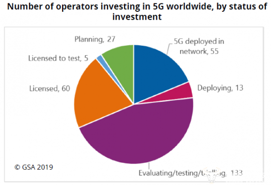 运营商财经网获悉,在这293家运营商中,55家已在网络中部署了5G,13家正在部署5G,133家正在评估/测试/试验5G,60家刚获得部署牌照,5家获得测试牌照,剩下27家正在规划5G部署。