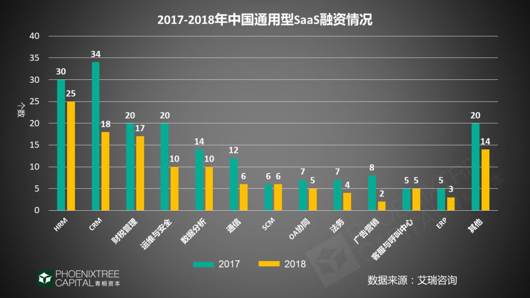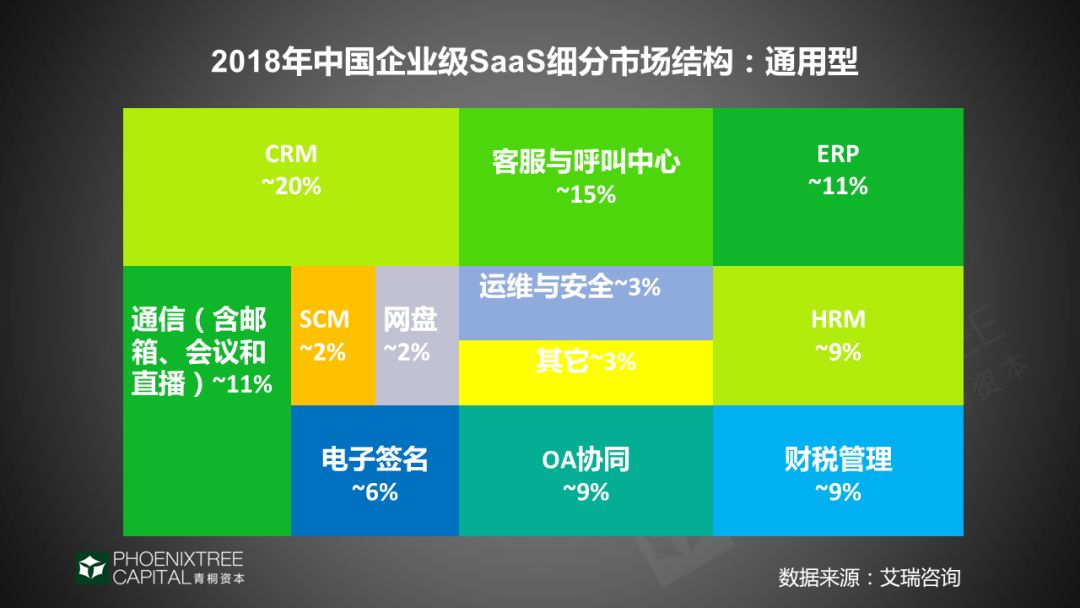 在国内通用型SaaS中,CRM、ERP市场规模和渗透率领先,竞争激烈,赛道“人满为患”,绕不开传统厂商、互联网巨头的夹击。人力资源管理、财税管理等细分赛道,创业公司的机会更多,资本更为关注。
