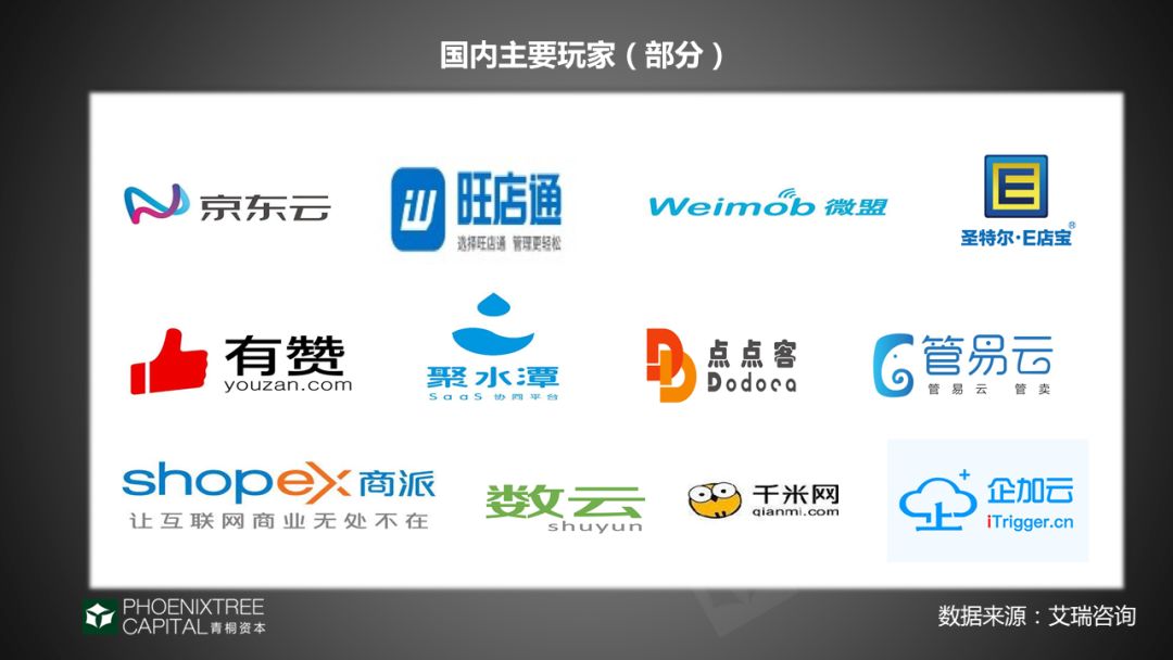 零售电商SaaS玩家众多,已跑出一定规模的有:有赞、微盟、商派、旺店通、聚水潭、管易云、E店宝等,其中有赞、微盟均已上市。另外,传统软件公司也对零售电商SaaS市场垂涎,金蝶通过收购管易云切入。