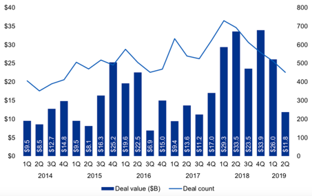 图1:2014-2019Q2 金融科技融资活动