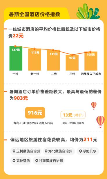OYO酒店发布2019暑期大数据报告,报告基于OYO酒店大数据平台7月1日-7月31日的搜索数据,了解消费者的住宿需求,分析了多项指标数据,对暑期旅游人群画像做深度分析,解读全国游客旅居生活新“姿势”。