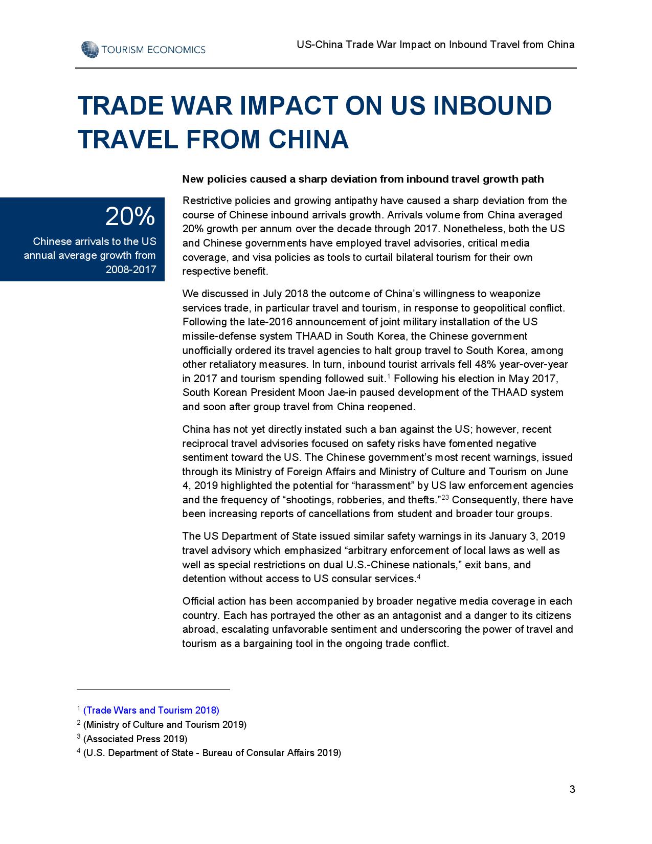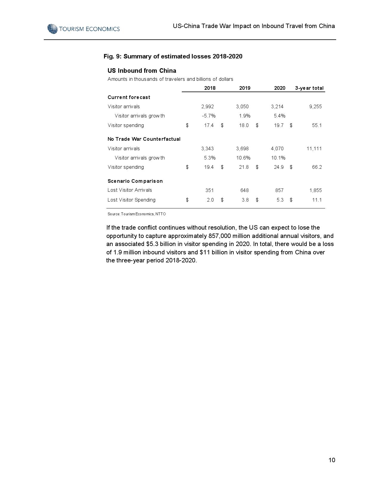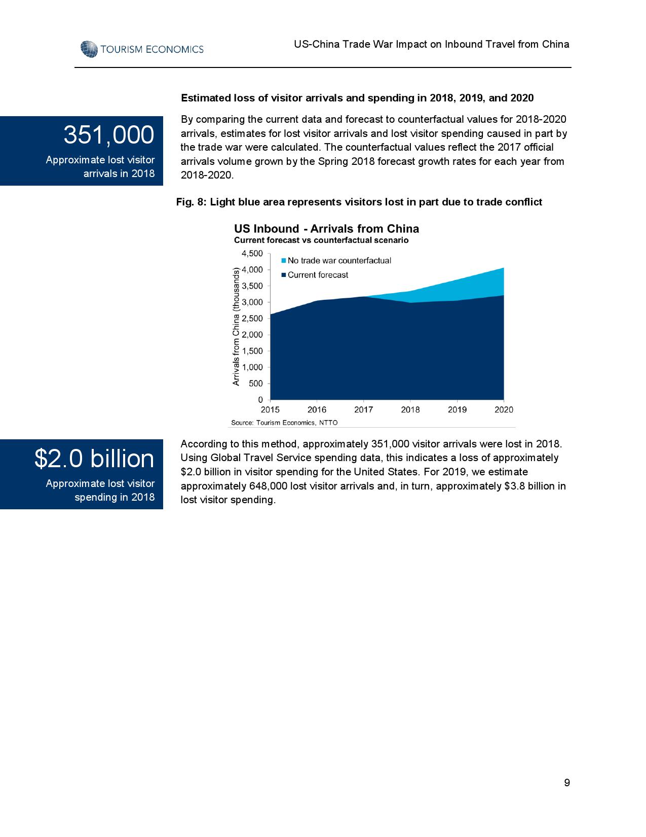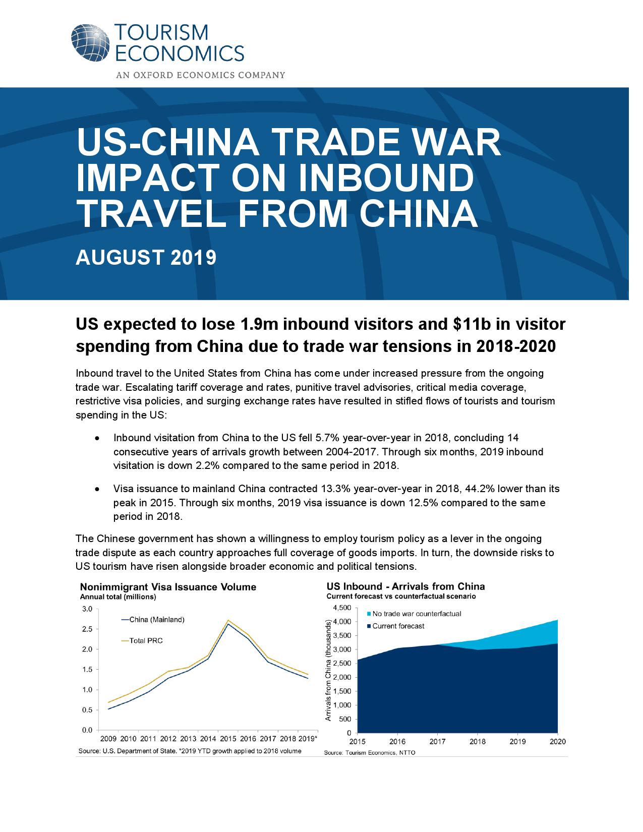 根据牛津经济研究院(Oxford Economics) 旗下公司Tourism Economics的一项最新报告,自2018年初贸易摩擦开始以来,中国来美游客在逐渐减少,该报告预计,持续的紧张局势将导致明年中国游客减少200万人次。也就是说,为时两年多的贸易摩擦将使美国旅游业损失110亿美元。