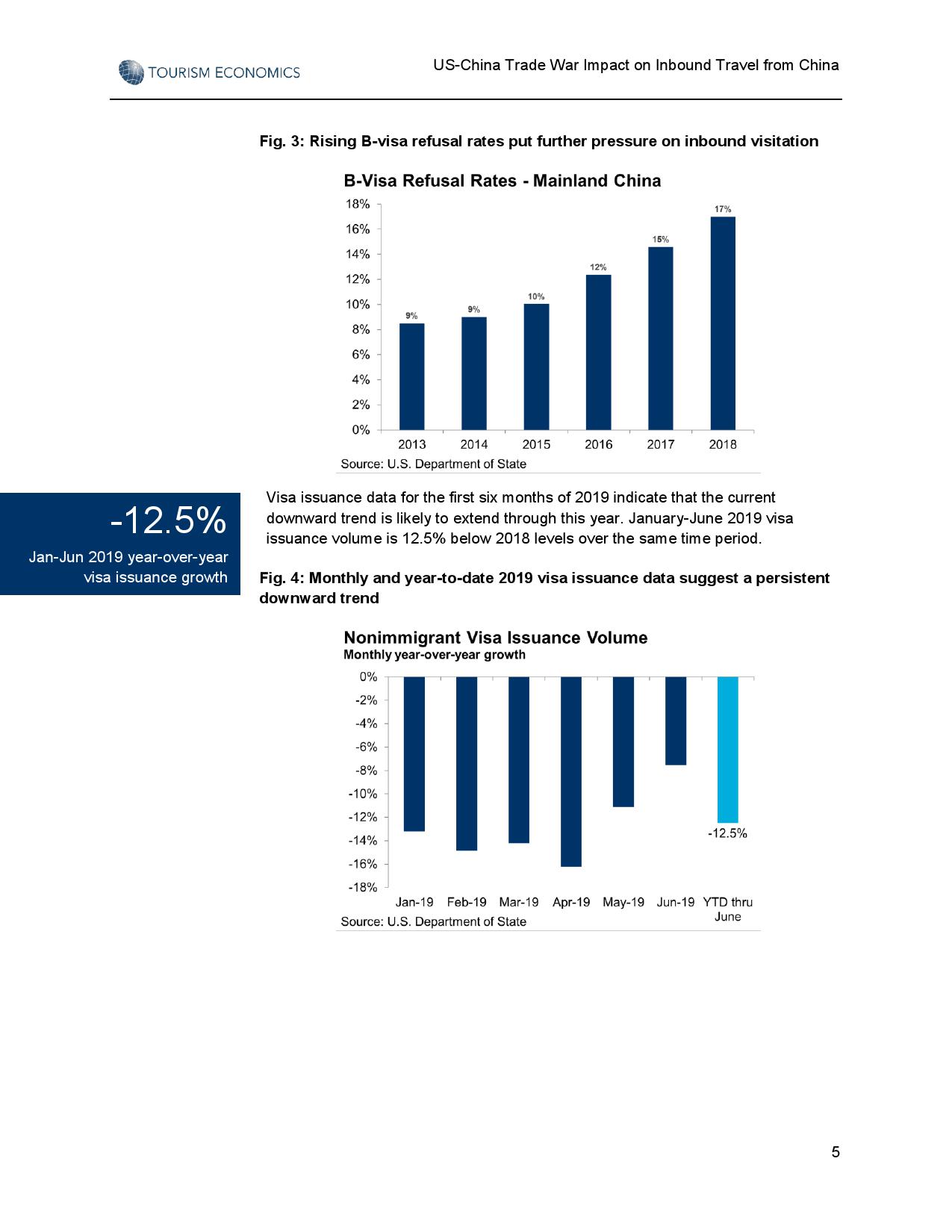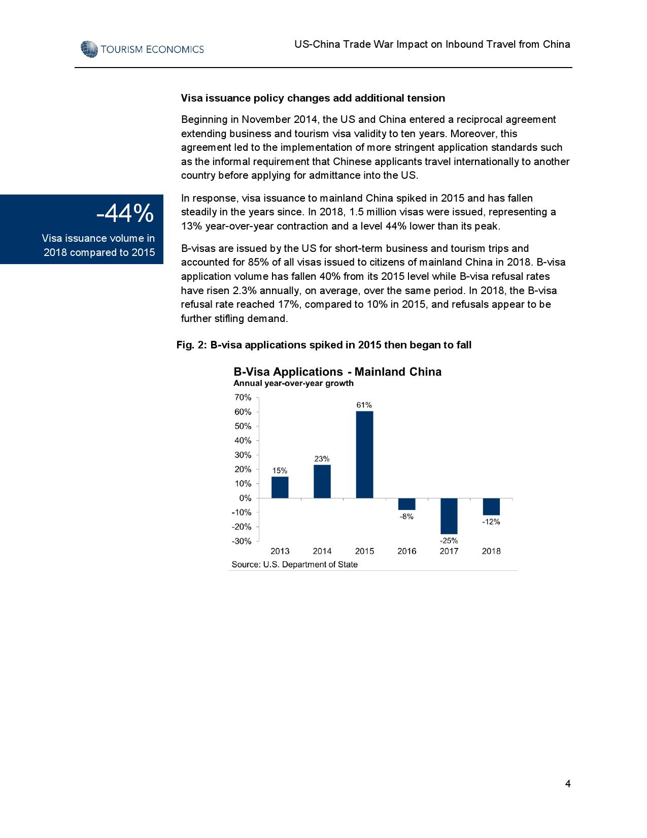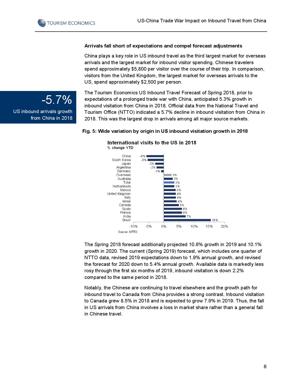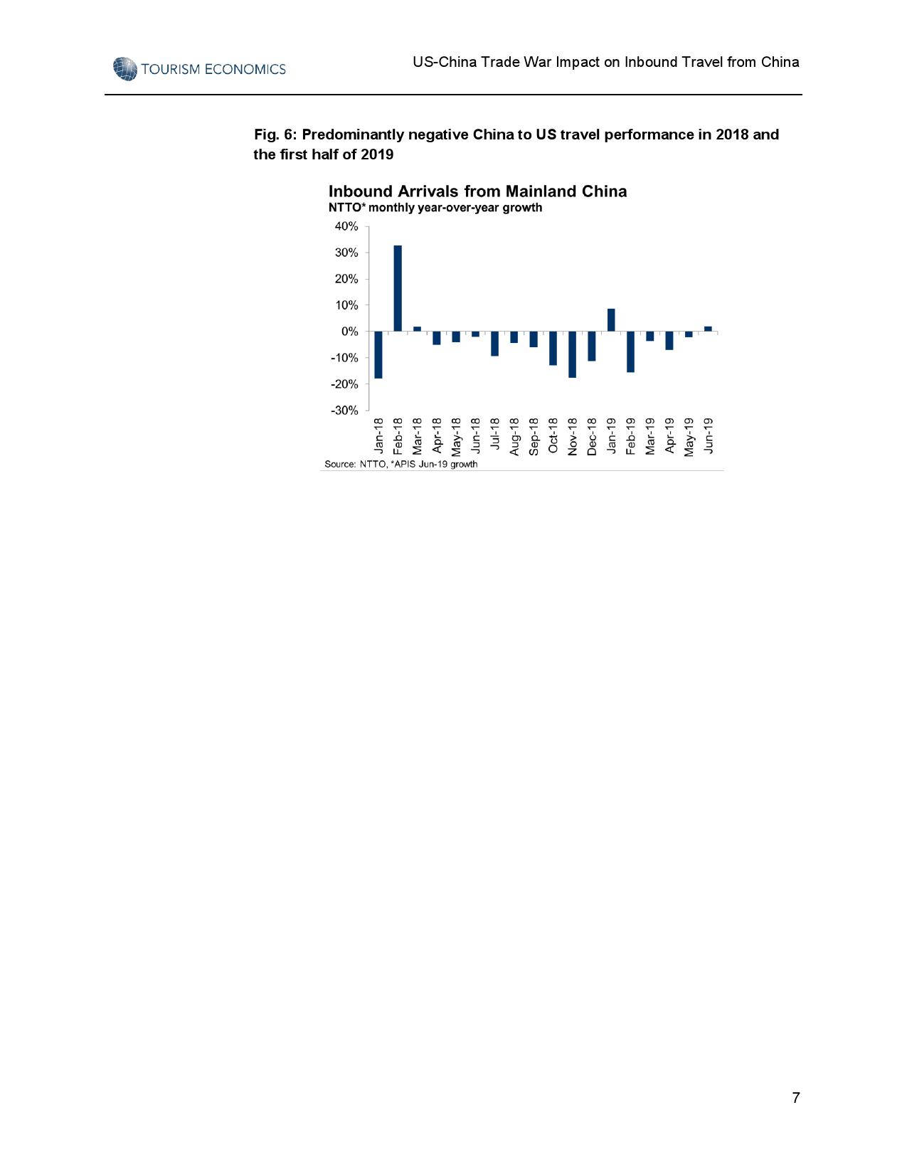 根据Tourism Economics的数据,2018年中国来美访问量比一年前下降了5.7%,这是中国入境美国人数14年来首次减少。而2019年前6个月的中国入境美国人数也较去年同期下降了2.2%。