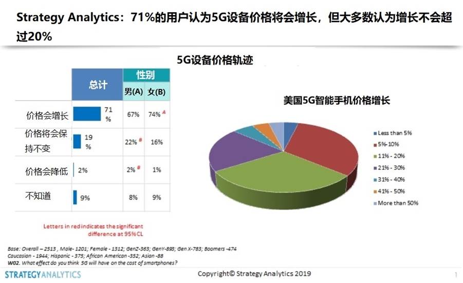 Strategy Analytics高级副总裁David Kerr表示,“四分之三的用户认为5G将提高智能手机的价格, 三分之一的用户认为价格将上涨不到10%。 现实是,2019年5G设备价格可能接近1000美元。 今天只有约7%的买家花了这么多钱。”Kerr补充道,“该行业已经创造了一个5G问题,其中五分之一的人认为他们已经拥有5G手机。 即便在苹果粉丝中,27%的人认为他们的旗舰设备已经是5G,尽管苹果还没有这样的设备。”
