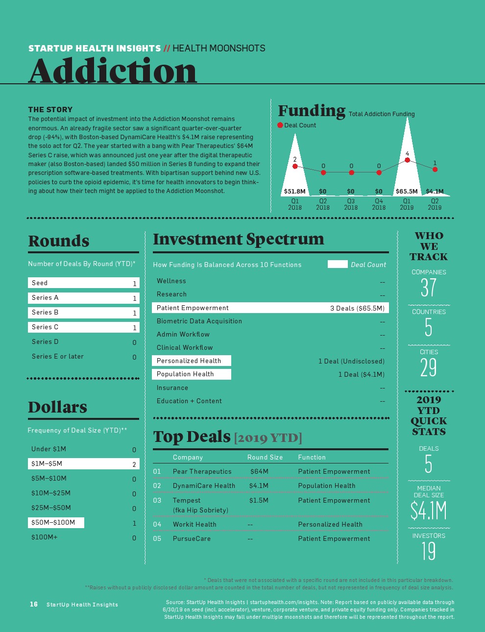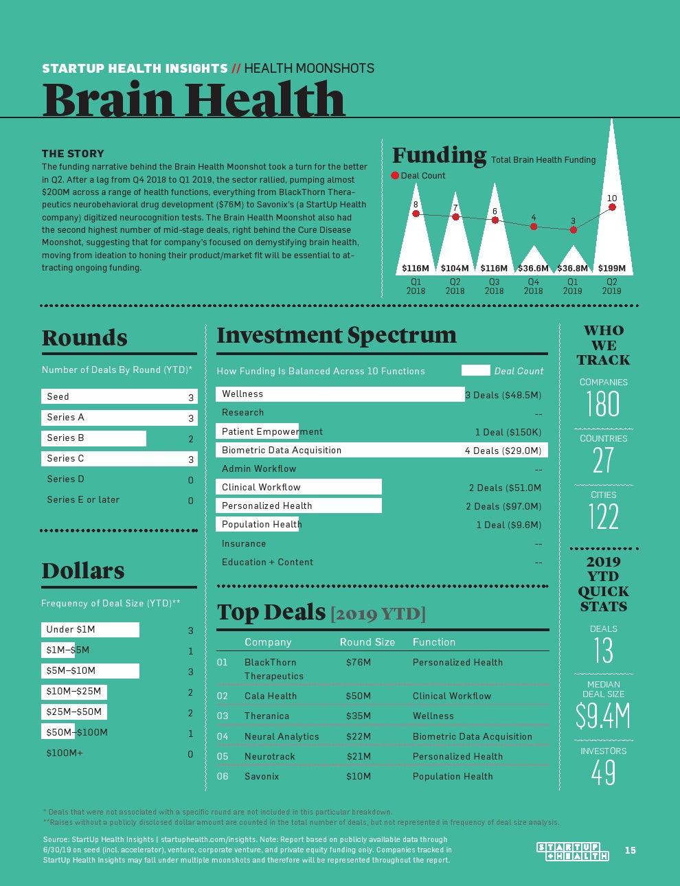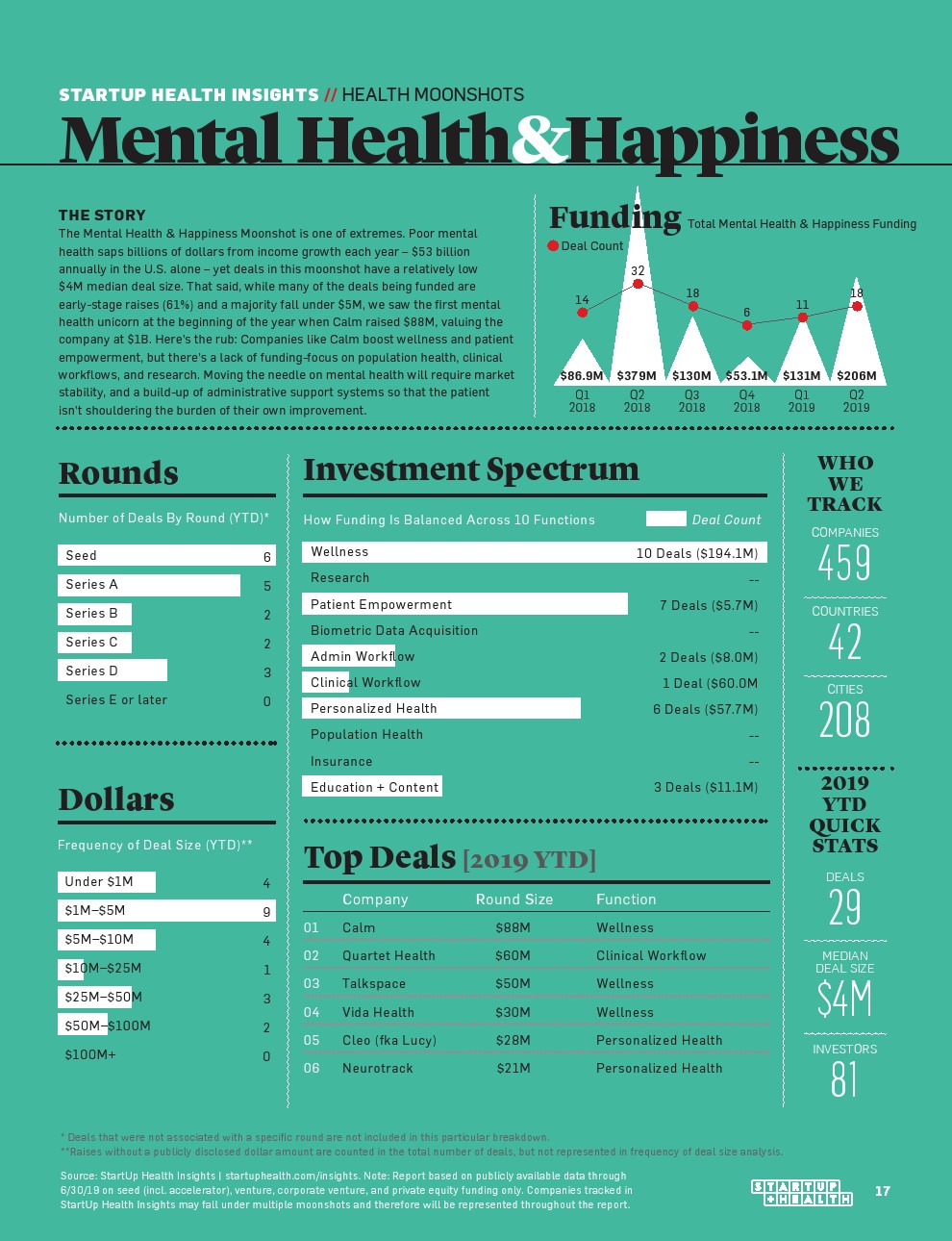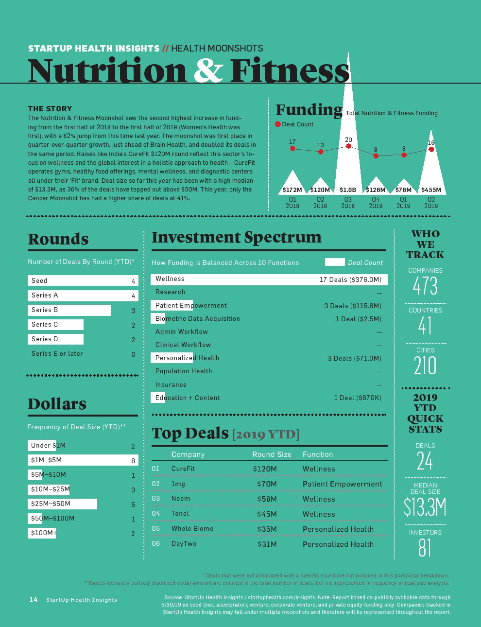 从2018年到2019年,女性健康、大脑健康和女性护理等投资脱颖而出。女性健康卫生领域投资额增长114%,交易数量增长57%。