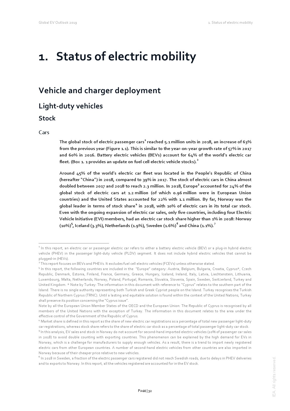 IEA(国际能源机构)发布了“2019年全球电动汽车报告”。