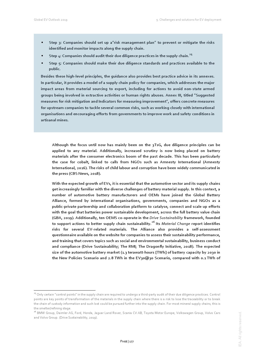 电动汽车和相关的电池生产要求意味着汽车行业对新材料的需求增加,需要更多地关注原材料供应。可追溯性和透明度是通过促进可持续矿物采购来帮助解决与原材料供应相关问题的关键。制定具有约束力的监管框架对于确保国际多方利益相关者合作能够有效应对这些挑战。电池寿命终止管理,包括汽车电池的二次应用,电池废物管理标准和电池设计的环保要求,对于减少电池所需的关键原材料的数量和限制短缺风险也至关重要。
