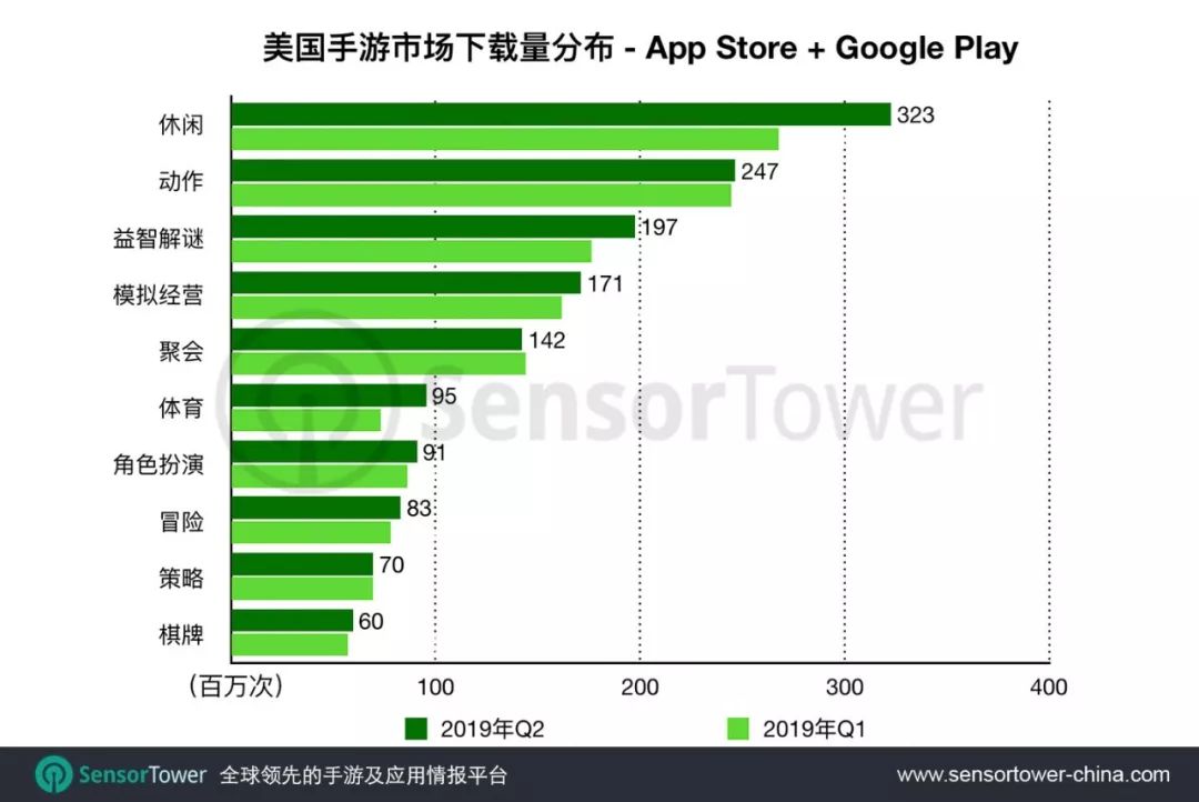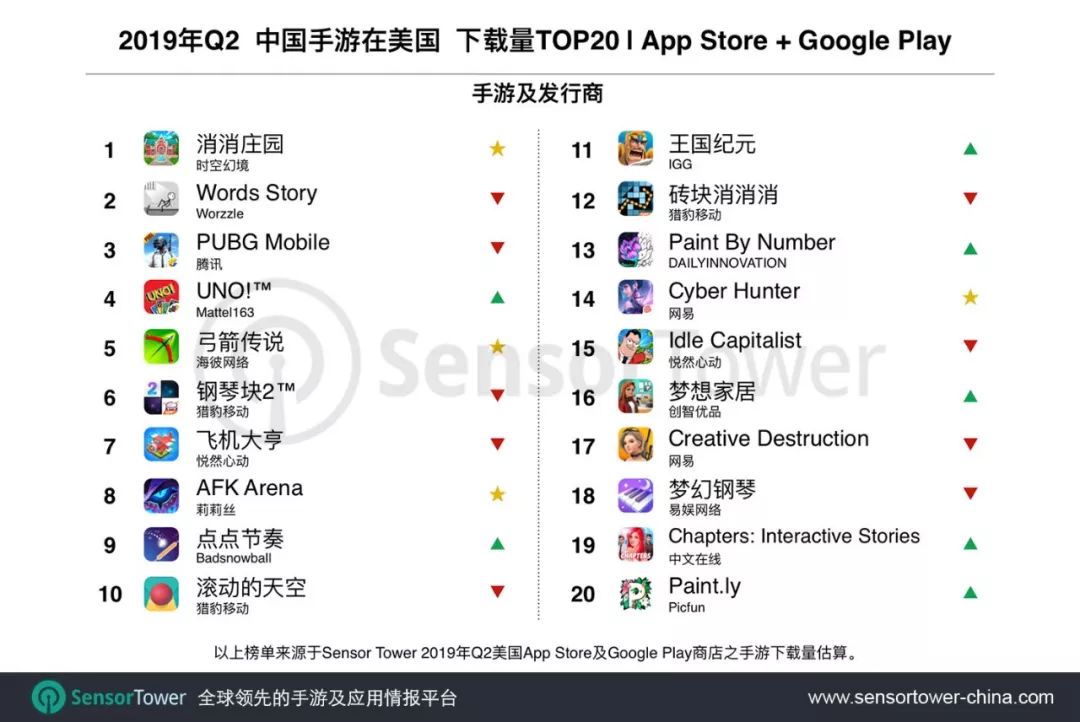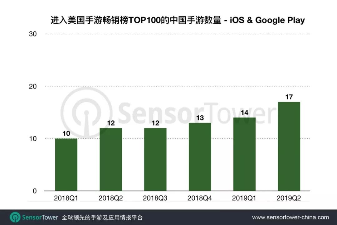 Sensor Tower 商店情报最新数据显示,2019年Q2美国手游市场发展趋势,以及中国厂商市场份额。详细数据如下。