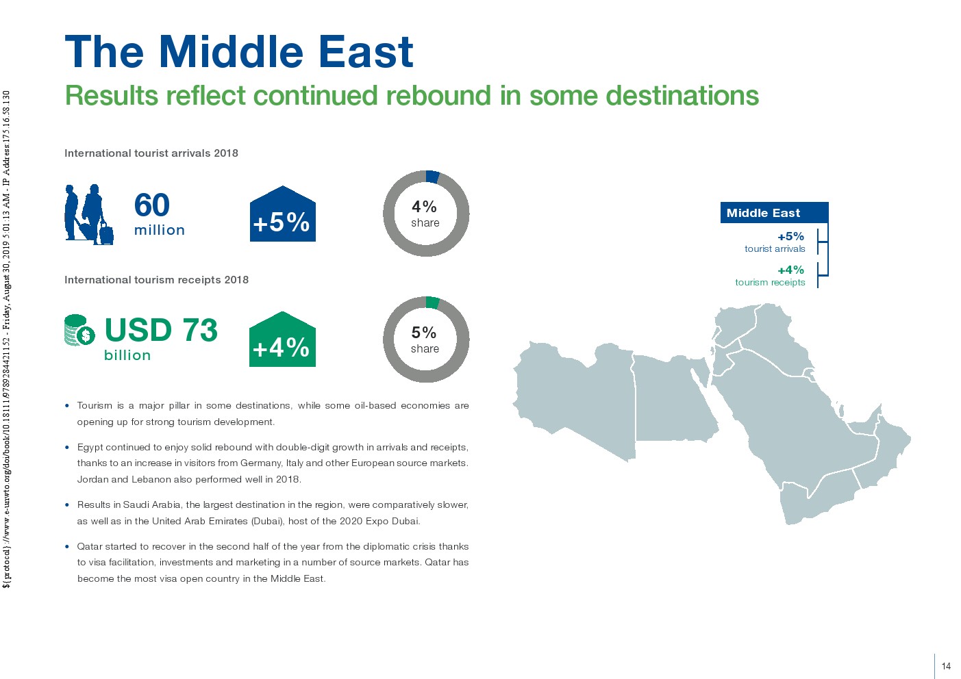 在相对强劲的全球经济、新兴经济体中不断壮大的中产阶级、技术进步、新商业模式、负担得起的旅行费用和签证便利化的推动下,2018年国际游客人数增长了5%,达到14亿人。这一数字比UNWTO预测的提前了两年。