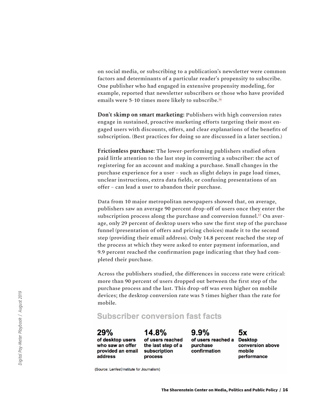 4.如果希望提高转换率,必须非常关注读者。用户收到付款消息后,发布商可以根据用户在网站上的历史记录投放有针对性的营销消息,并提供简化的购买流程以提高转化率。在所研究的新闻机构中,收到发布者电子邮件的读者订阅的可能性可提高5到10倍。那些在社交媒体上关注出版商品牌的网民订阅的可能性提高4-6倍。