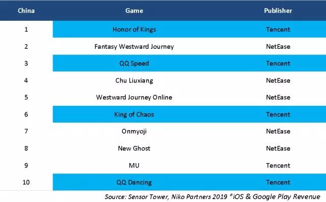 图表:2018年中国前十大移动游戏中的电竞游戏