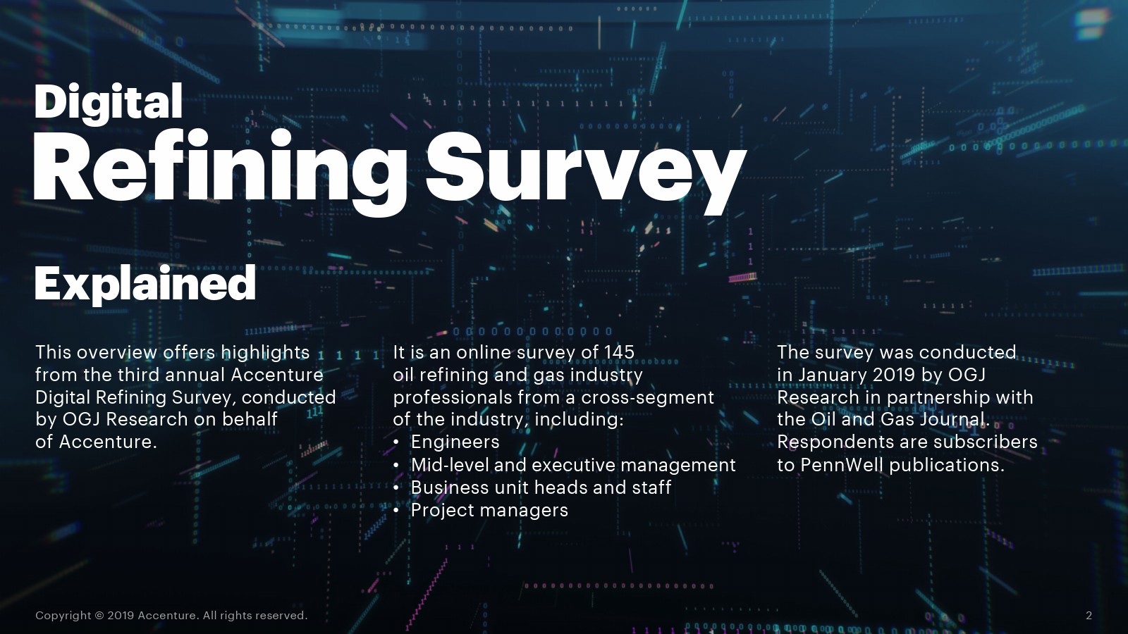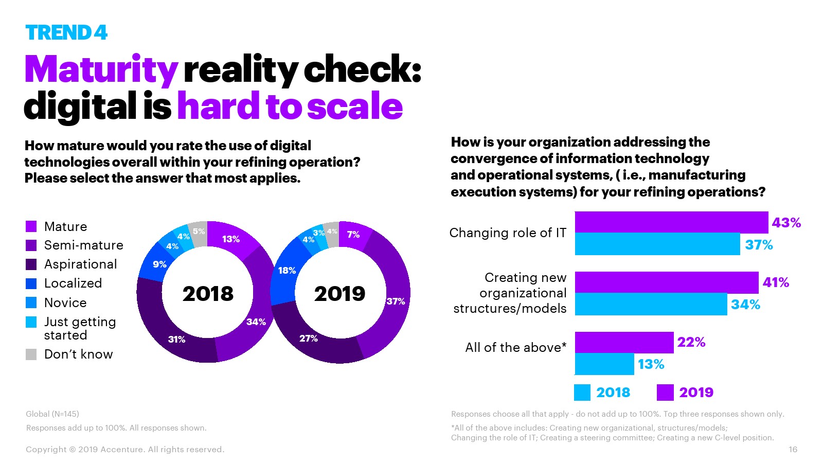 根据这份报告,今年只有44%的受访者将他们在炼油操作中使用的数字技术整体上归类为成熟或半成熟,低于去年的48%。