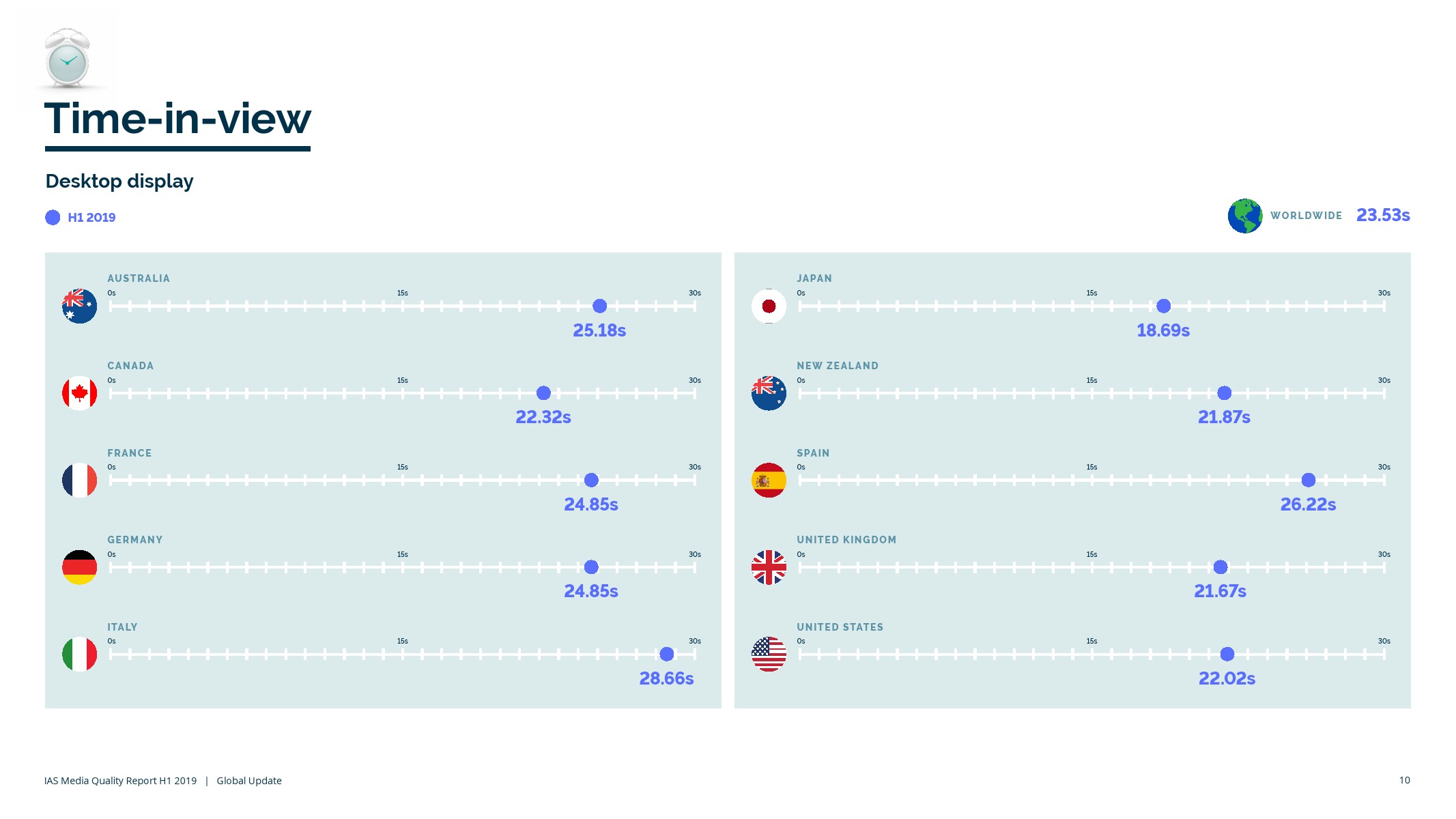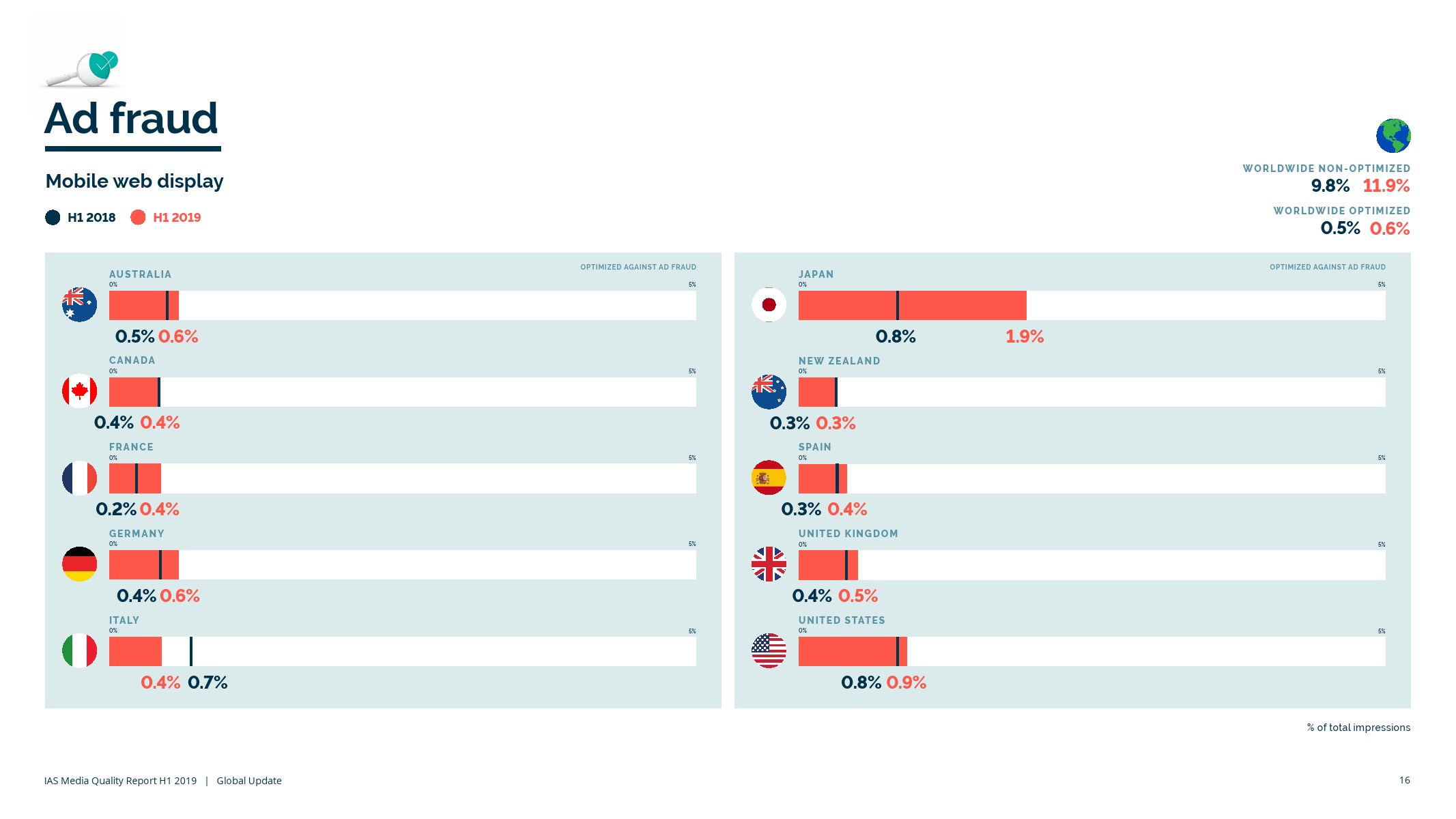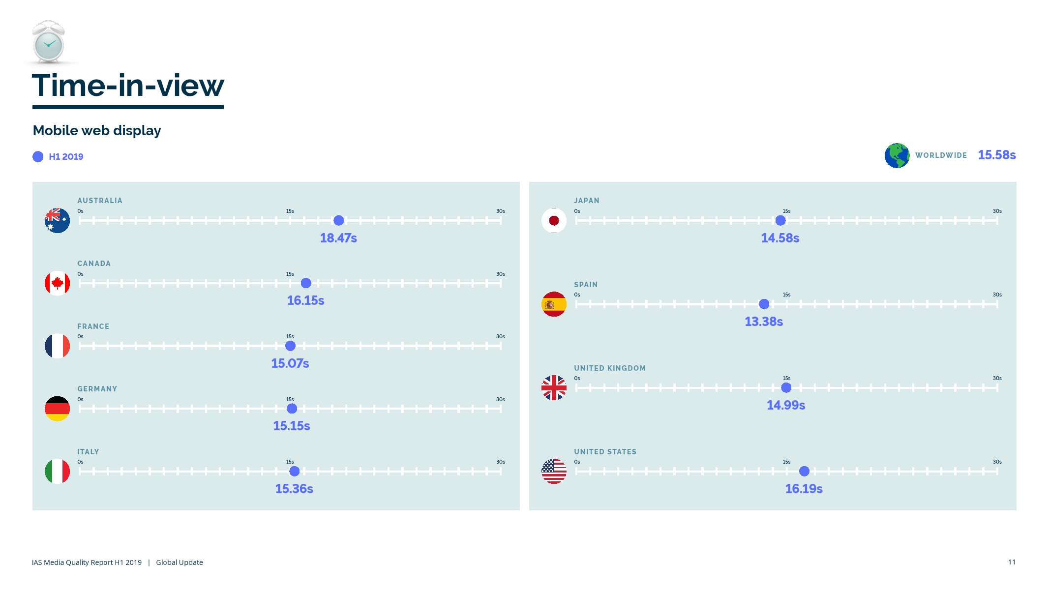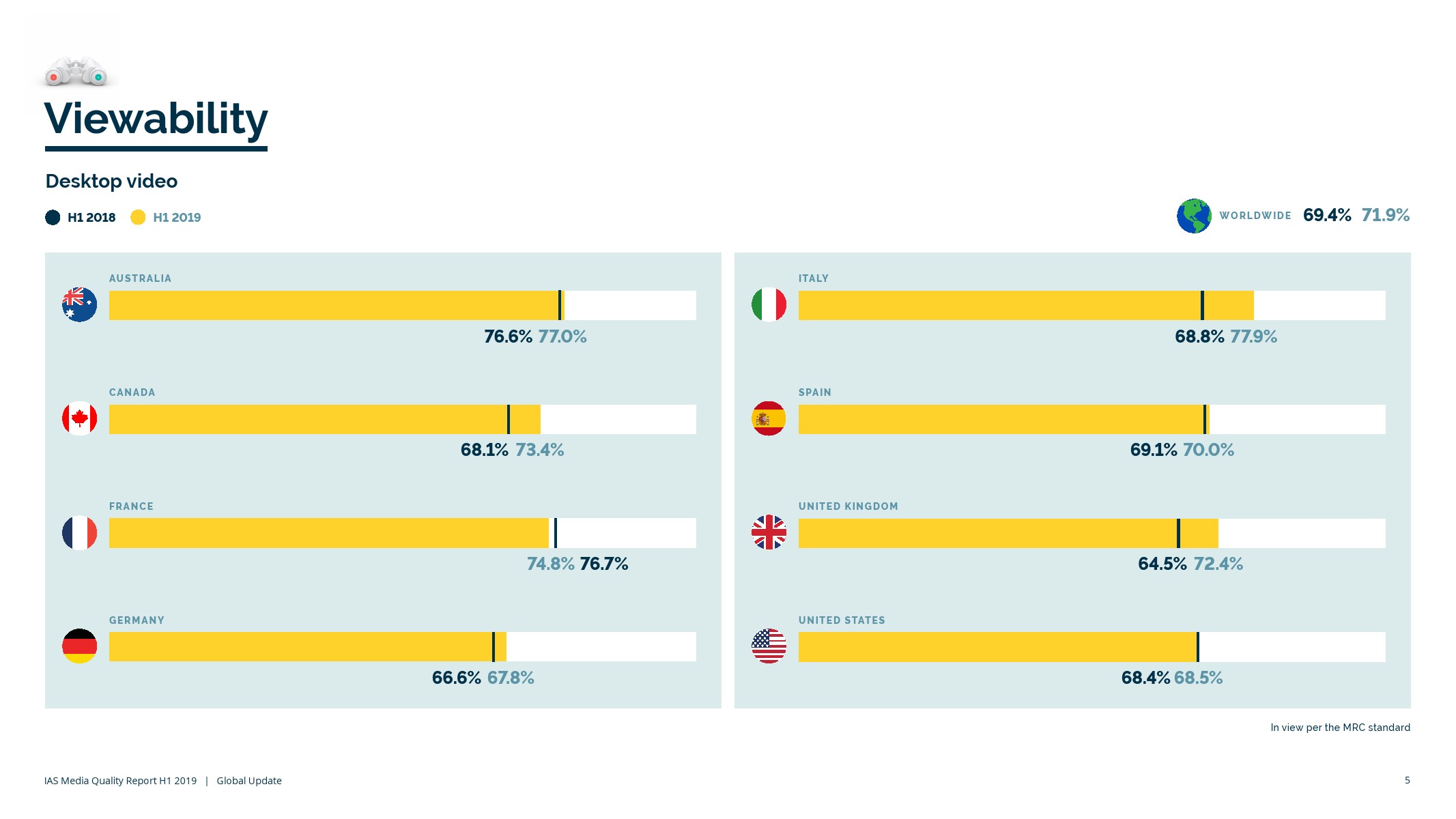 根据IAS的最新数据,2019年上半年全球广告平均可视性超过60%.