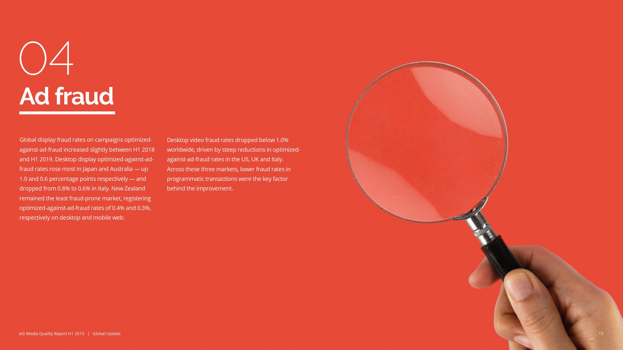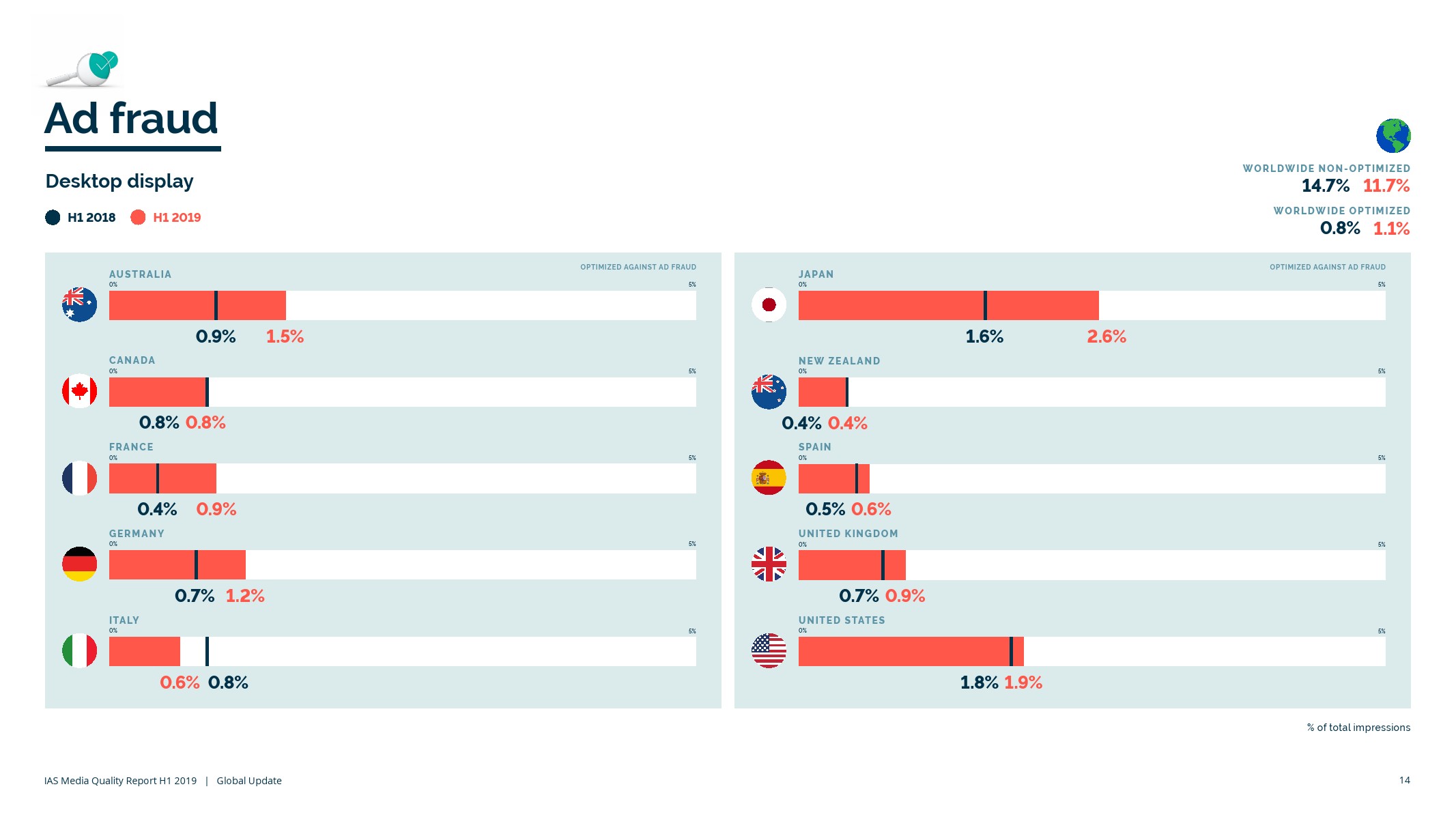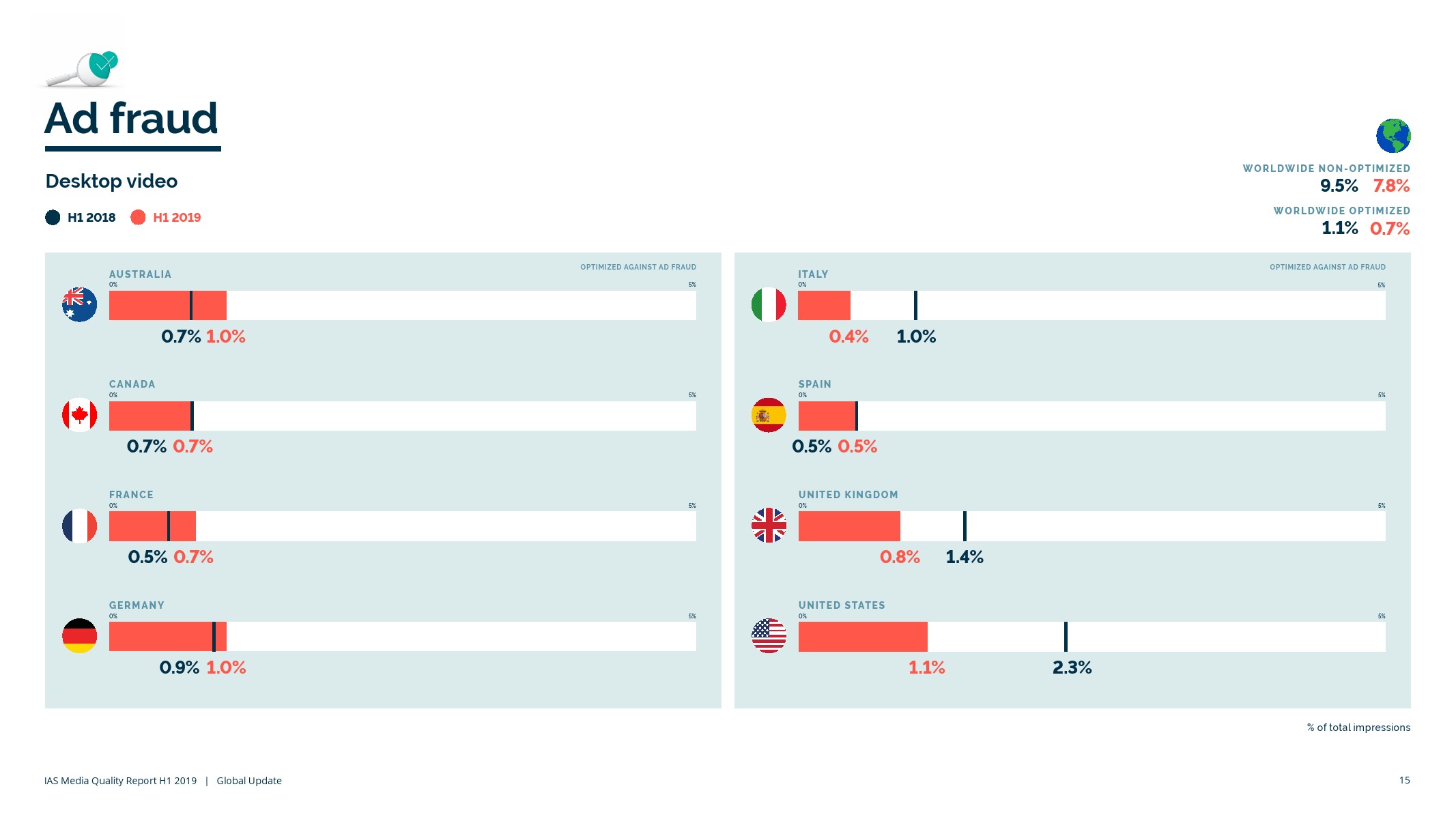 由于美国、英国和意大利广告欺诈率大幅下降,全球PC视频广告欺诈率降至1.0%以下。