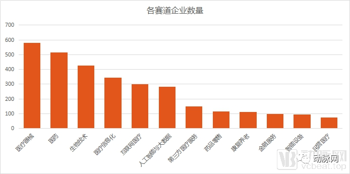 我们统计发现,医疗器械、医药和生物技术领域最“拥挤”。医疗最核心的部分就是对疾病的诊断和治疗,器械和药物则是进行诊断治疗的“工具”,是完成这项任务最直接的方式,可以说是整个医疗行业的“刚需”。因此,医药和医疗器械两个赛道吸引了大量企业进入,有着理所当然的原因。
