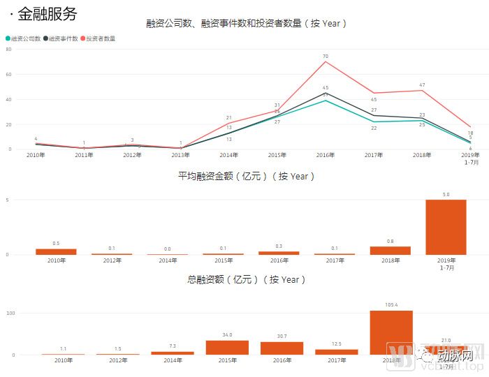 但在今年,金融服务赛道再次活跃。需要说明的是,从上图看,去年总融资额达到了峰值,这是因为去年平安医保科技完成11.5亿美元A轮融资(人民币约76亿元),但平安医保科技主要是为医保、卫健系统、商保企业、医疗机构以及药品流通领域提供管理服务,本身并无直接的保险业务,因此,属于特别的个案。如果减去这笔融资额,那么,今年前7月的总融资额已接近去年总融资额的三分之二,可以直接说明今年以来赛道的火热情况。