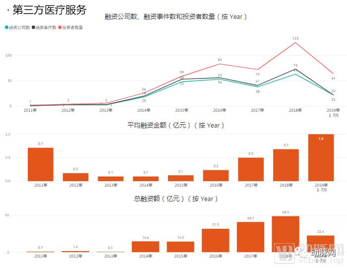 从前7月的融资情况来看,预计今年第三方医疗服务的将继续保持去年的热度。在未来,第三方医疗服务机构的机会点并不仅仅限于提供医疗服务本身,还可以通过向产业上下游的延伸进行更深入的拓展。