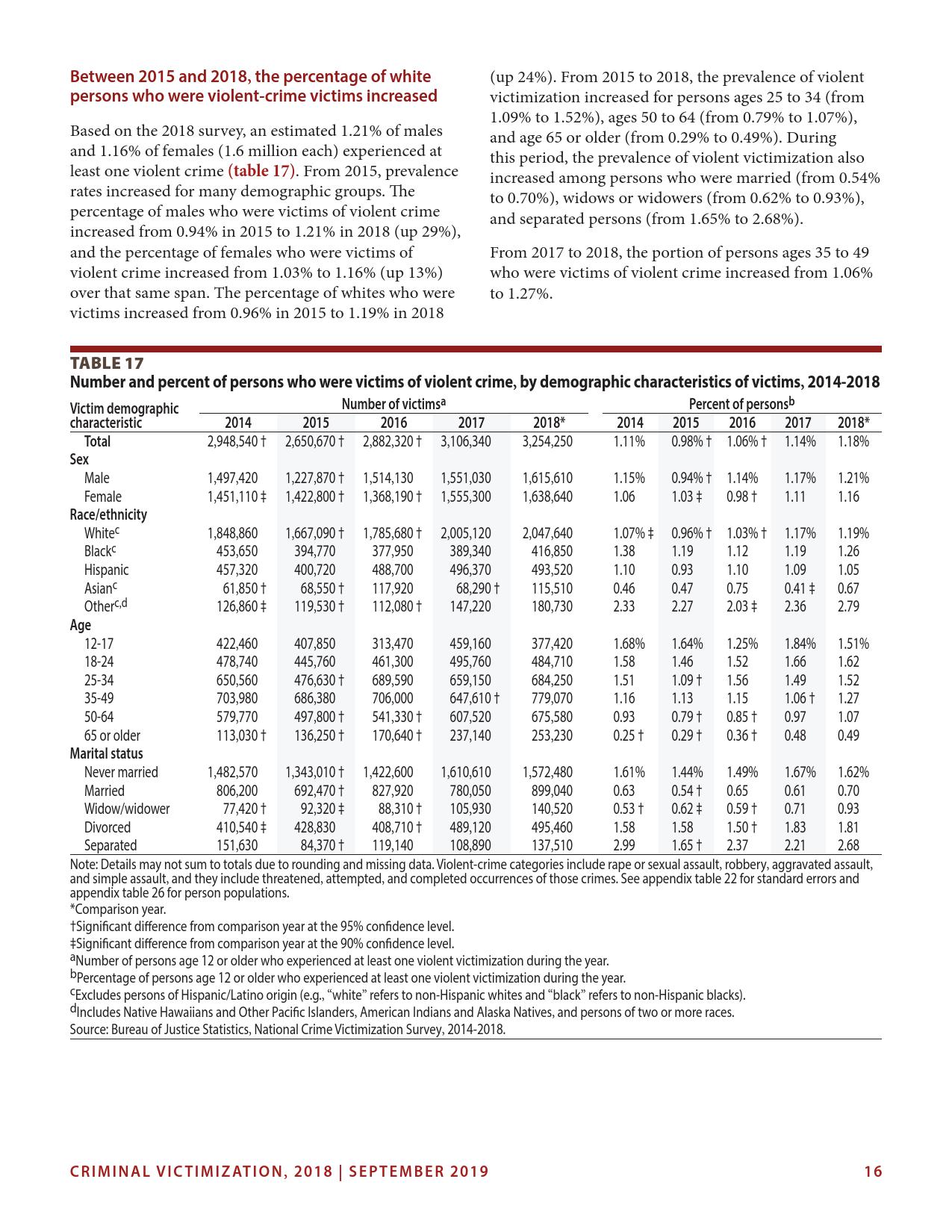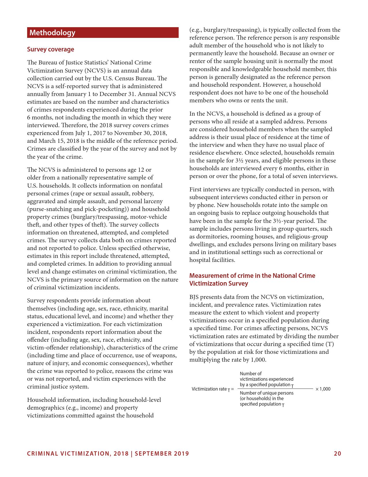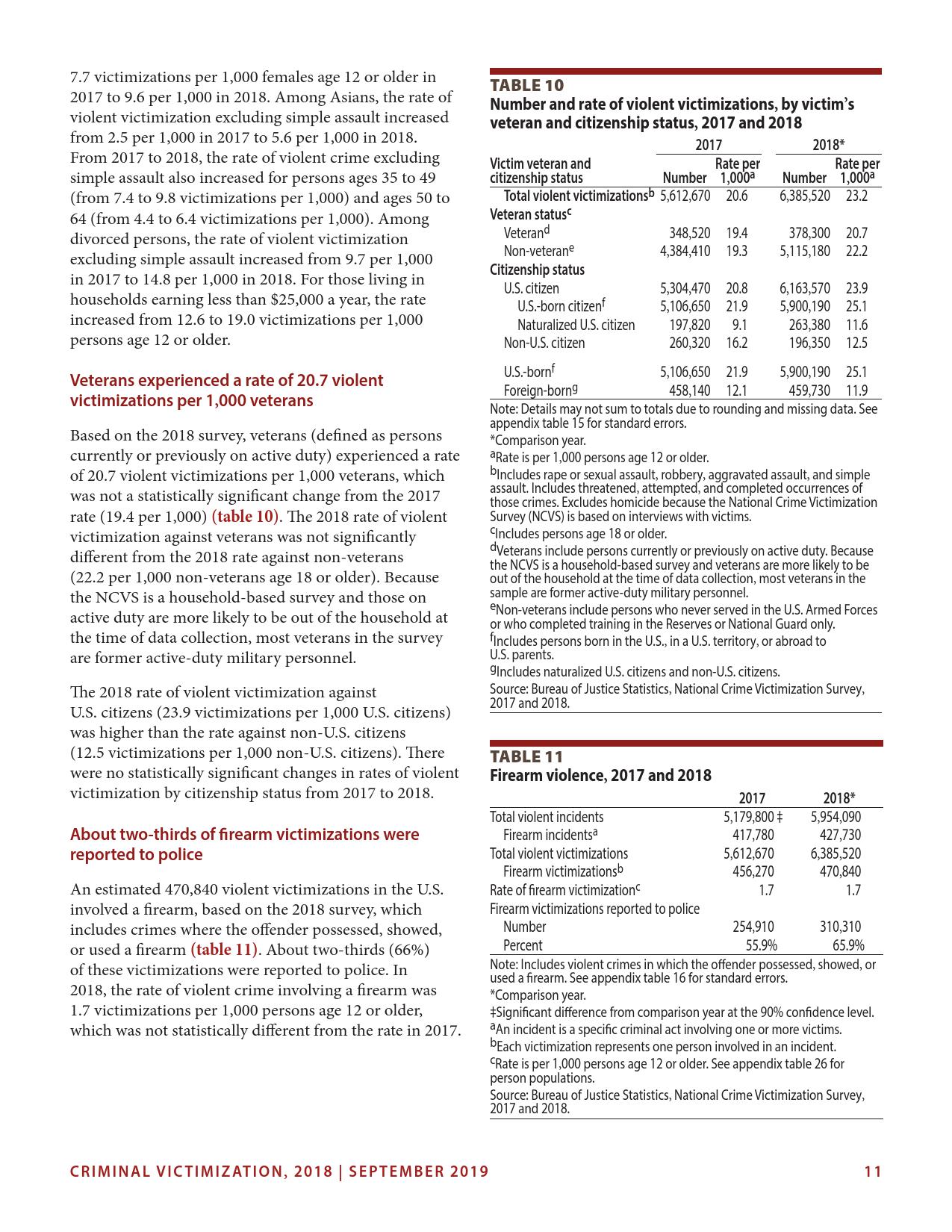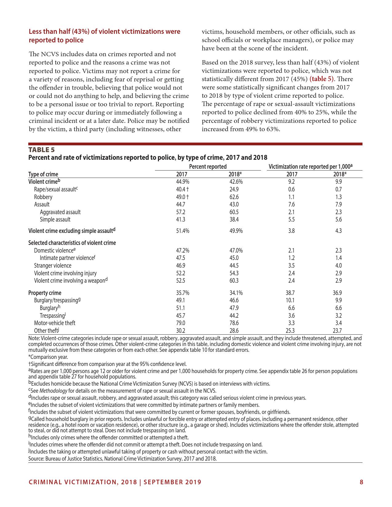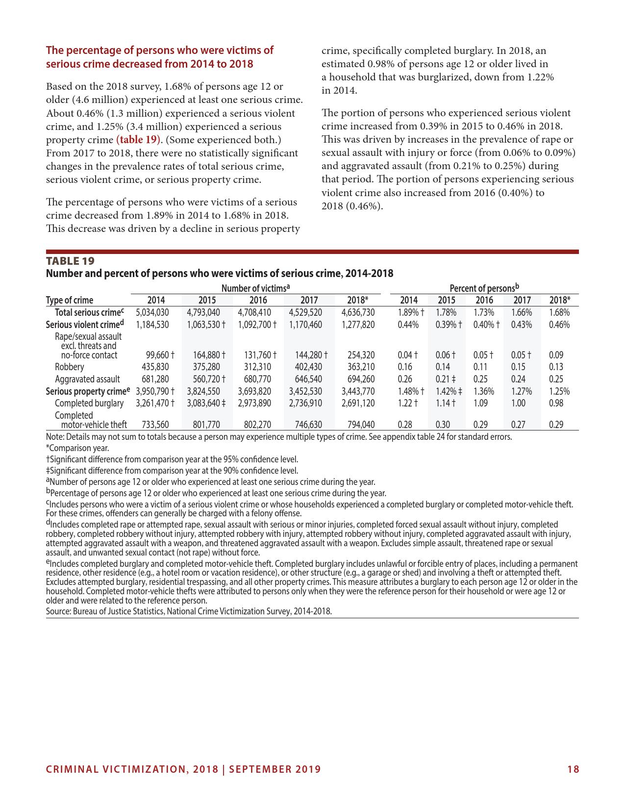 美国司法统计局(Bureau of Justice Statistics)的《全国犯罪受害调查报告》显示,2018年暴力犯罪受害人数为330万,高于2015年的270万。这项年度调查是由美国人口普查局(U.S. Census Bureau)进行的。