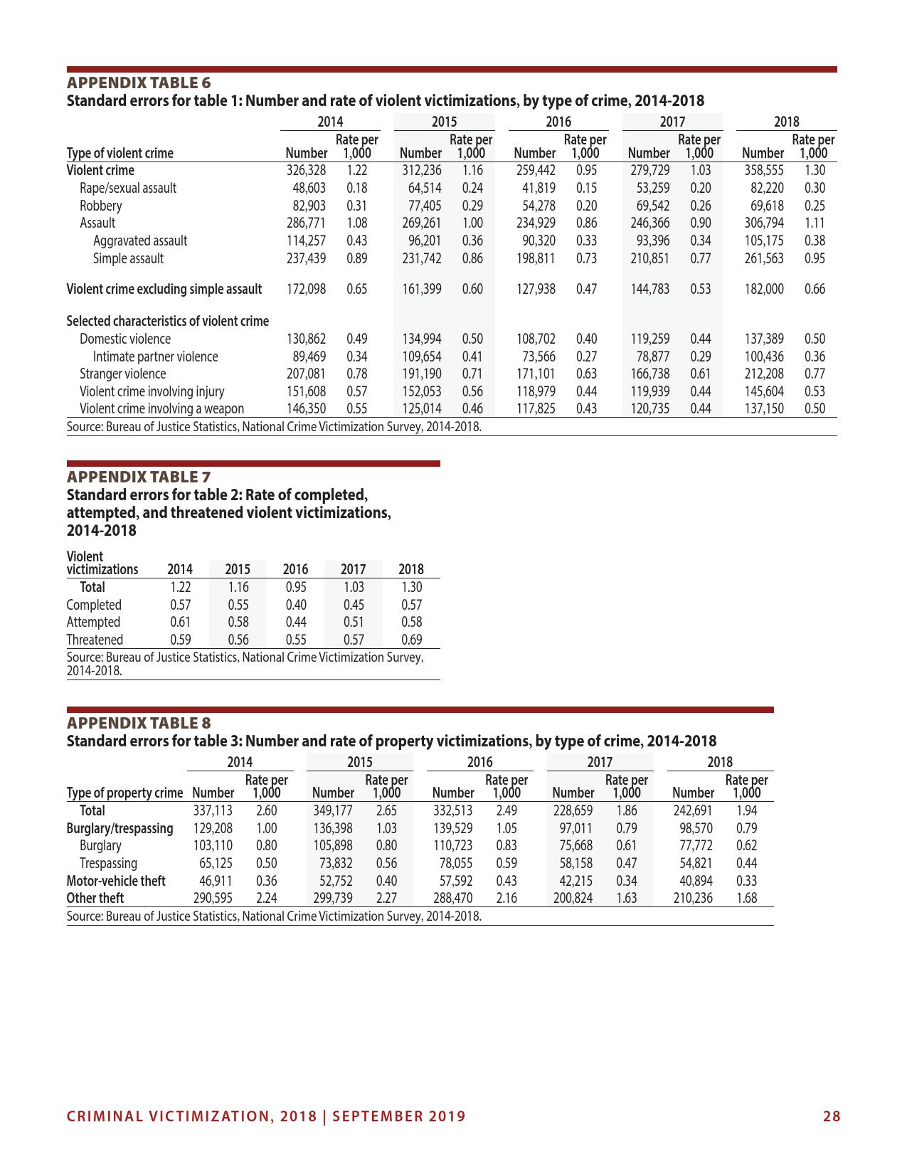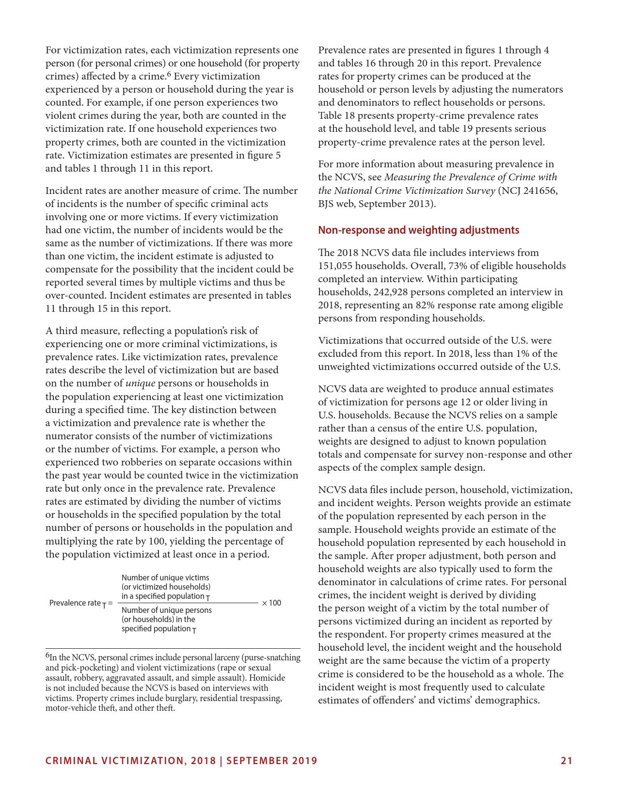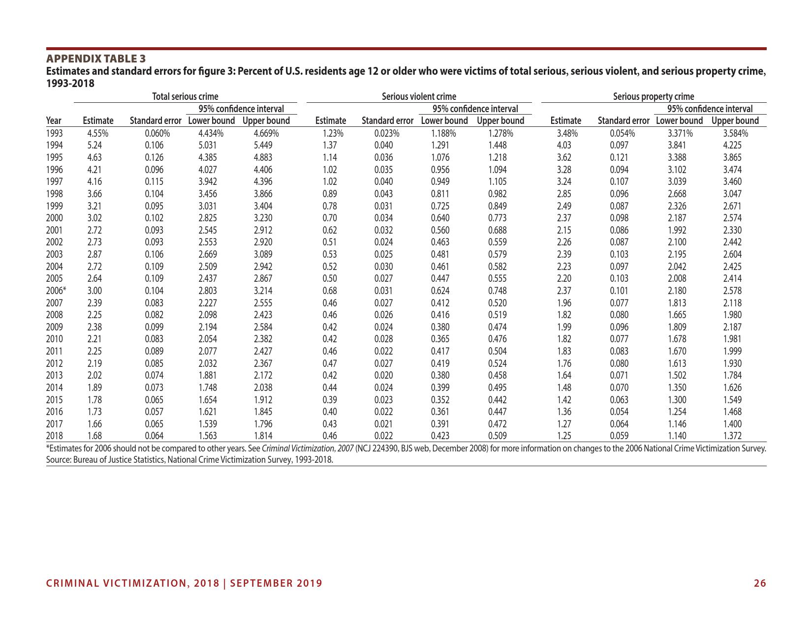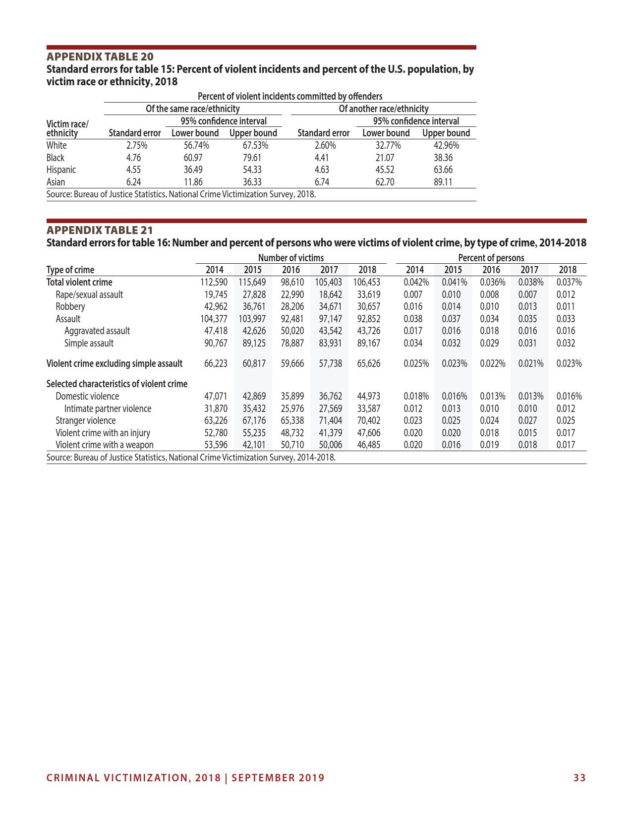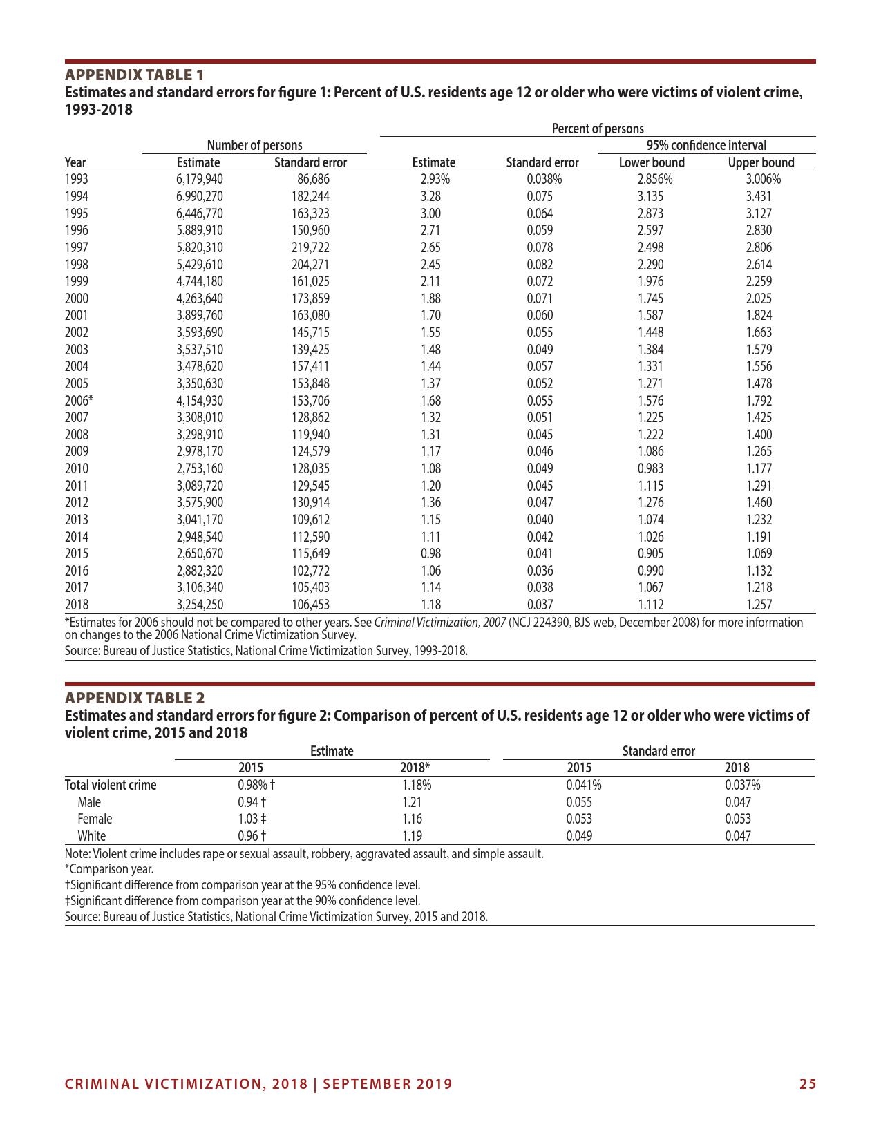 美国司法统计局(Bureau of Justice Statistics)的《全国犯罪受害调查报告》显示,2018年暴力犯罪受害人数为330万,高于2015年的270万。这项年度调查是由美国人口普查局(U.S. Census Bureau)进行的。