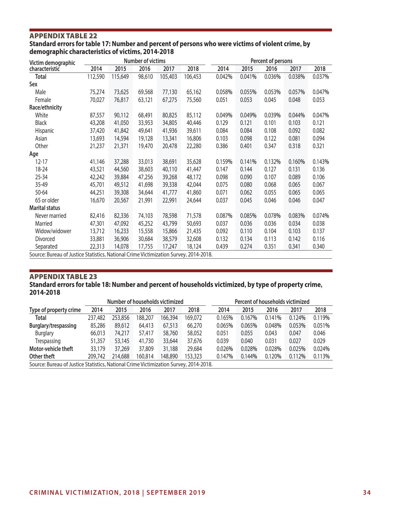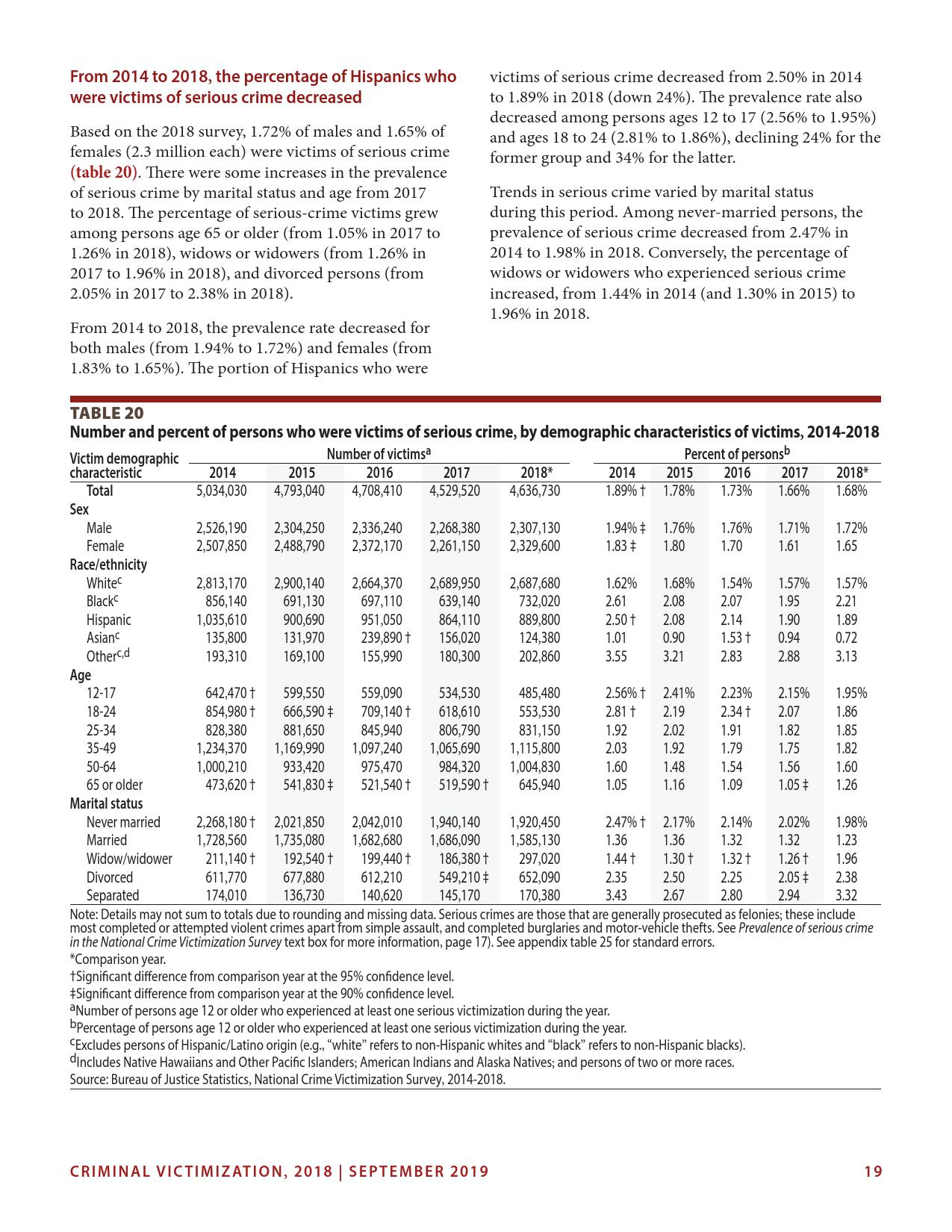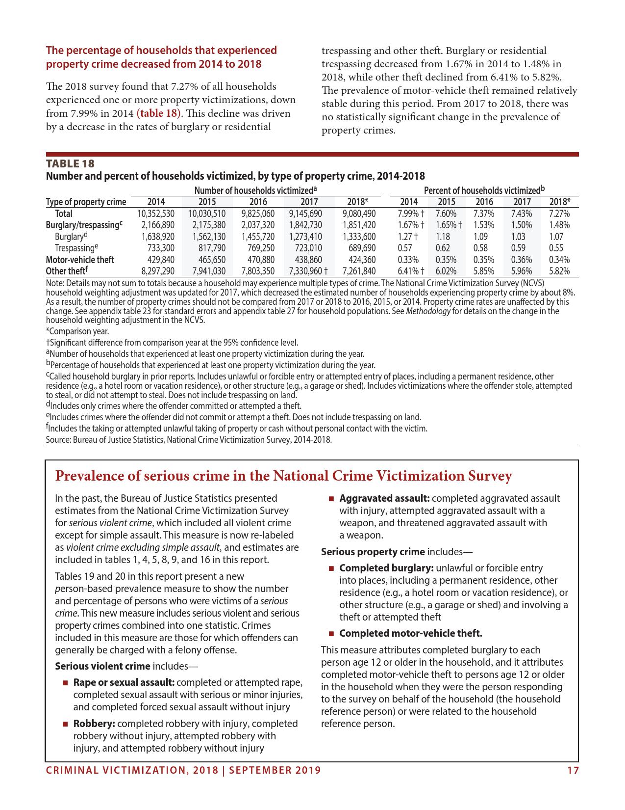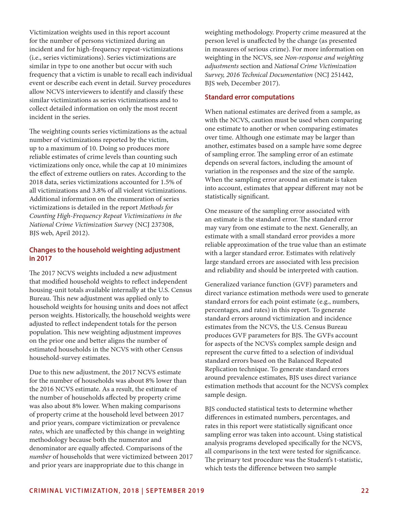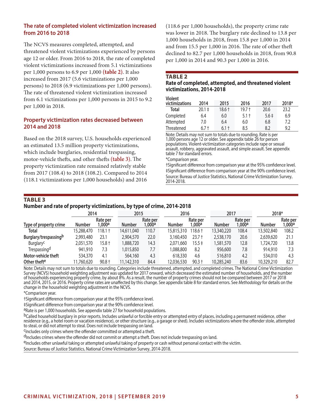 美国司法统计局(Bureau of Justice Statistics)的《全国犯罪受害调查报告》显示,2018年暴力犯罪受害人数为330万,高于2015年的270万。这项年度调查是由美国人口普查局(U.S. Census Bureau)进行的。